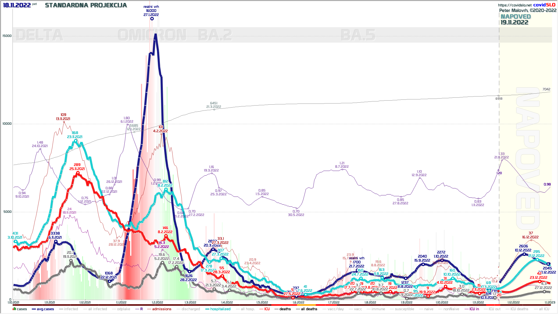Žal je pri tej epidemiji tako, da ima vedno kakšno presenečenje. Tale val se bo po moje res izpel in bodo prazniki in januar kar zavidljivi. Za konec januarja pa se že kažeta 2 nevarnosti: prva je popuščanje zaščite od cepljenja, ampak ta verjetno ne more povzročiti nekega velikega vala, mogoče nekaj malega. Drugo pa je različica omikron – tu pa je polno neznank in je lahko nič ali pa veliko problemov, bomo videli.