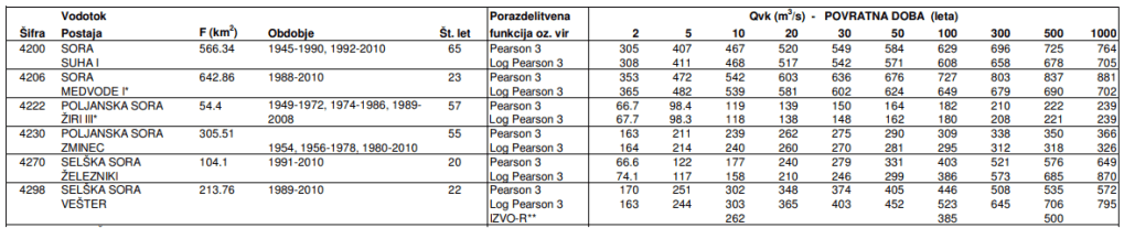 Povratne dobe za naše Sore so na ARSO definirane takole…