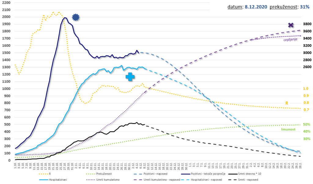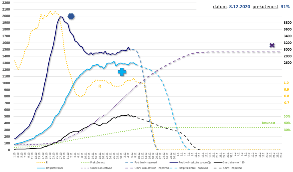 V Sloveniji je trenutno več pogledov na stanje naše epidemije. Eni modeli gledajo bolj skozi absolutno število vsakodnevno prijavljenih novih okužb in govorijo o relativno slabem stanju. Drugi bazirajo bolj na stanju v naših bolnišnicah in tudi nimajo preveč optimističnih predikcij. Večinoma vsi se trudimo čimbolj upoštevati čimveč faktorjev, od absolutnih številk novookuženih, sprememb obsega testiranja, vpliva uvajanja hitrih testov na statistiko, dinamike in spreminjanja kriterijev v bolnišnicah, sprememb razmerih obolelih po starostnih skupinah, vremenskih pogojev ki vplivajo na širjenje, prekuženosti, …