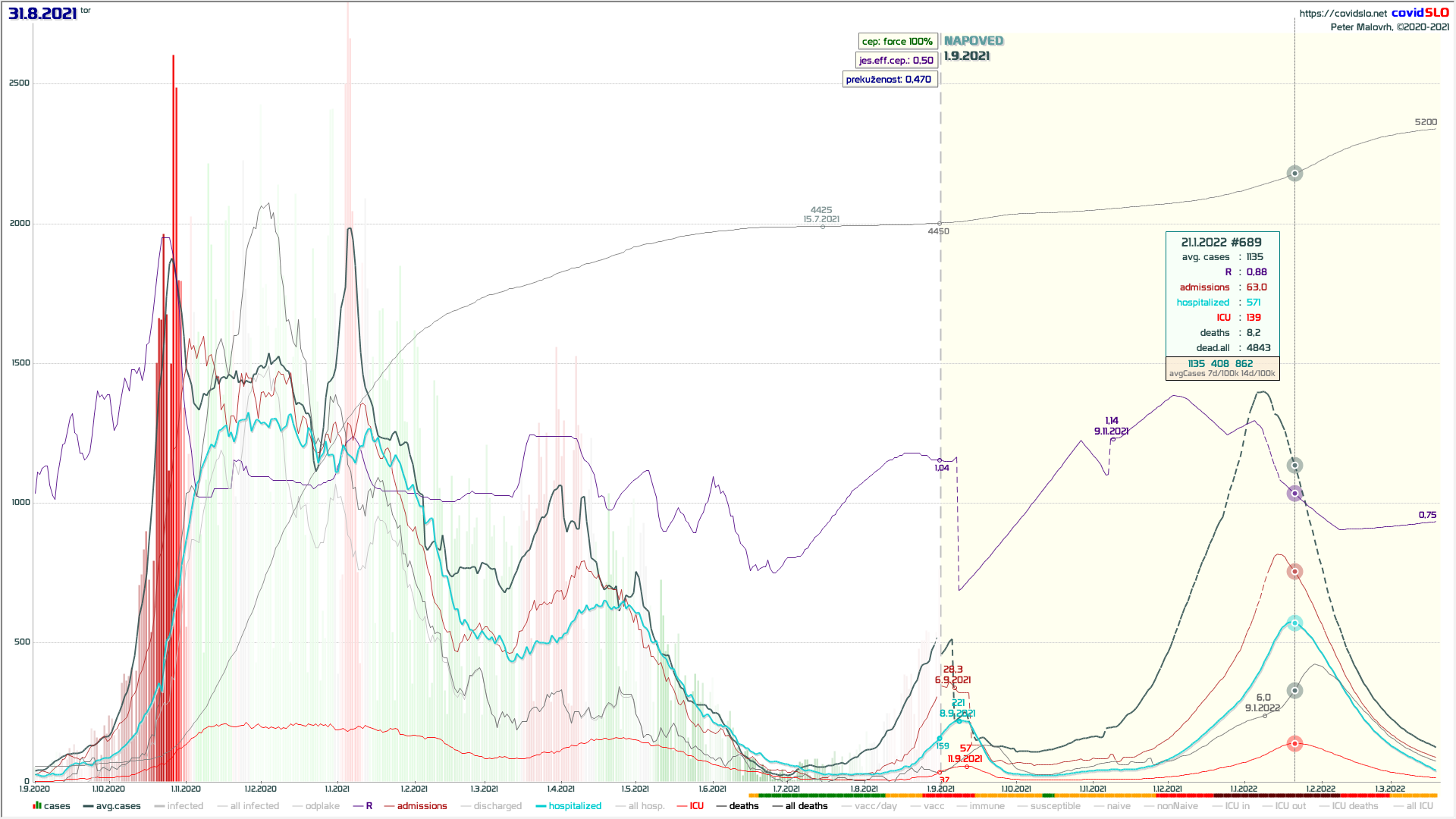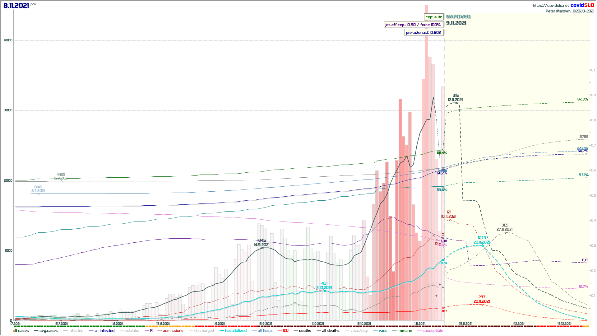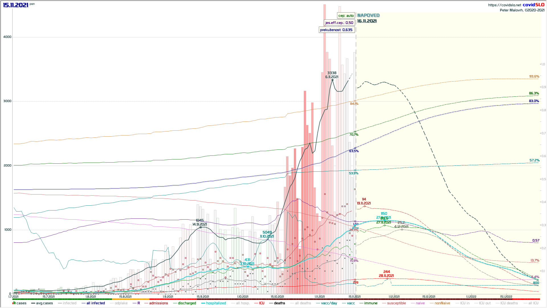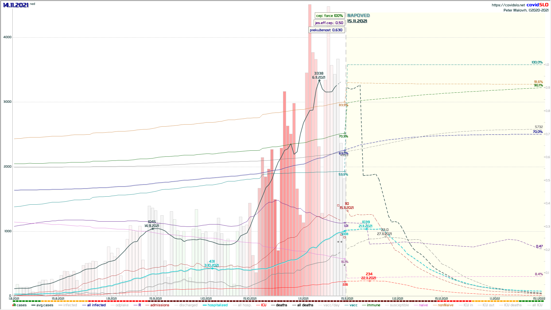 16.11.2021 Hipotetični scenarij: 100% precepljenost čez noč na 16.11.2021