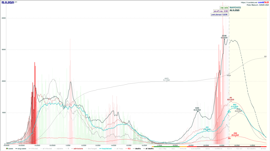 Rezultat: V bistvu bi se pravi 4. val pričel šele decembra, vrh bi bil v januarju, a bil bi precej nižji od našega trenutnega, in vsi parametri bi bili precej boljši, kot jih dejansko vidimo na dan 16.11.2021.