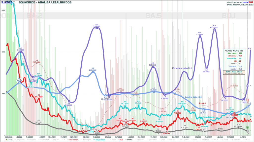 Zdi se mi smiselno, da podrobneje pogledamo prehod iz stanja sreče, ko nas je lani omikron odrešil težjih napadov na spodnja dihala in v bolnišnice položil 3-10x manjši delež pacientov od delte, na stanje, ko se zdaj sprašujemo, ali sploh še podrobneje spremljati “epidemijo”. Ta prehod hočem podrobneje pogledati tudi povsem iz privatnega modelarskega zornega kota, saj so moje projekcije iz še poleti odličnih v zadnjem času postale bolj kaotične od same epidemije. Kaj se je torej spremenilo? Kam gremo? Kaj je pametno delati in kaj ne?