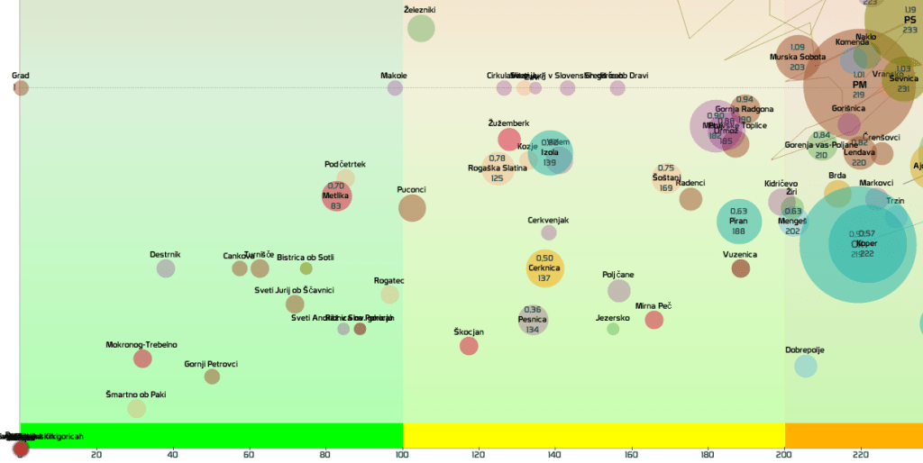 Trenutni trendi po občinah in regijah: pol regij ima slabe trende, pol dobre. Veselijo Pomurska, Gorenjska, Koroška, Zasavje in seveda rumeno Posavje … Goriška v črnem:(