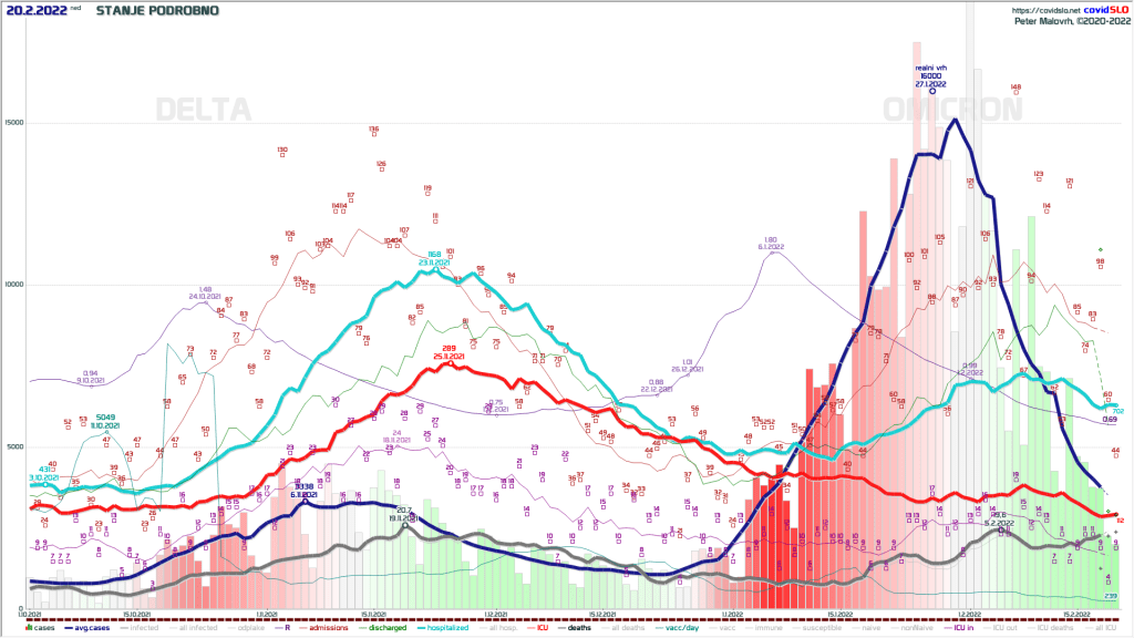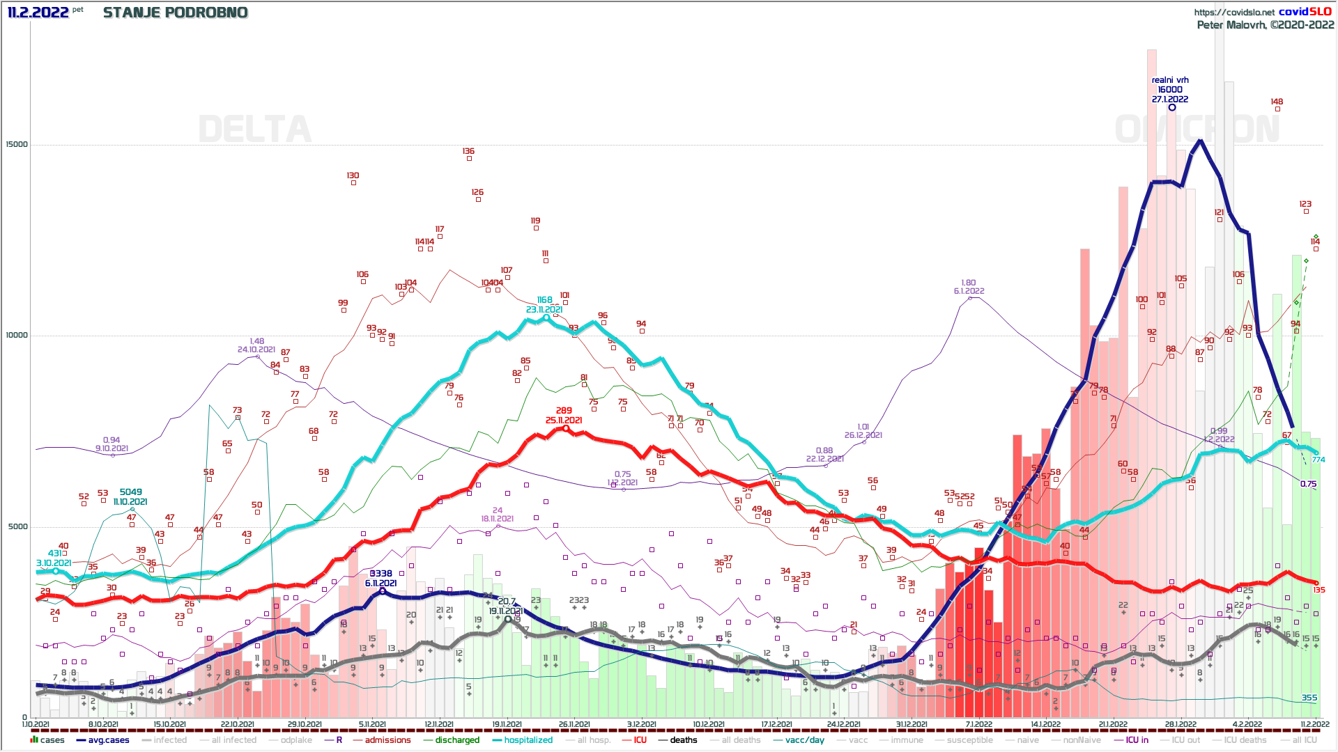 vrh primerov se kaže nekje okoli 24.-28.1.2022, izgleda visok, dosegli smo že 17.000 dnevnih primerov in ni še znakov ustavljanja rasti, a tu so zamiki …