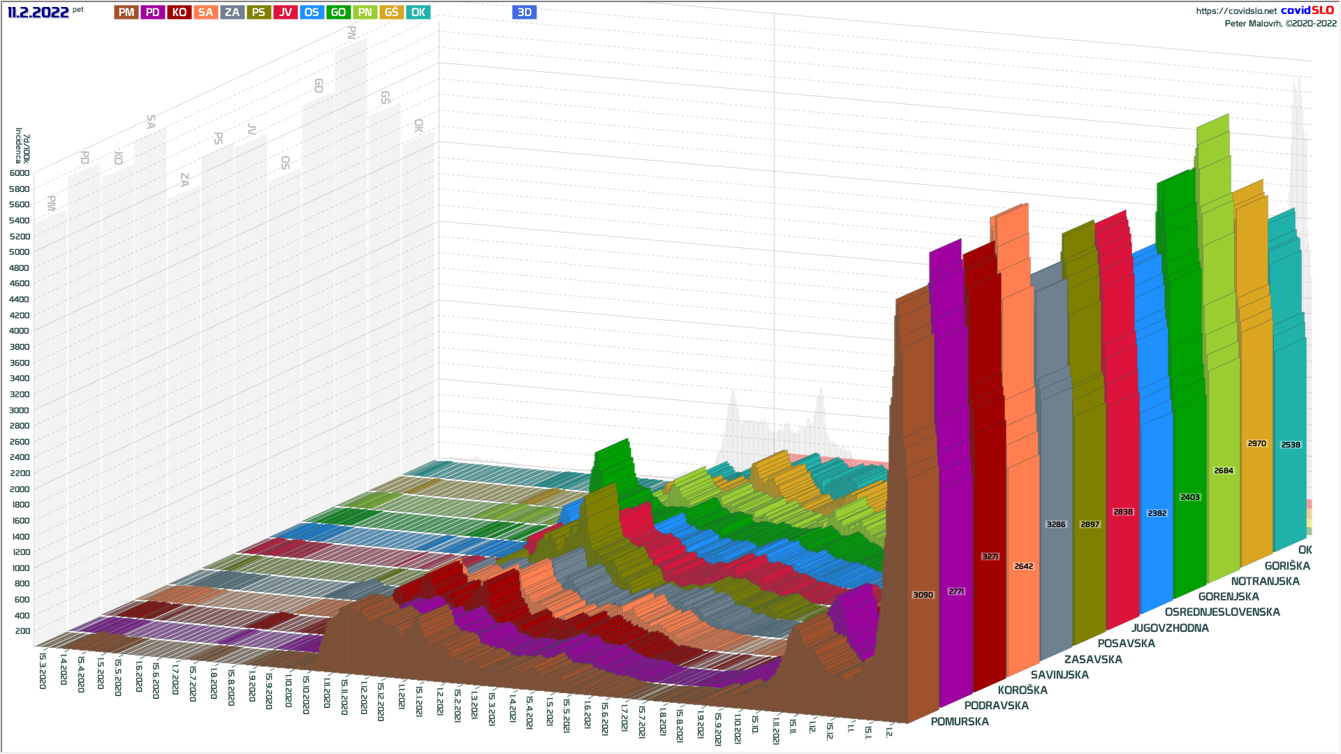 povprečje javljenih primerov zadnjih 7 dni je rekordnih 12.375 (min po delta valu je bil 25.12. pri 1068), NIJZ s korekcijami za nazaj 12.368
