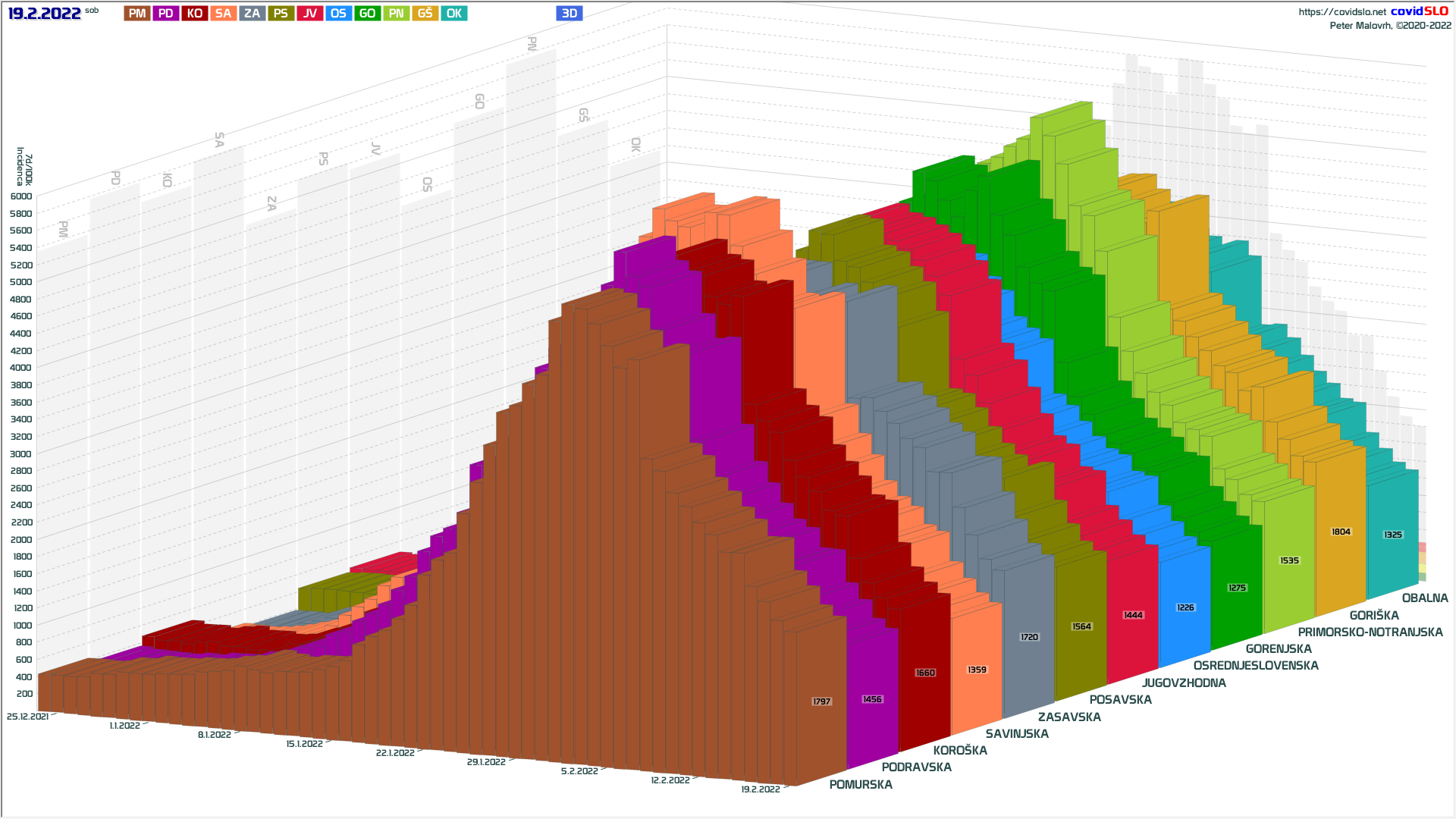 vrh primerov se kaže nekje okoli 22.-25.1.2022, izgleda visok, kakšen dan lahko tudi krepko preko 12.000 primerov (izgleda bo pri povprečno 11500 plato zaradi kapacitet testiranja)