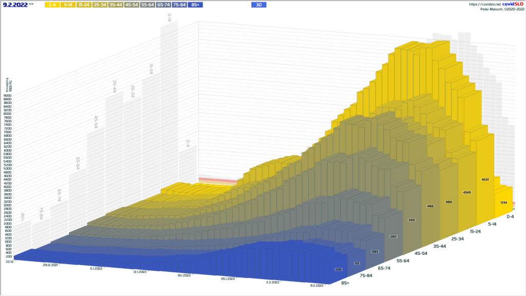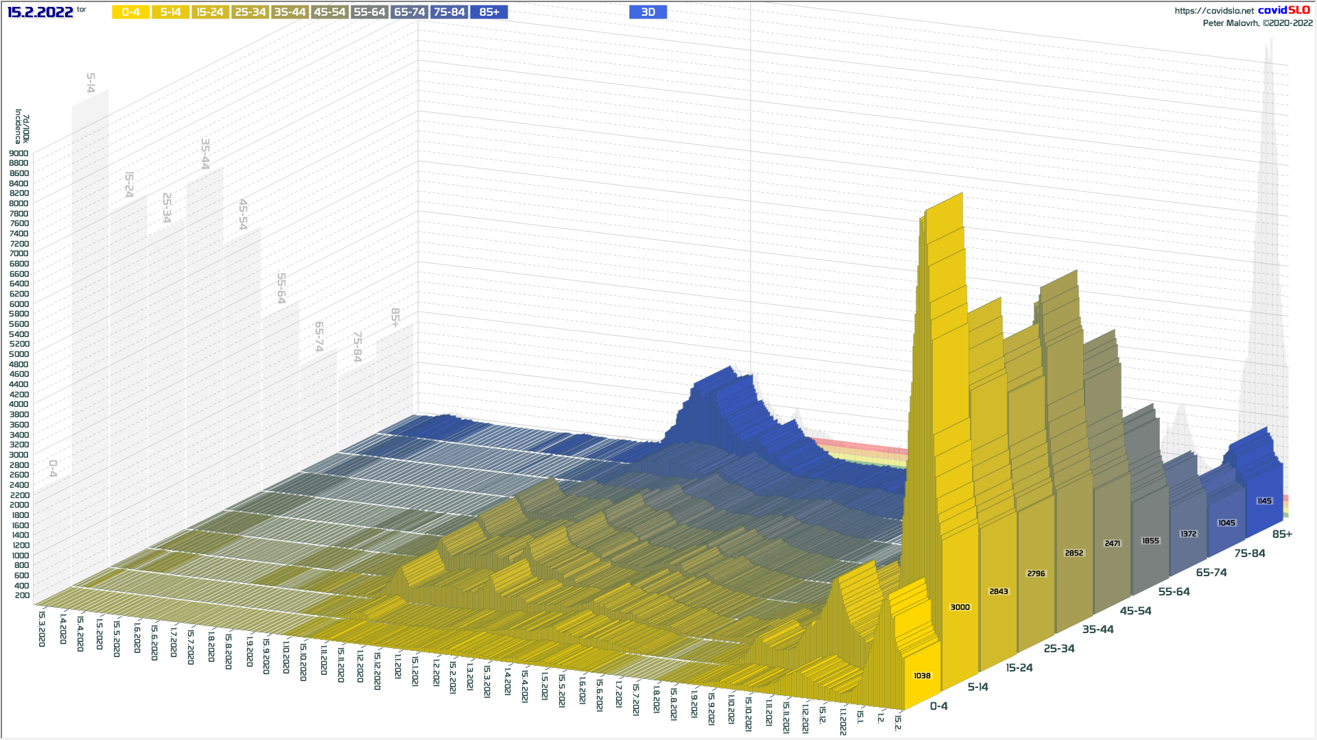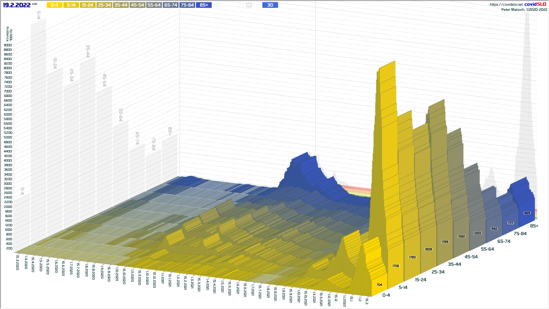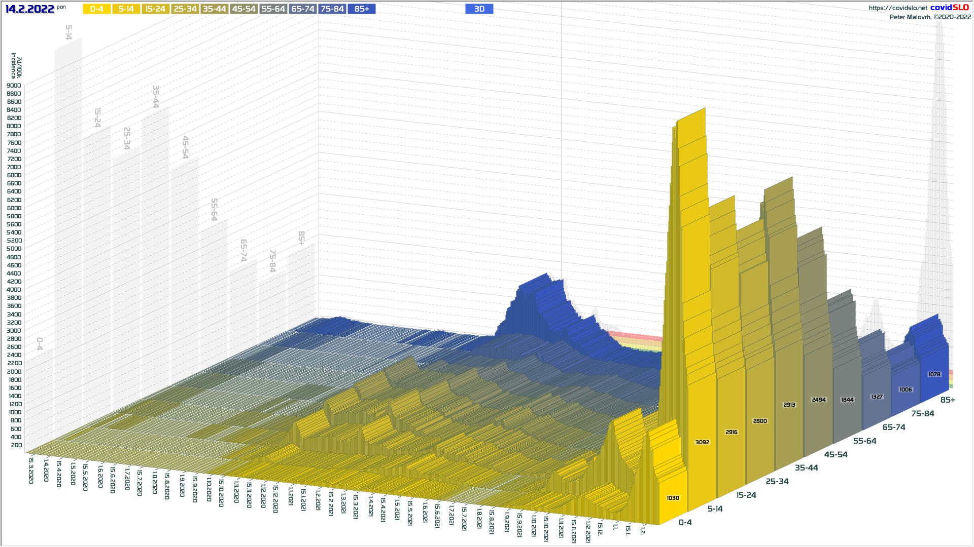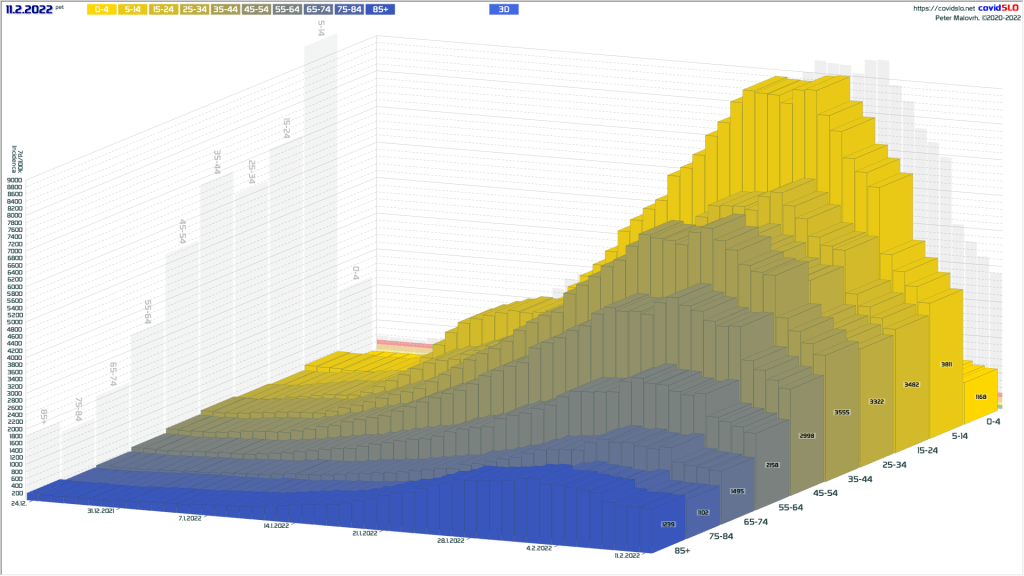 največji porast primerov je bil do sredine januarja v skupini 15-24 let, ki je prevzela vodstvo in podira rekorde incidenc skupina 5-14 let (8.4% potrjeno okuženih v zadnjih 7 dneh !!!)