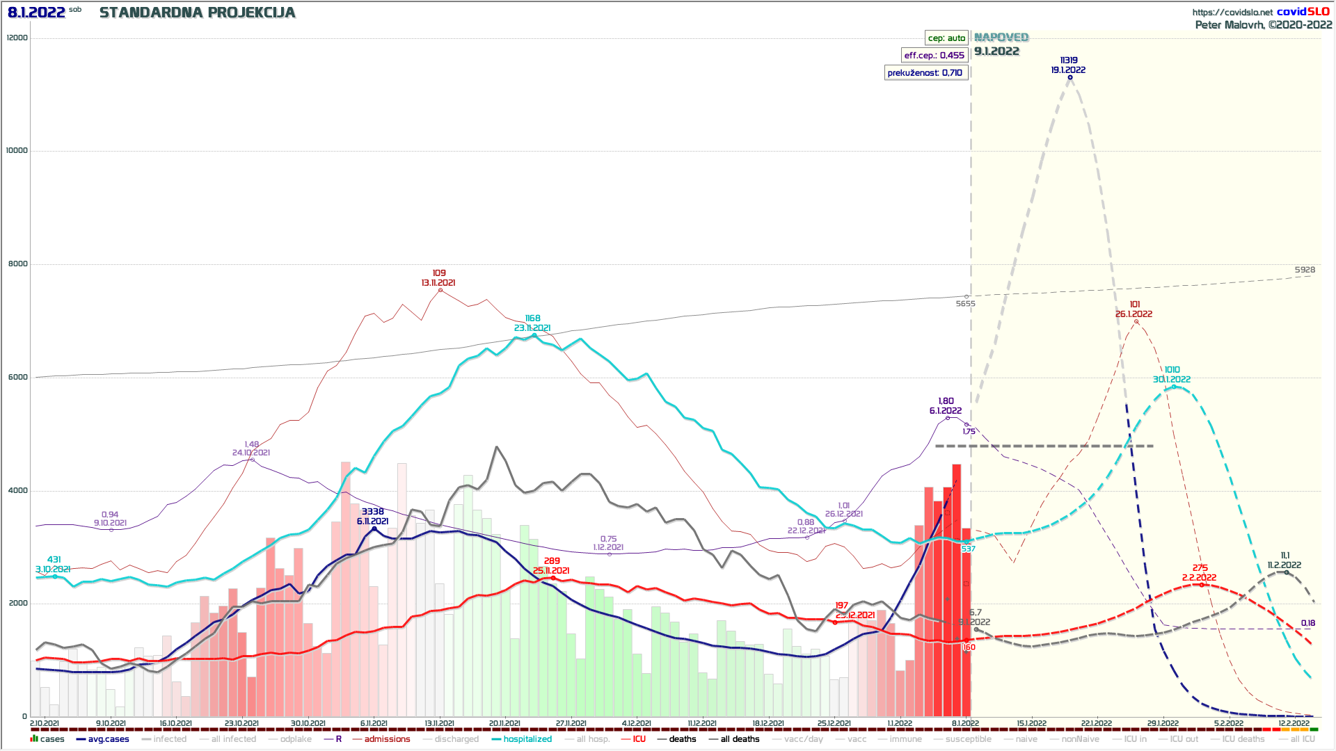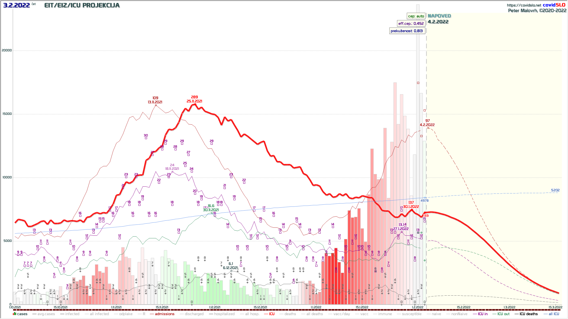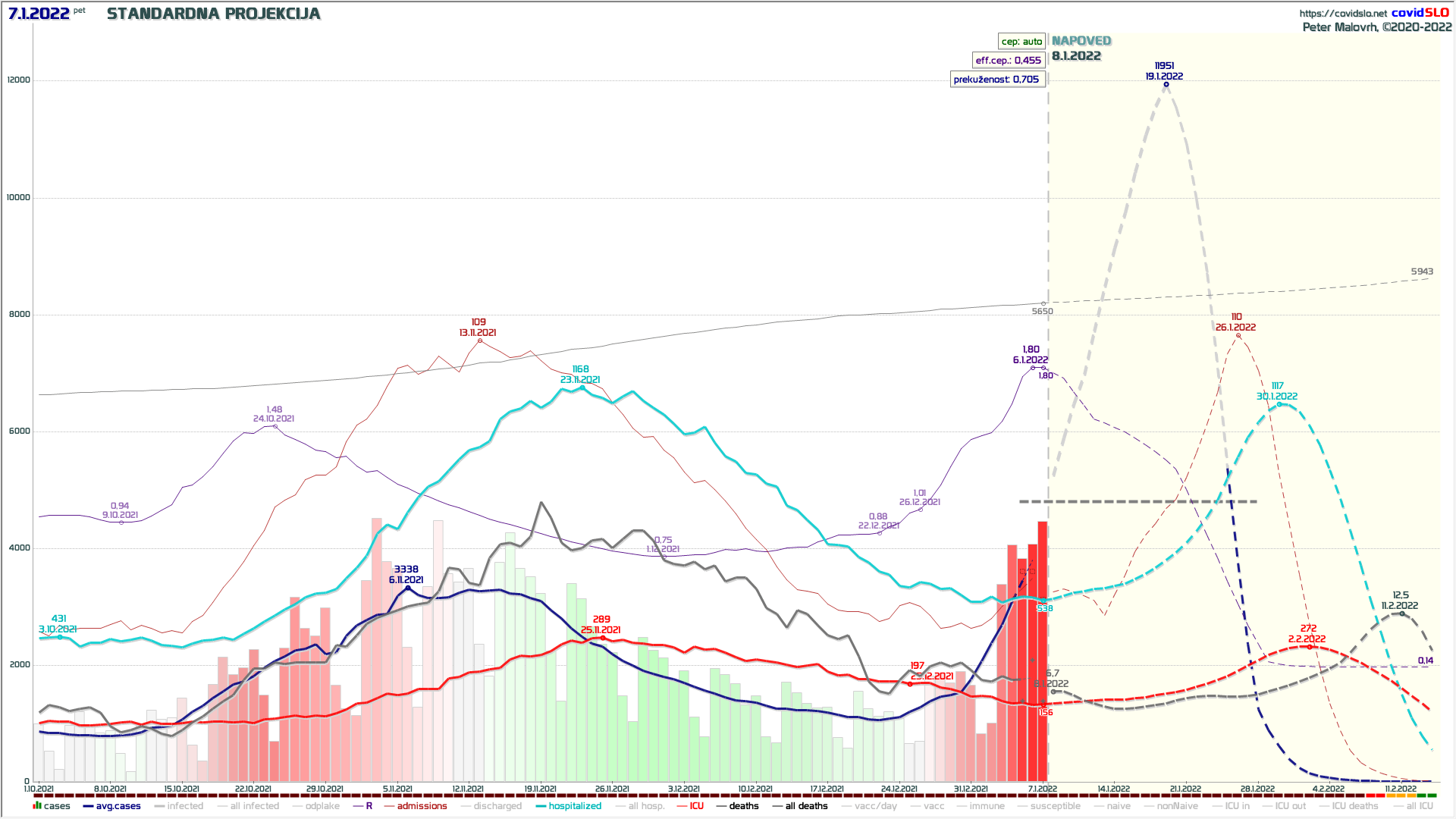 napoved umrlih: predvidoma dodatnih 300-400 (to bodo večinoma smrti “s” covid, krivec osnovna bolezen, spremljajoča covid okužba) (v prejšnjih valovih je poleg osnovne bolezni bil krivec tudi covid!)