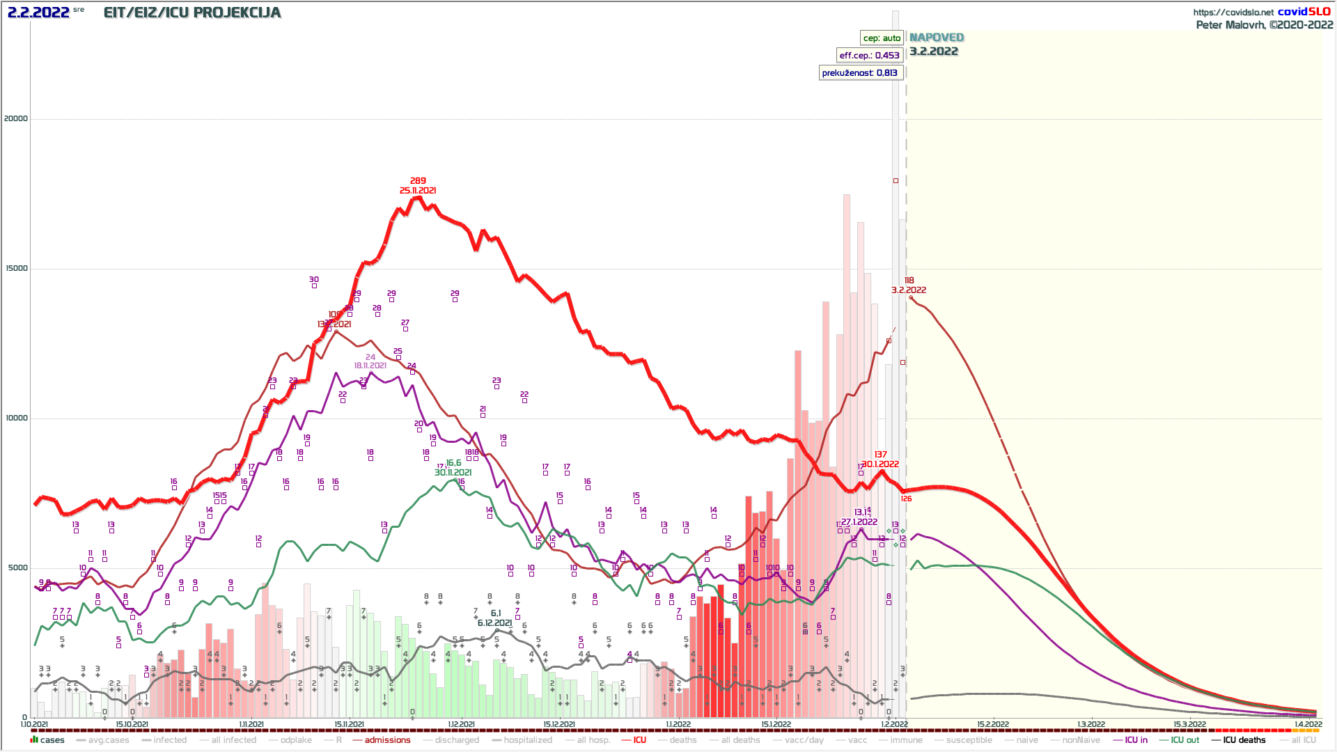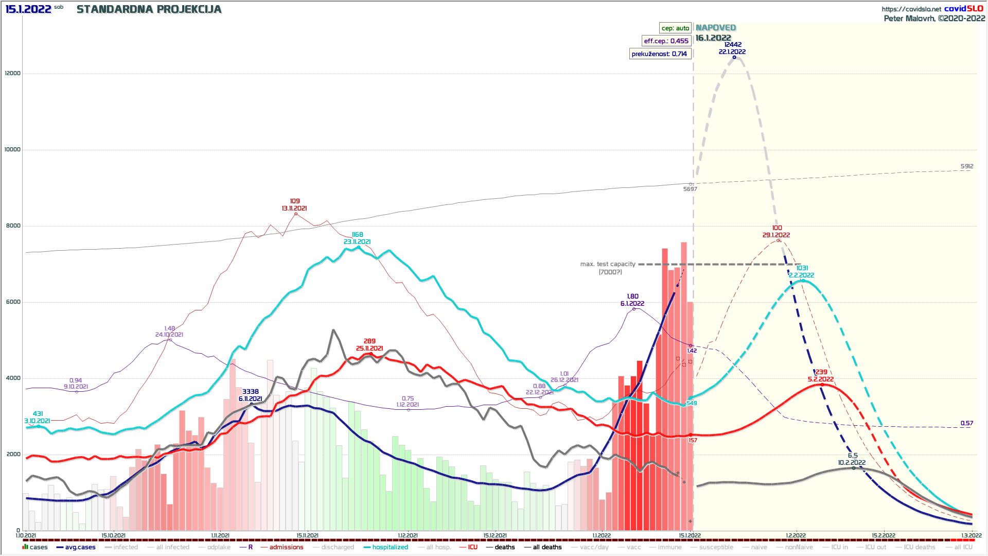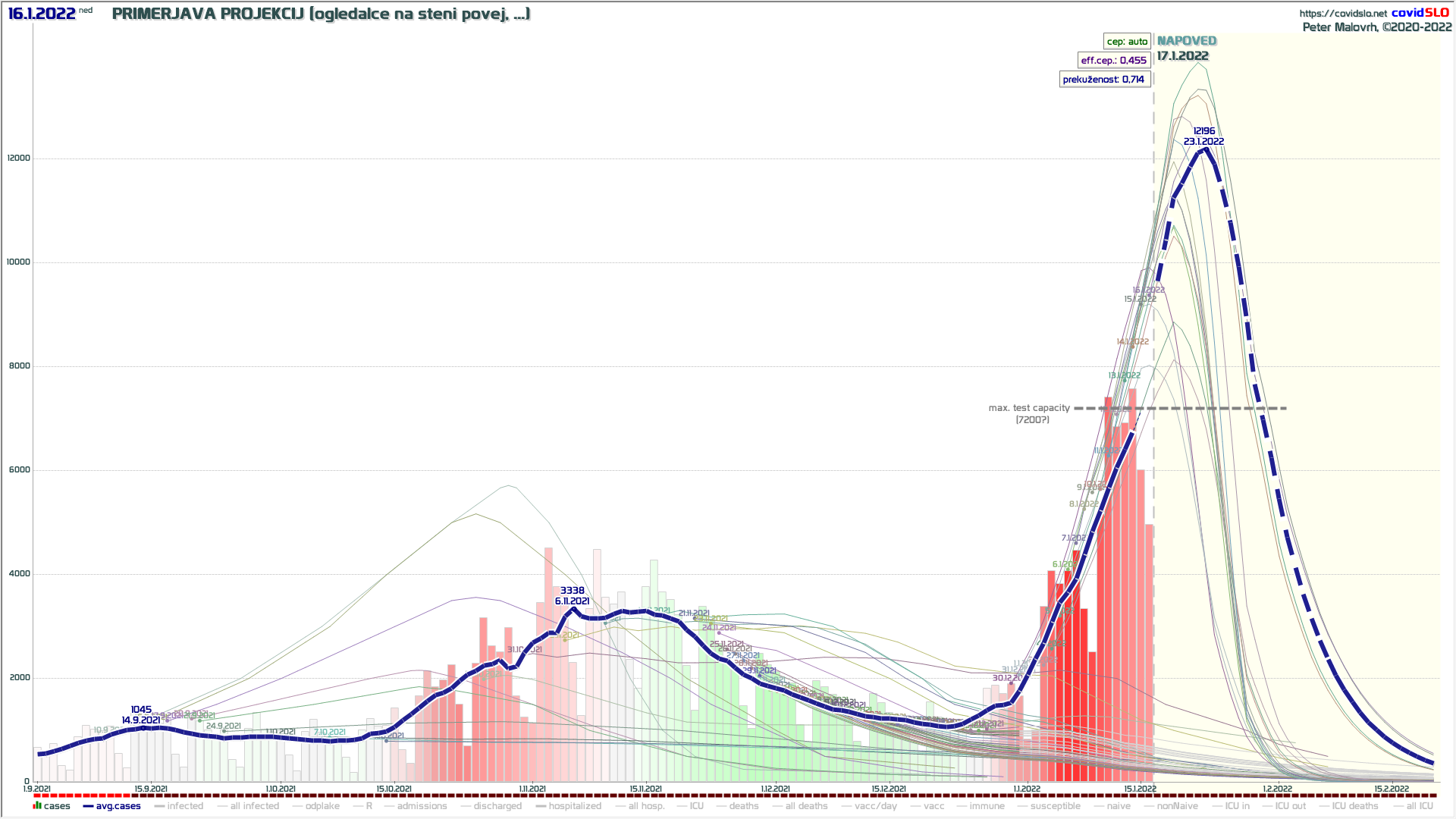 vrh primerov se kaže nekje okoli 26.-28.1.2022, dosegli smo tudi 17.000 dnevnih primerov, bolj natančno bom vrh definiral do 7.1., ker je treba upoštevati spremembo metodologije testiranja in zamike