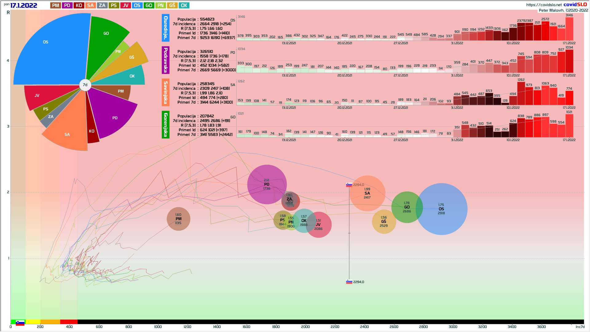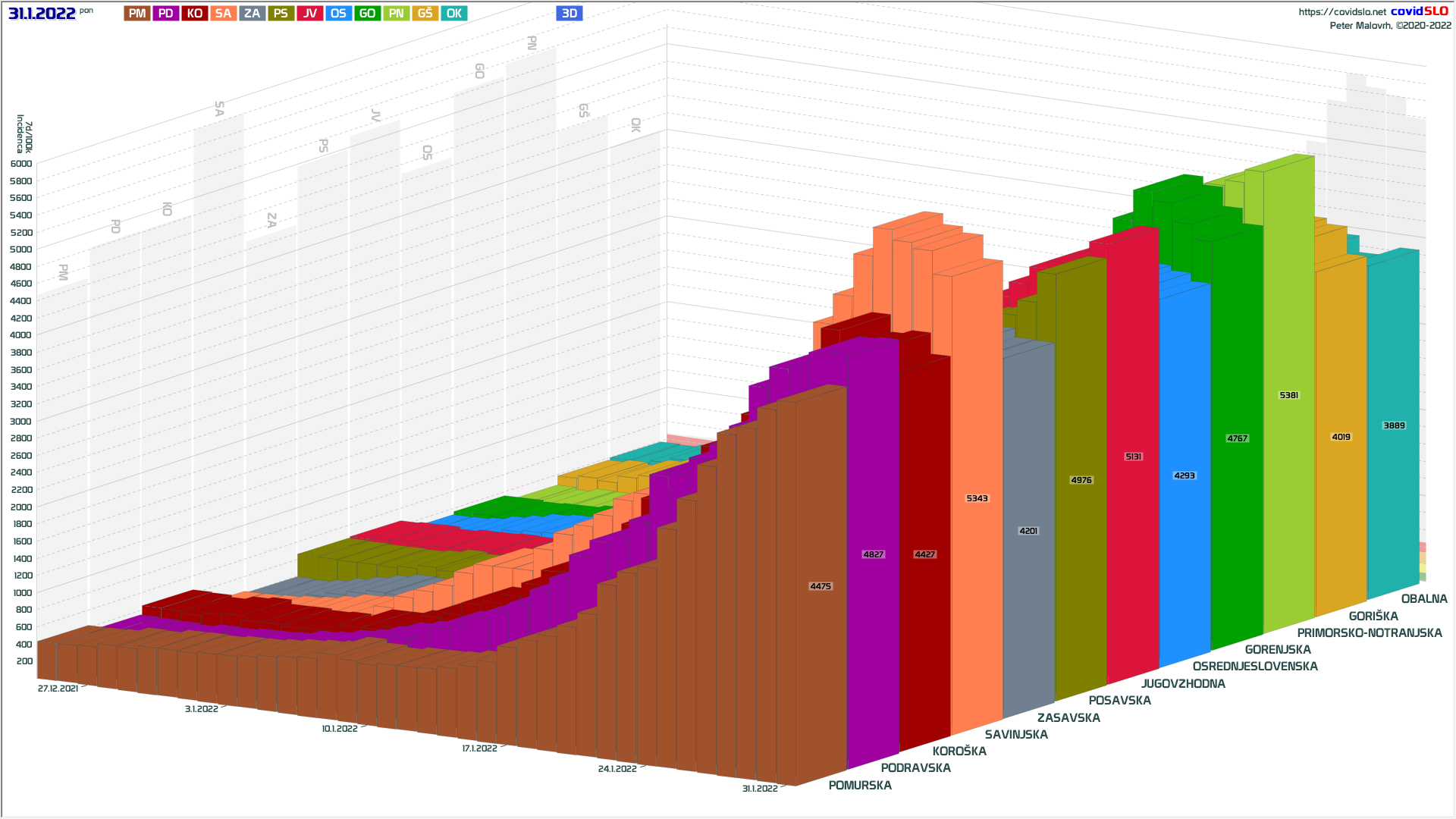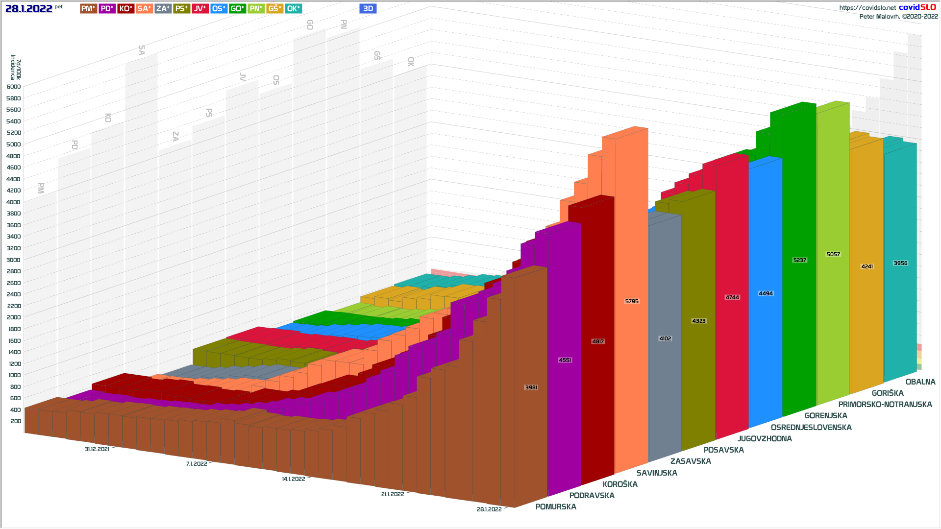 vrh primerov se kaže nekje okoli 26.-28.1.2022, dosegli smo tudi 17.000 dnevnih primerov, bolj natančno bom vrh definiral do 7.1., ker je treba upoštevati spremembo metodologije testiranja in zamike