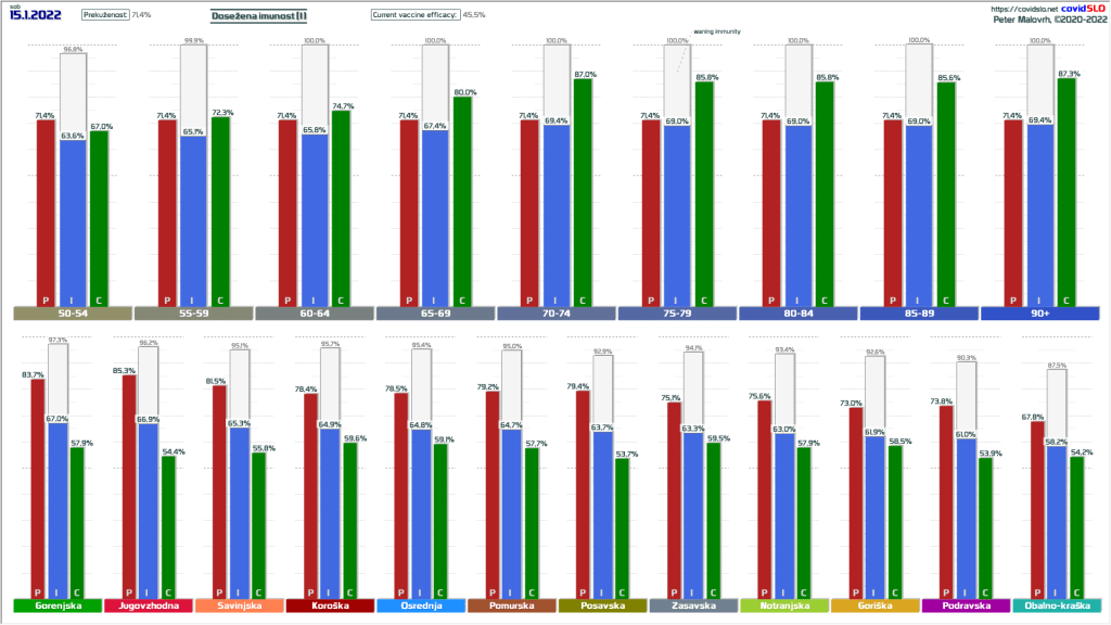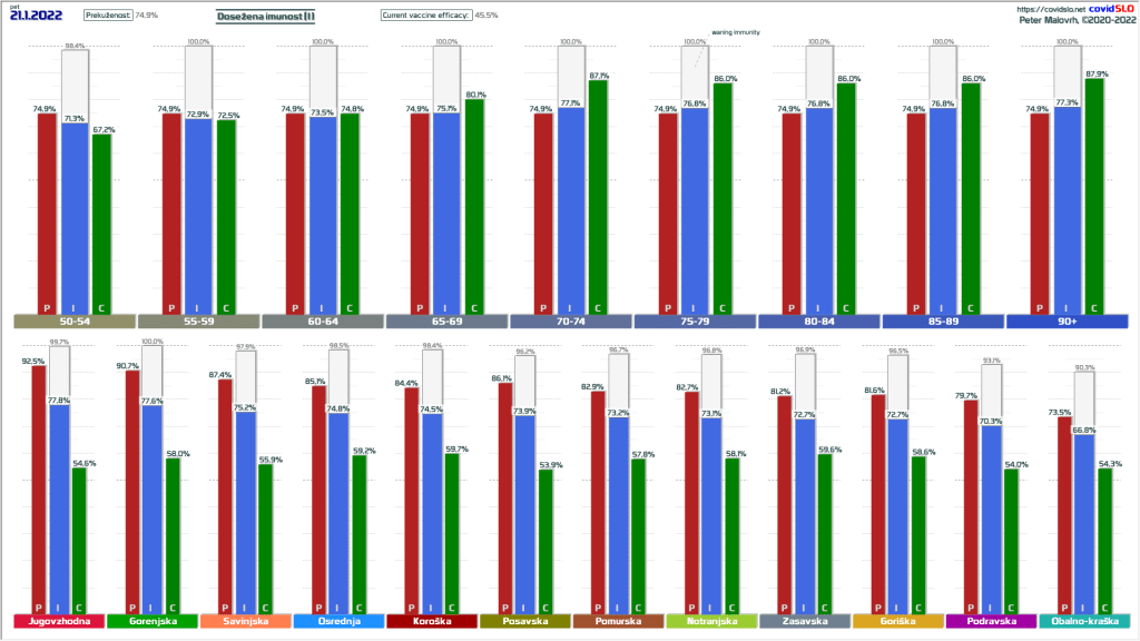 dejanska trenutna imunost starostnih skupin: 60-64: 76%, 65-69: 77%, 70-74: 79%, 75-79: 79%, 80-84: 79%, 85-89: 79%, 90+: 79% (omikron jo je znižal, zdaj raste nazaj!)