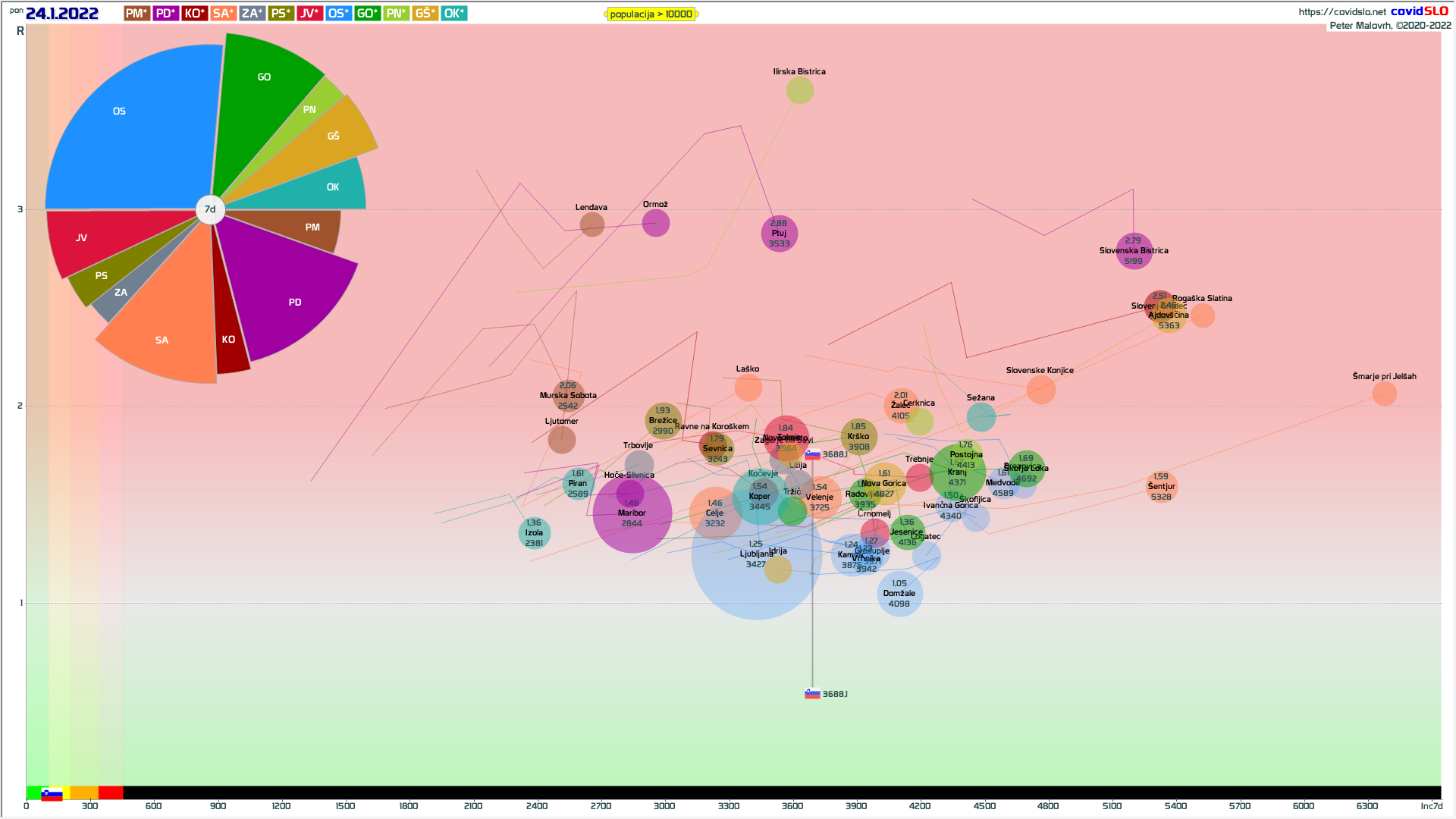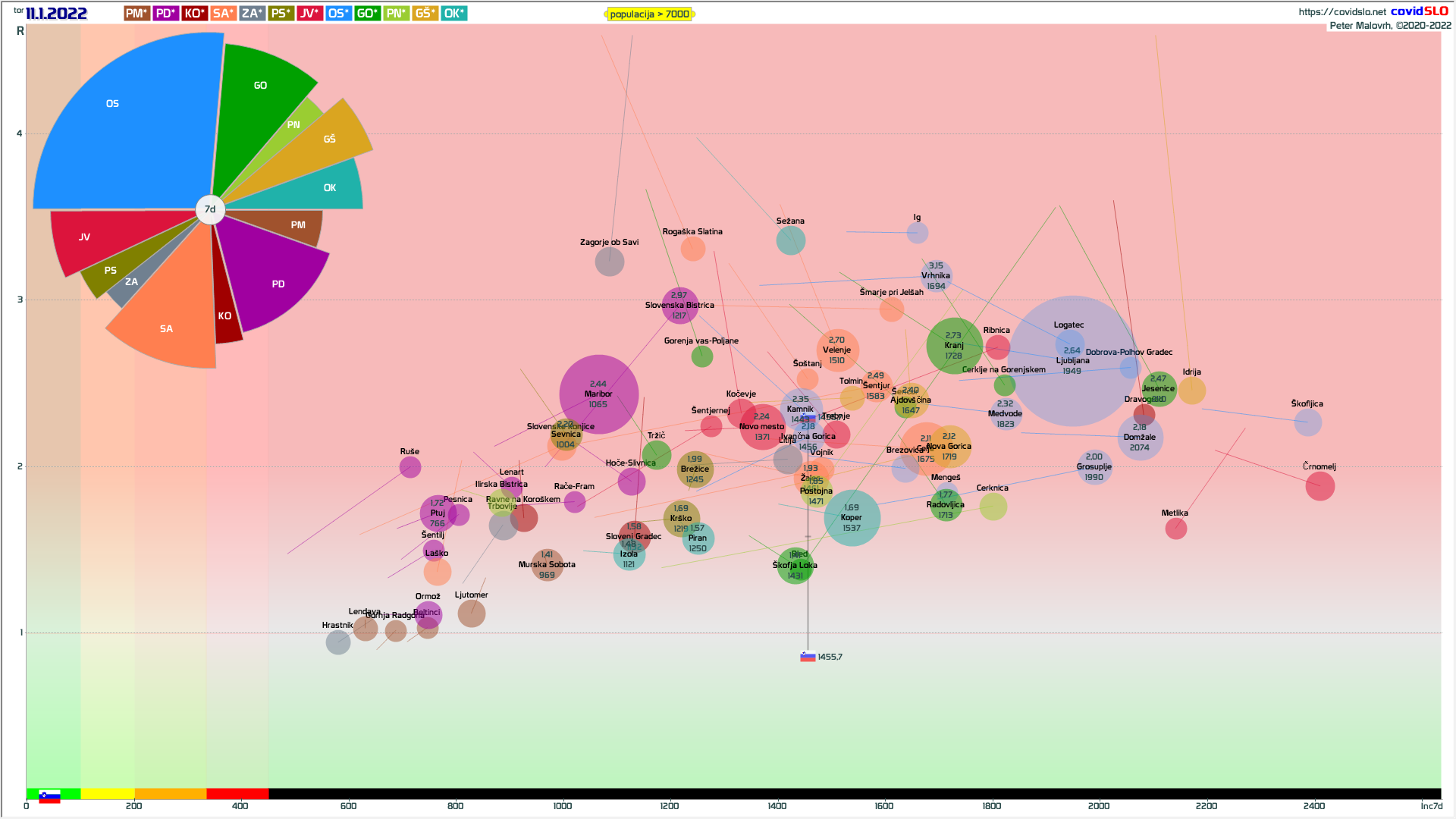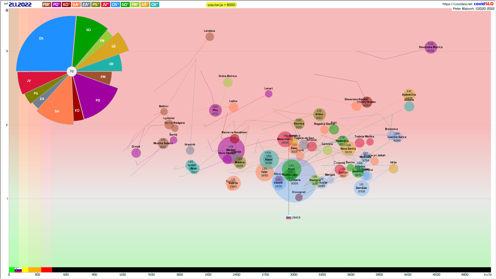 R=0.83, v zadnjem dnevu porast, morda že zaradi omikrona ali pa veselega decembra