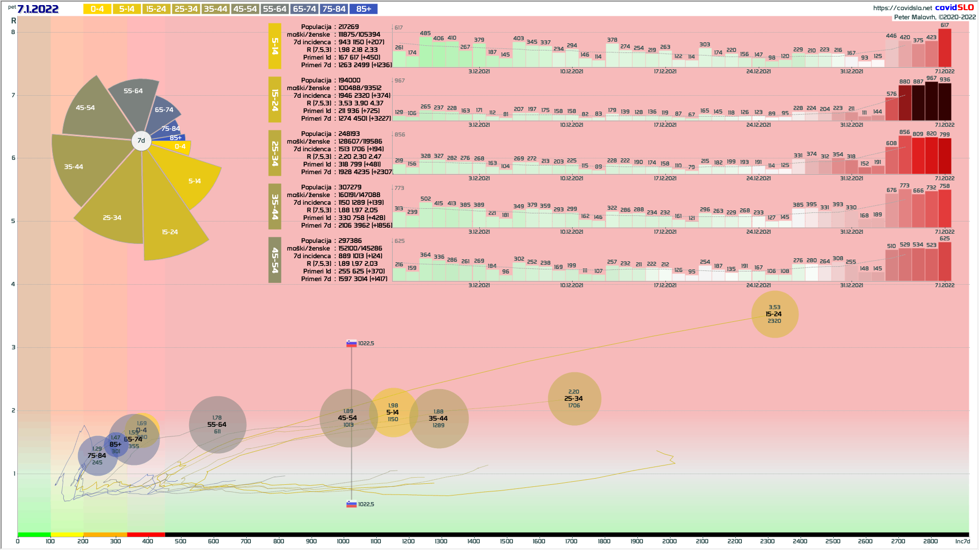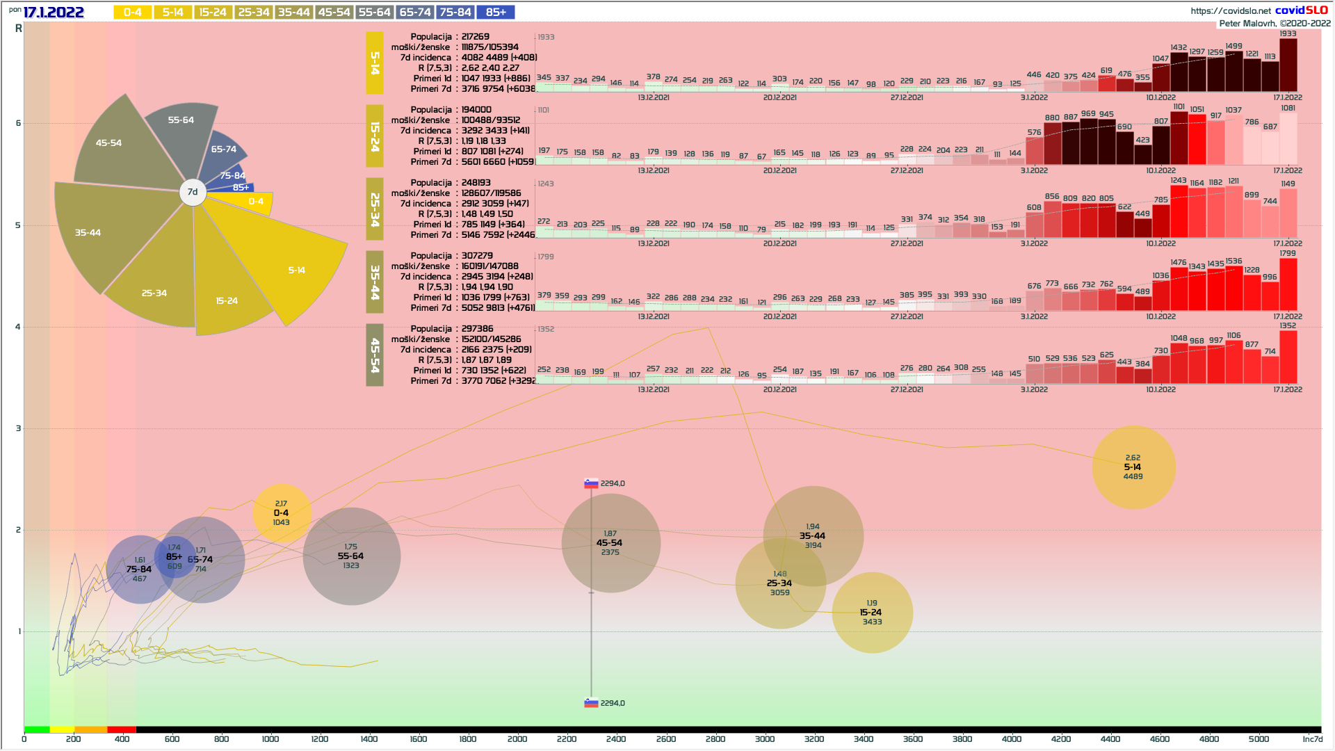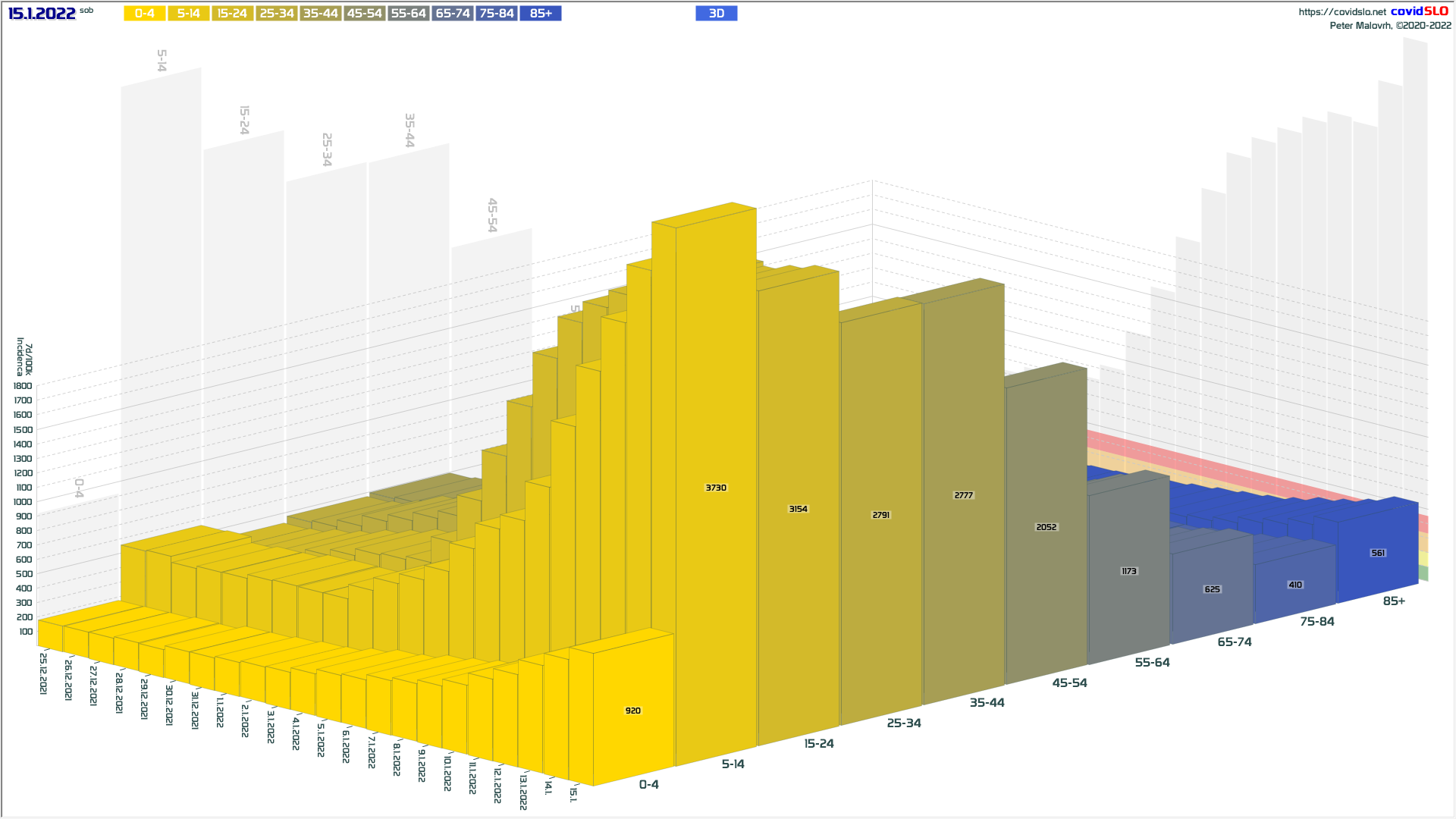 največji porast primerov je bil do sredine januarja v skupini 15-24 let, ki je prevzela vodstvo in podira rekorde incidenc skupina 5-14 let (tudi 9.4% potrjeno okuženih v 7 dneh !!!)