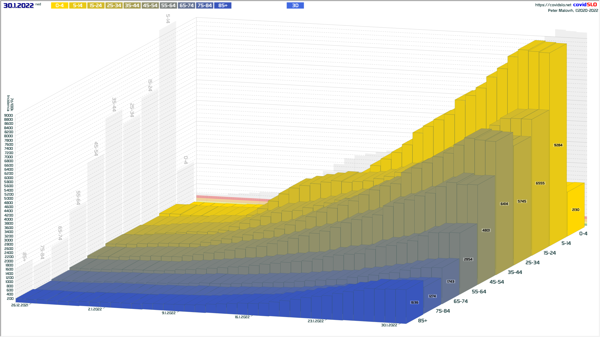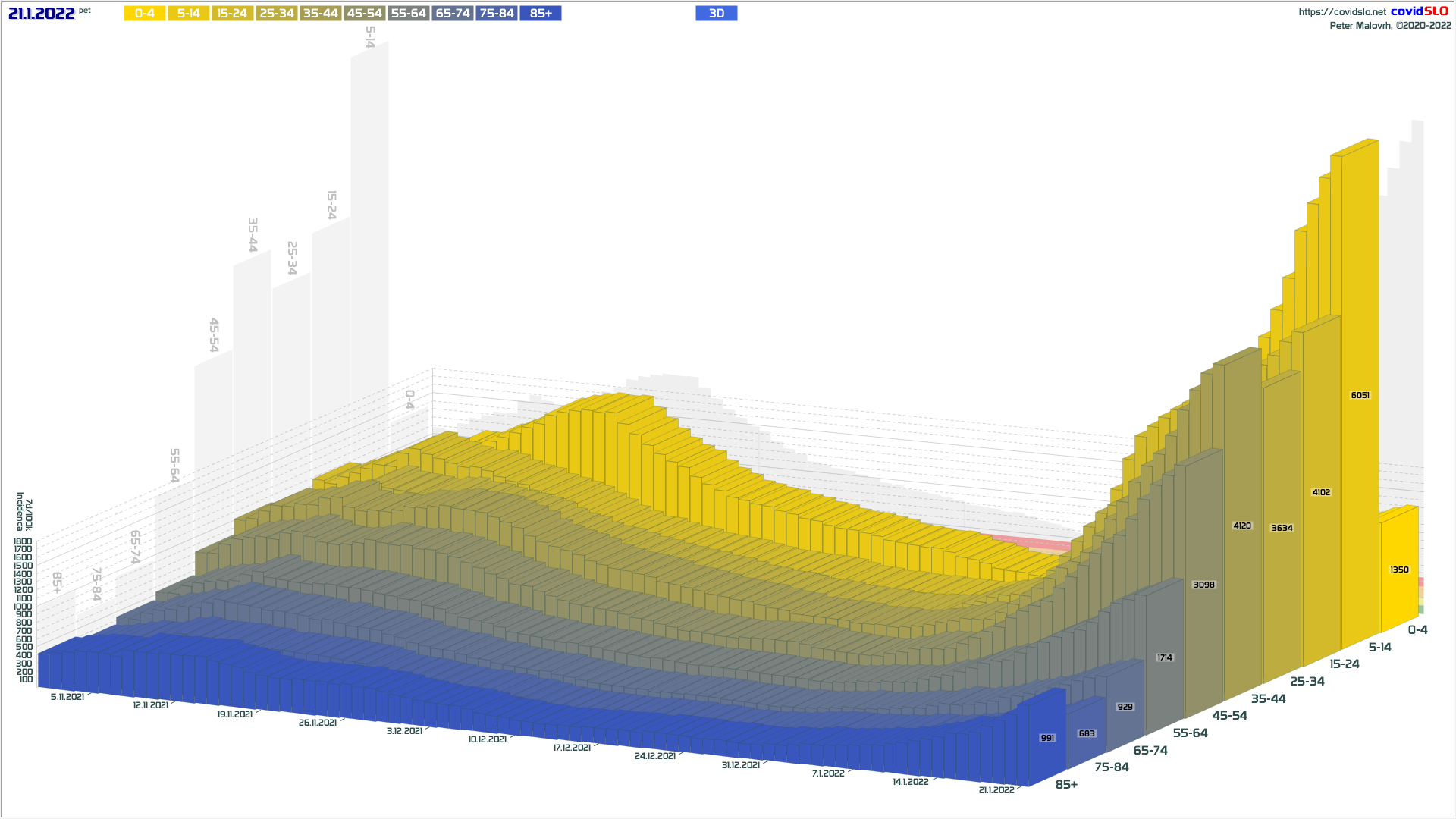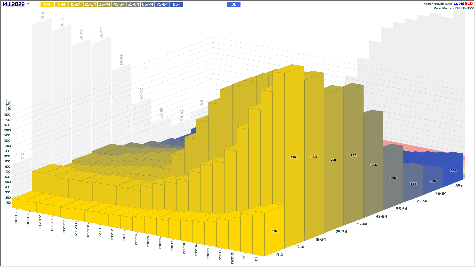 največji porast primerov je bil do sredine januarja v skupini 15-24 let, ki je prevzela vodstvo in podira rekorde incidenc skupina 5-14 let (tudi 9.5% potrjeno okuženih v 7 dneh !!!)