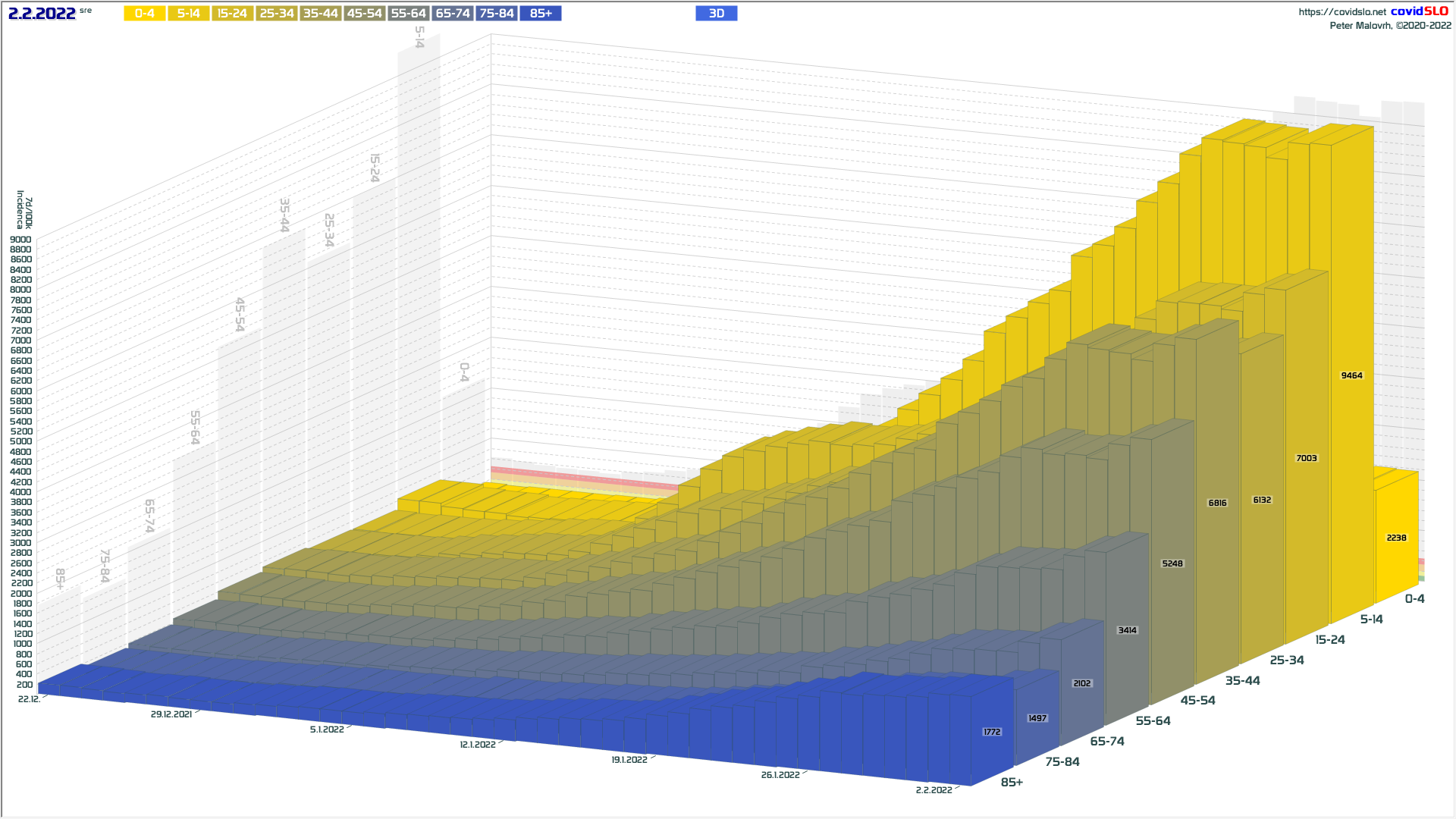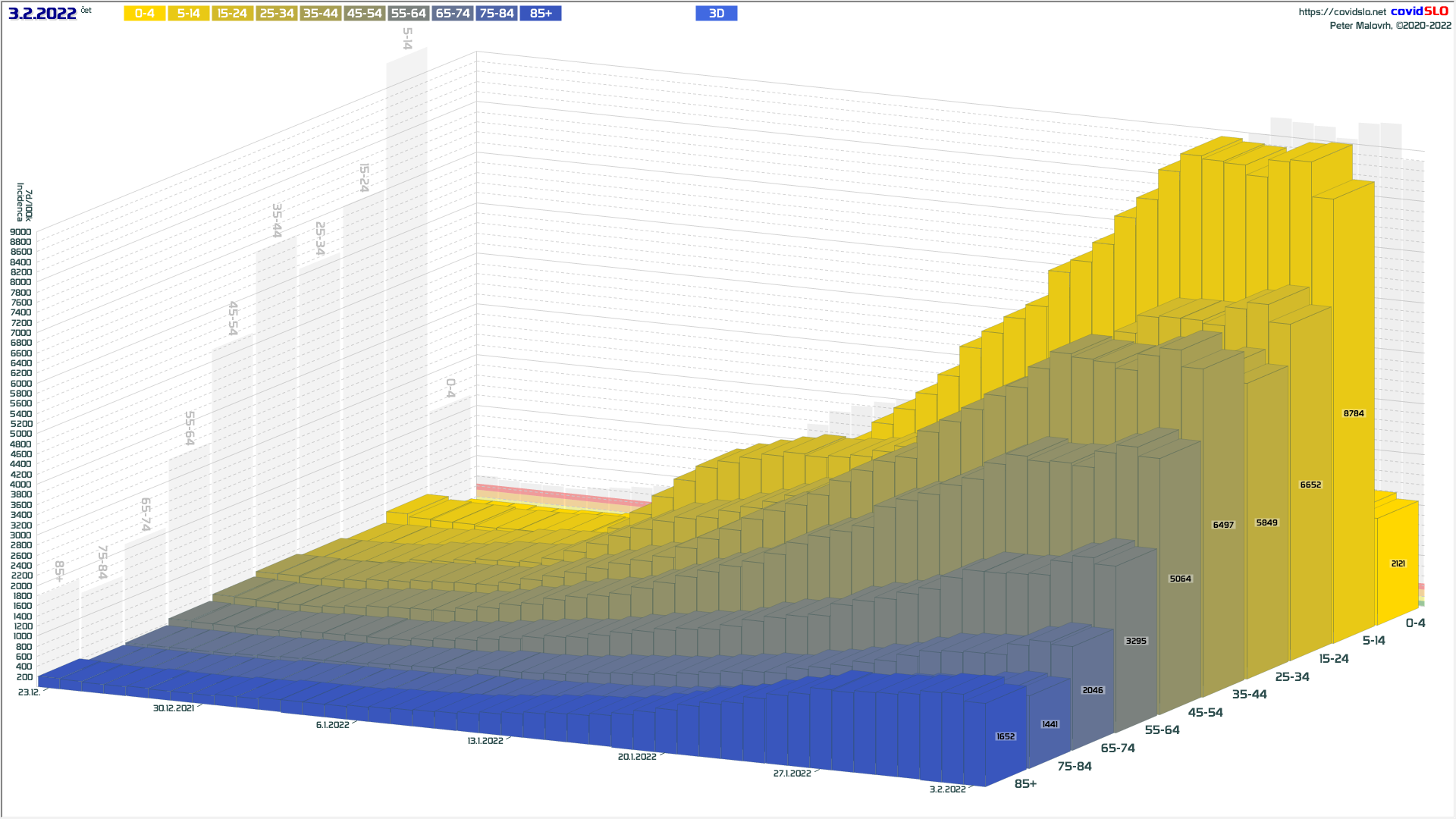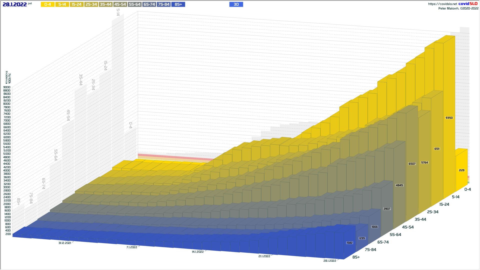 največji porast primerov je bil do sredine januarja v skupini 15-24 let, ki je prevzela vodstvo in podira rekorde incidenc skupina 5-14 let (tudi 9.5% potrjeno okuženih v 7 dneh !!!)
