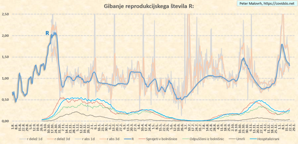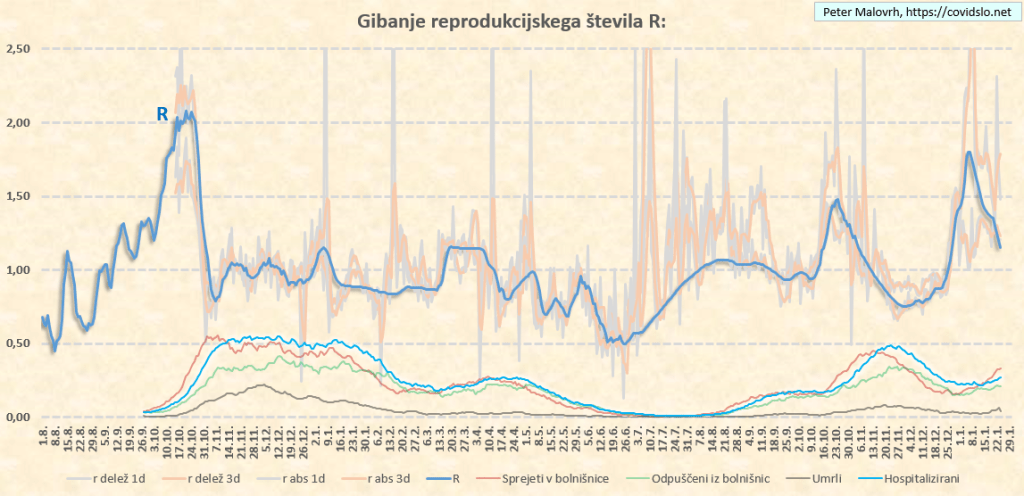 R=1.02 (izmerjeno za 4 dni nazaj, zaradi zamikov natančna določitev ni možna)
