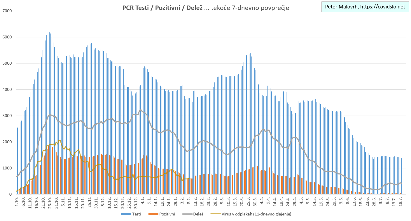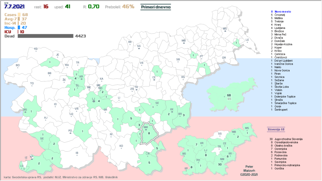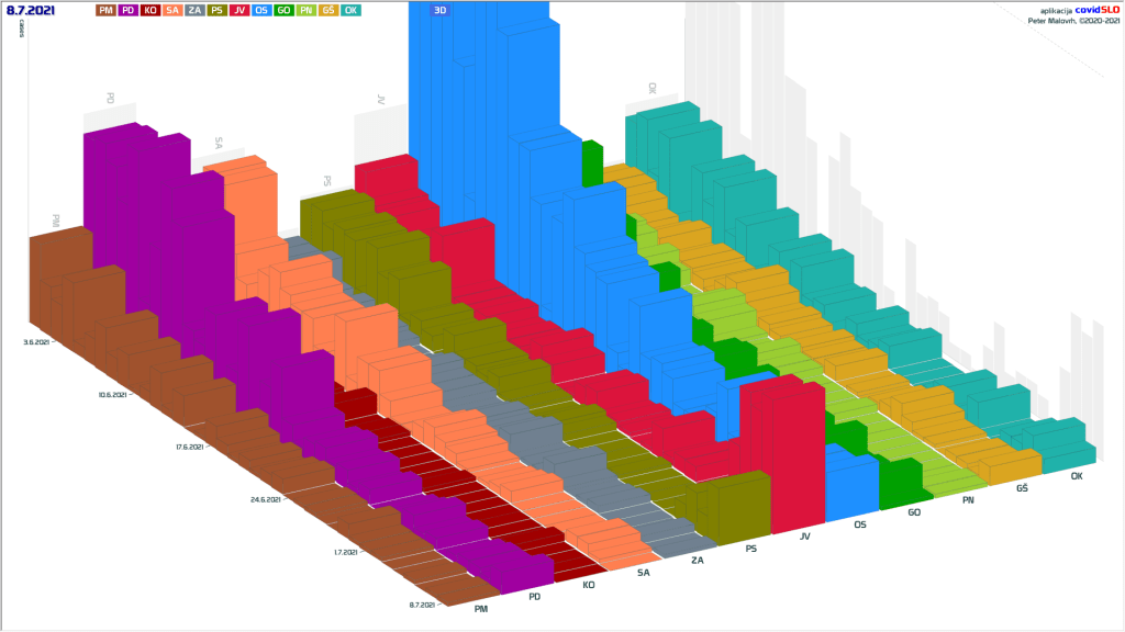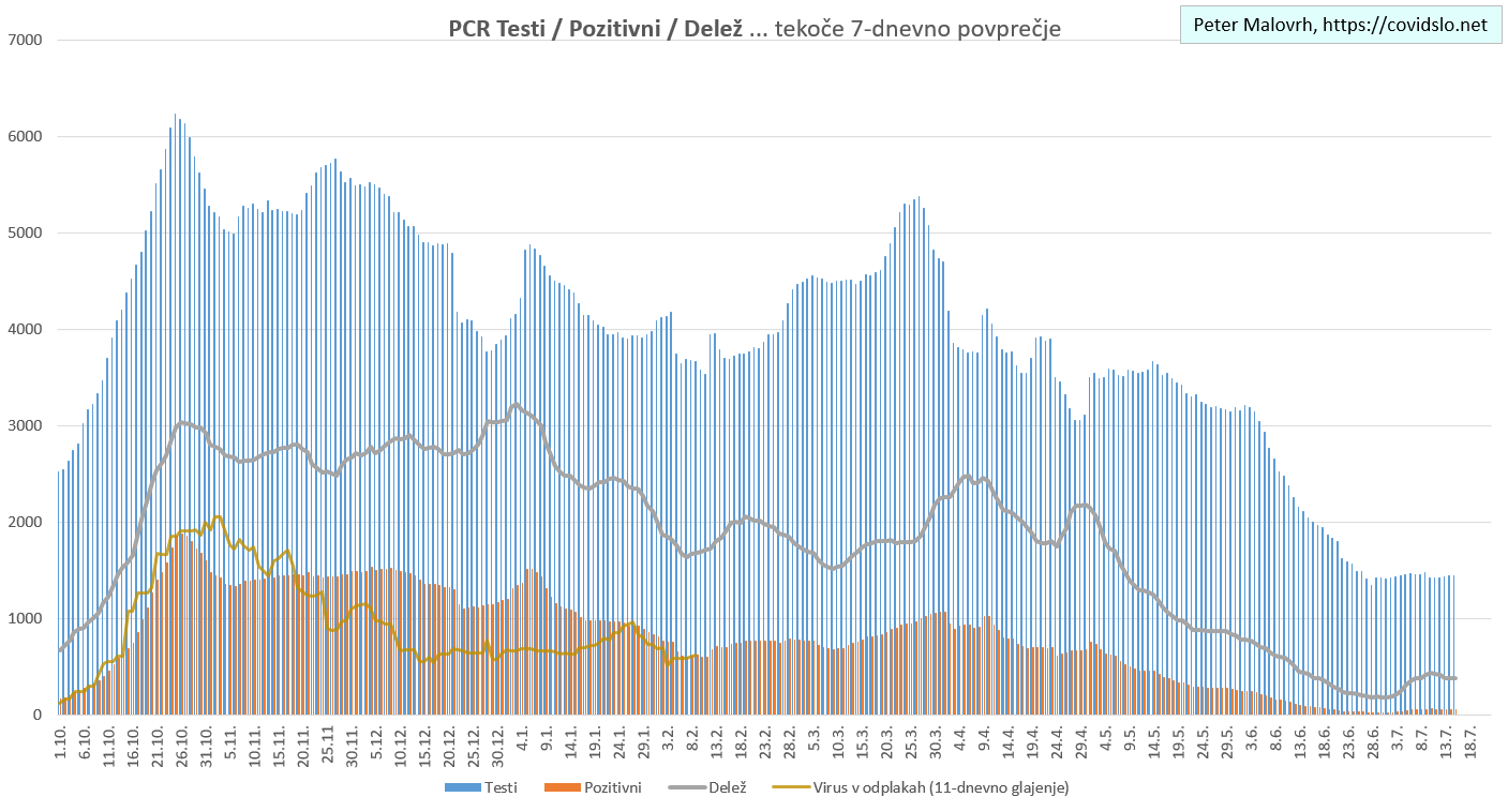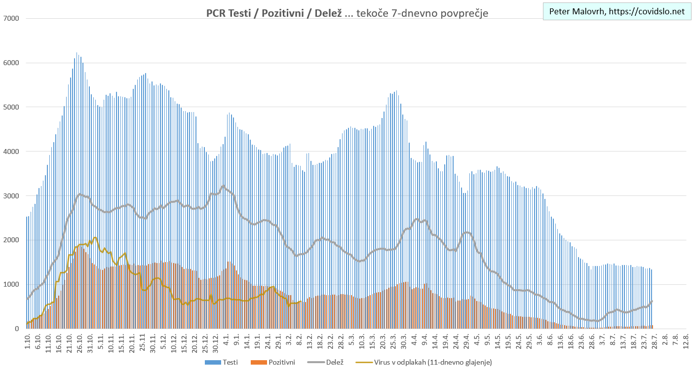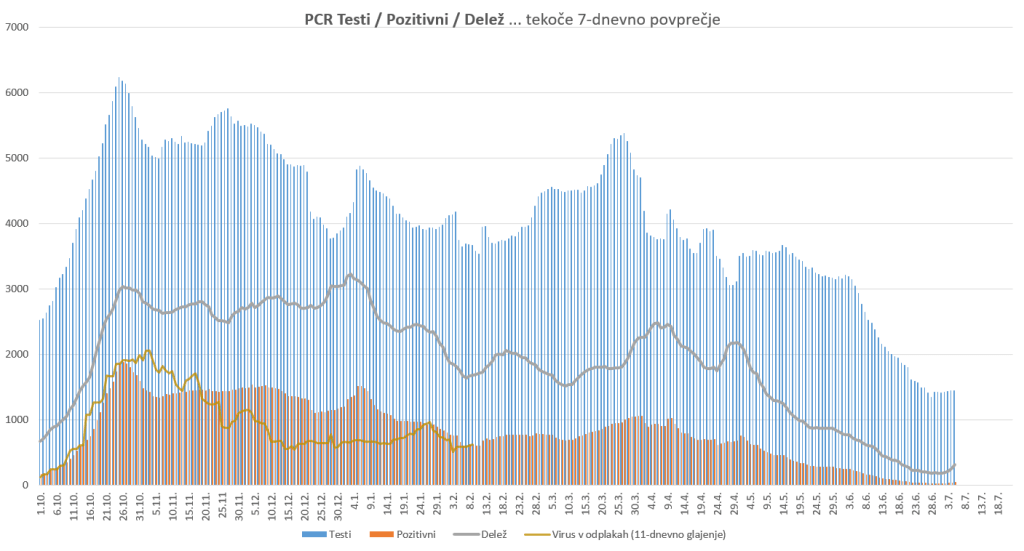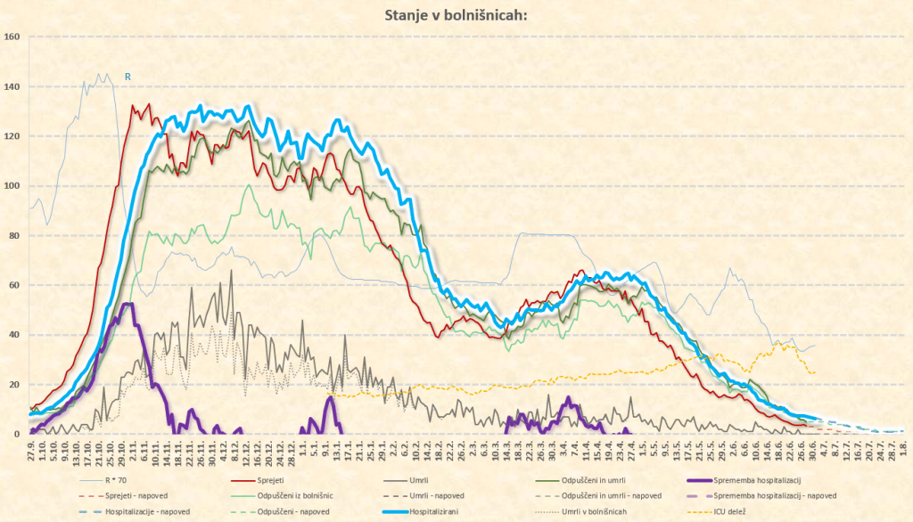 Imamo poletno ugodne zunanje razmere, žal pa se je cepljenje precej zaustavilo. Epidemija je hitro padla in je v poletnemu “mirovnemu” stanju, ki predvsem zaradi importiranih primerov ni enako 0.