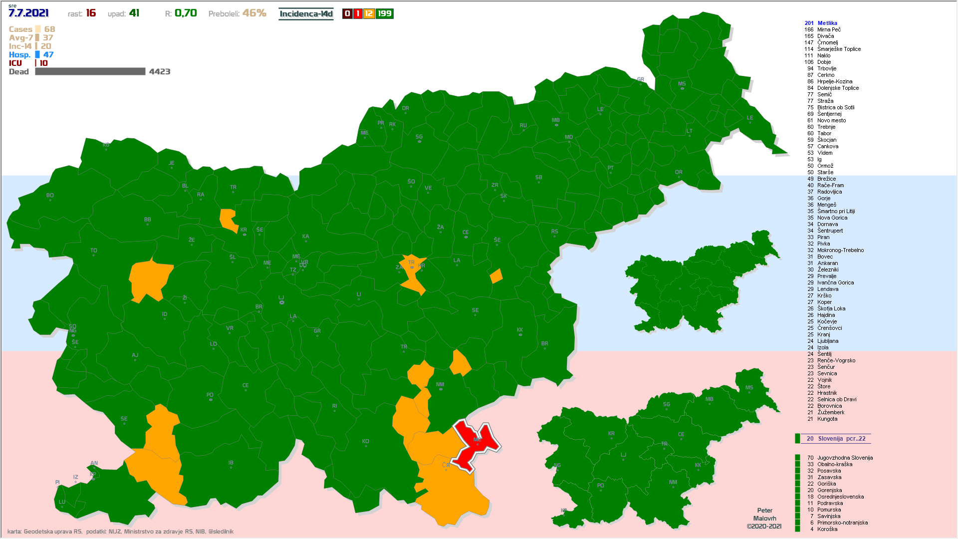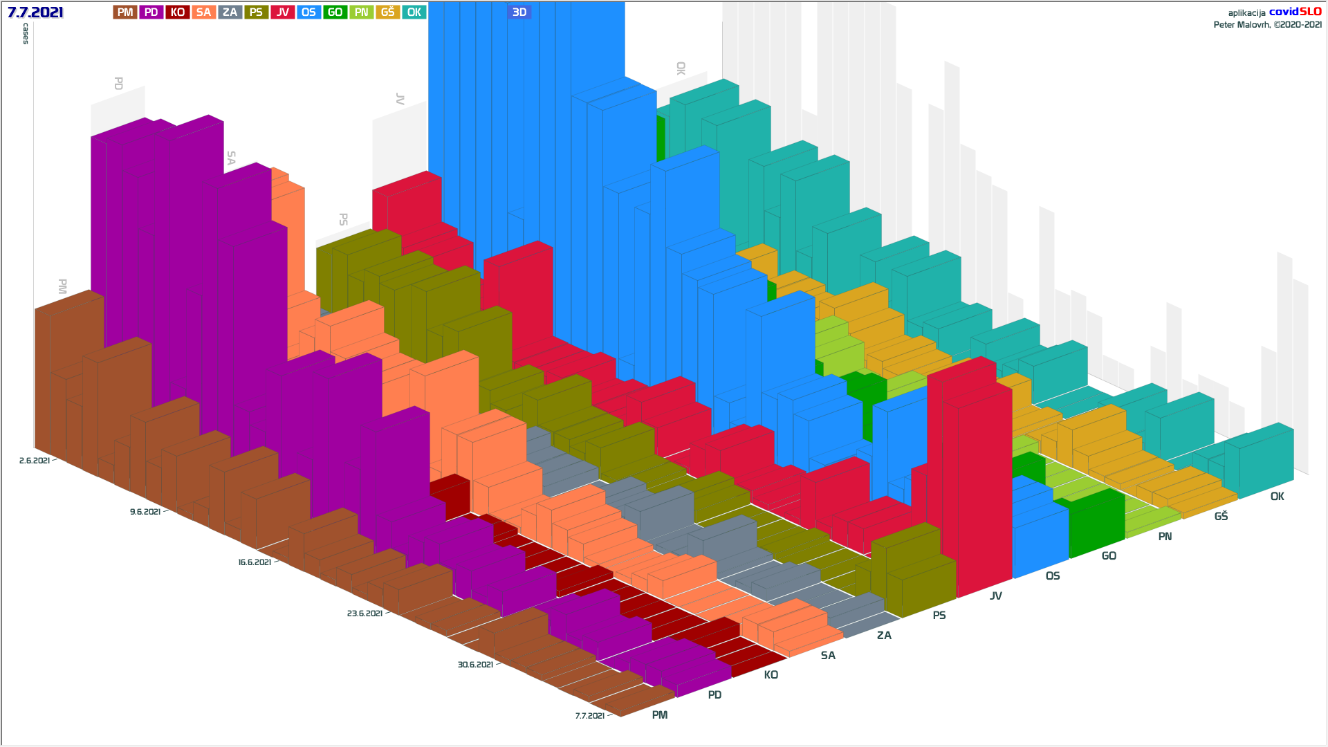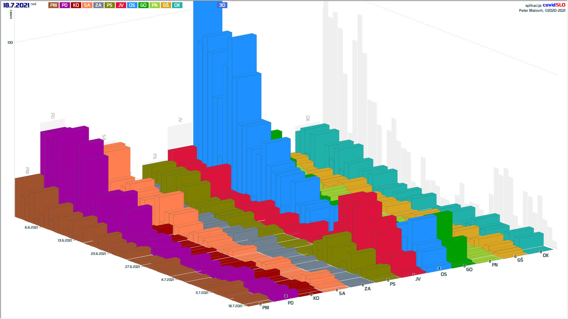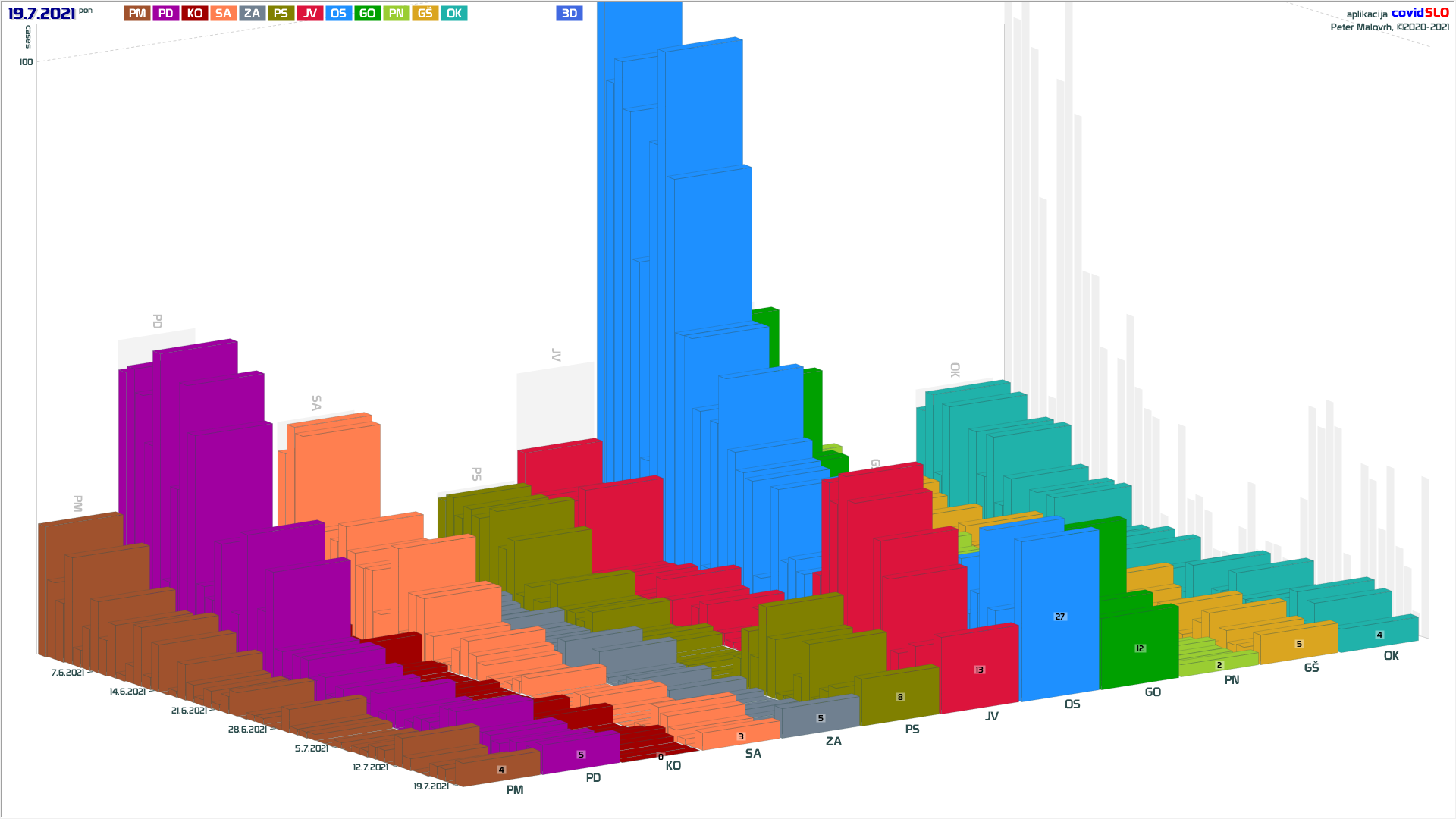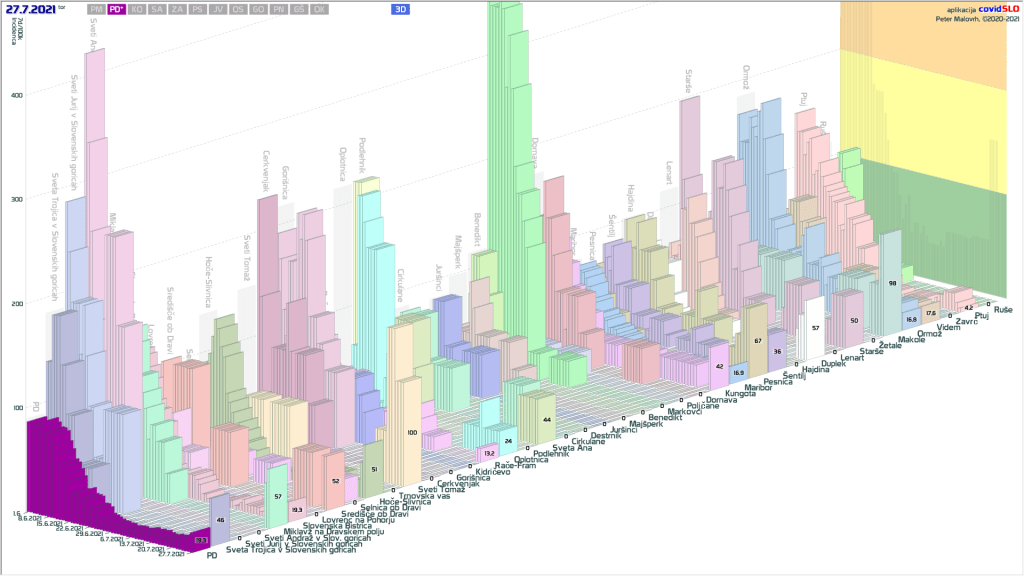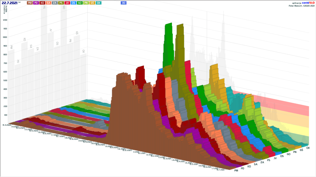 Imamo poletno ugodne zunanje razmere, žal pa se je cepljenje precej zaustavilo. Epidemija je hitro padla in je v poletnemu “mirovnemu” stanju, ki predvsem zaradi importiranih primerov ni enako 0.