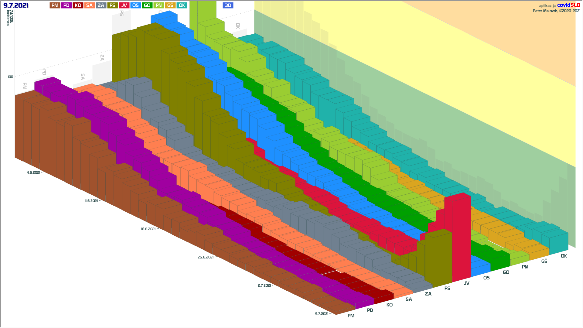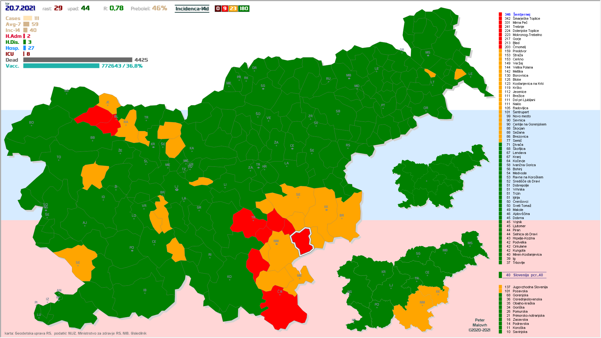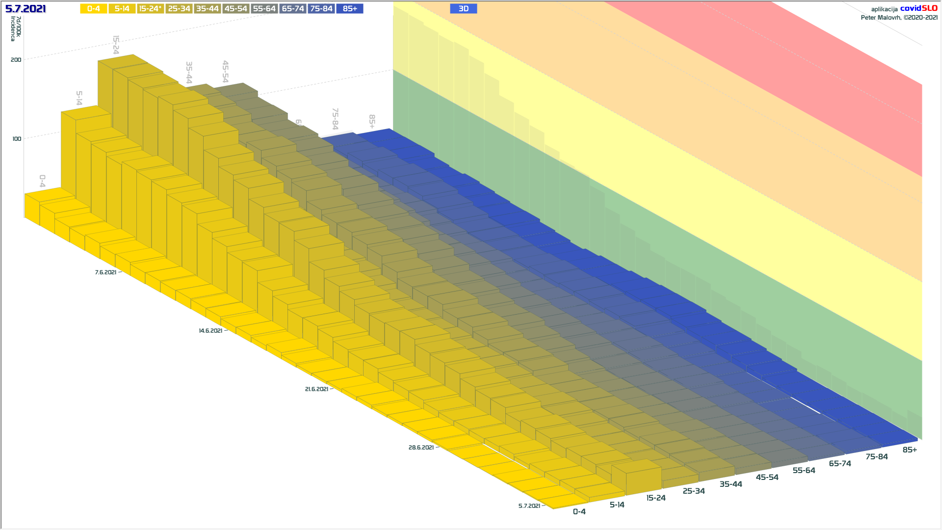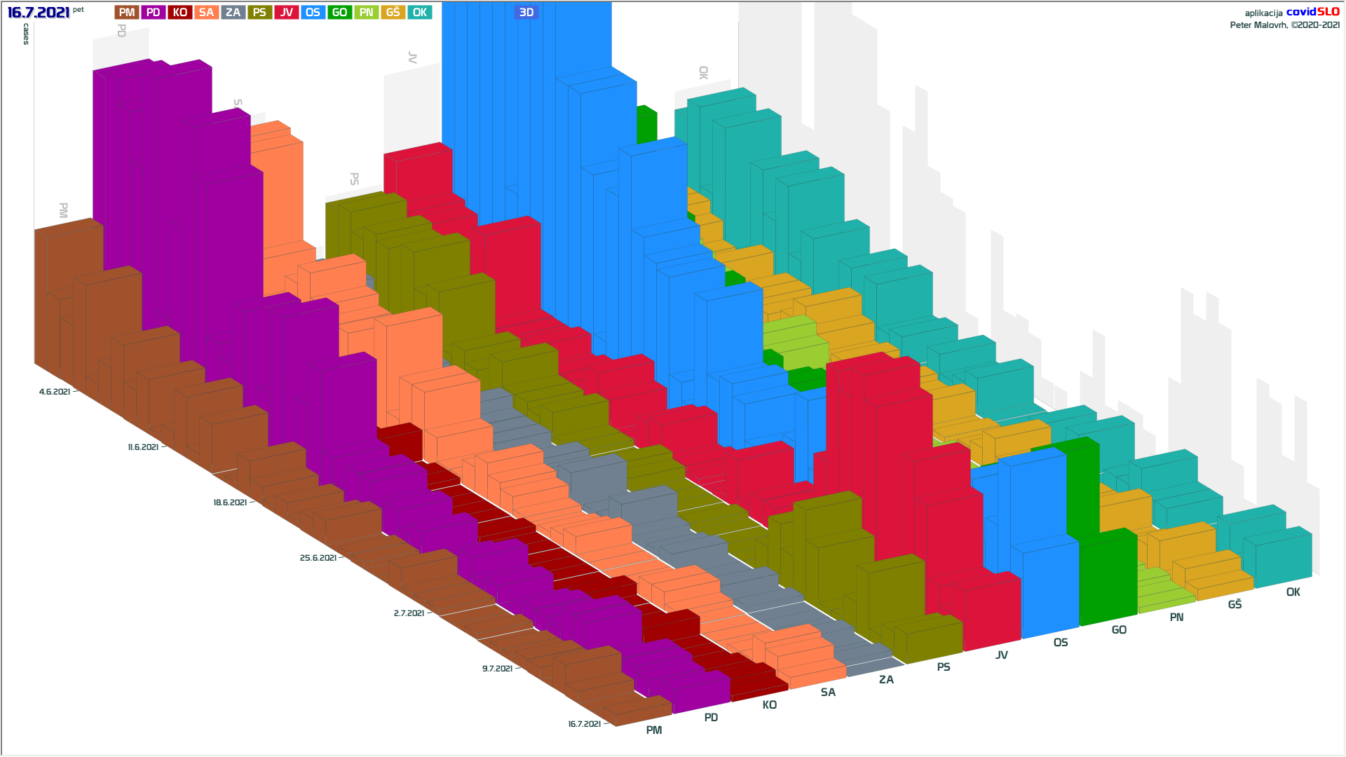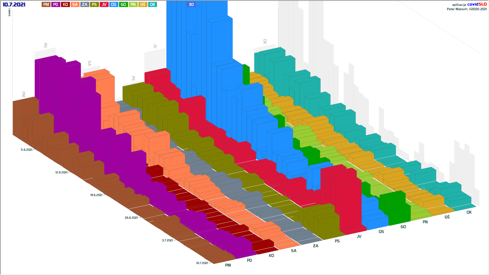 Imamo poletno ugodne zunanje razmere, žal pa se je cepljenje precej zaustavilo. Epidemija je hitro padla in je v poletnemu “mirovnemu” stanju, ki predvsem zaradi importiranih primerov ni enako 0.