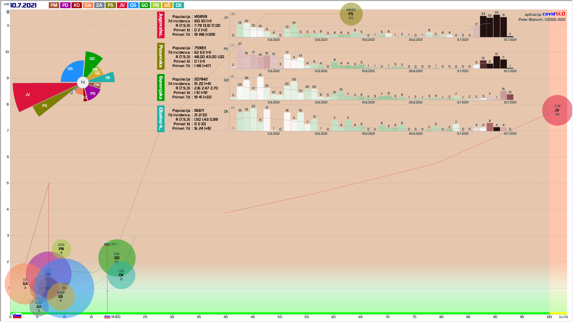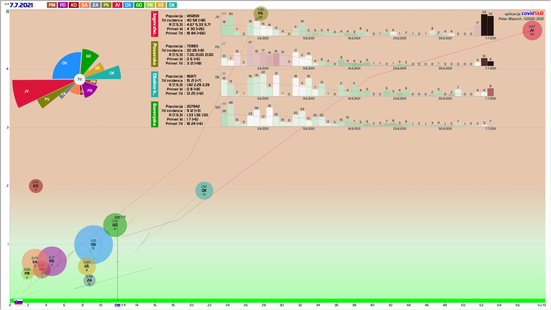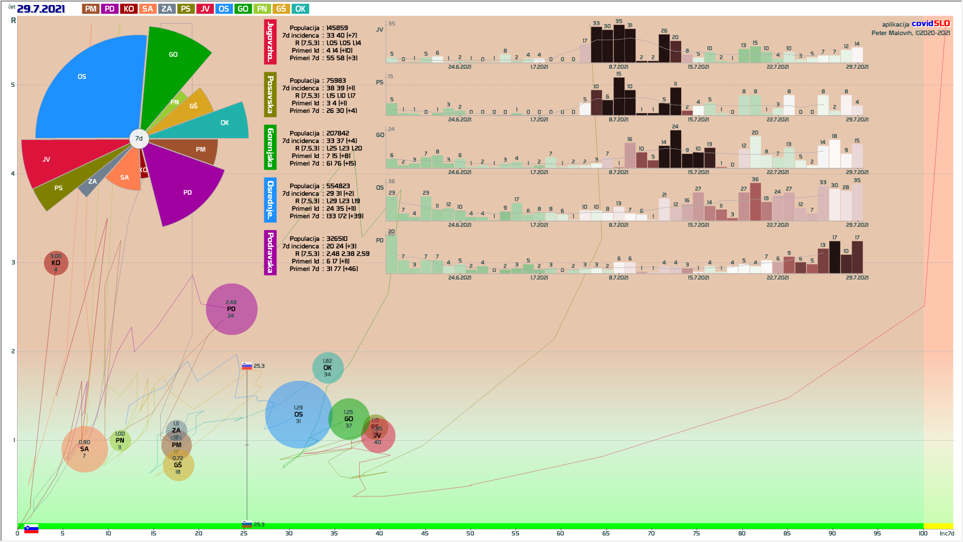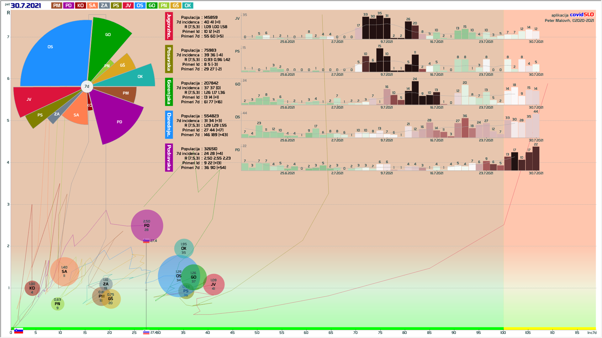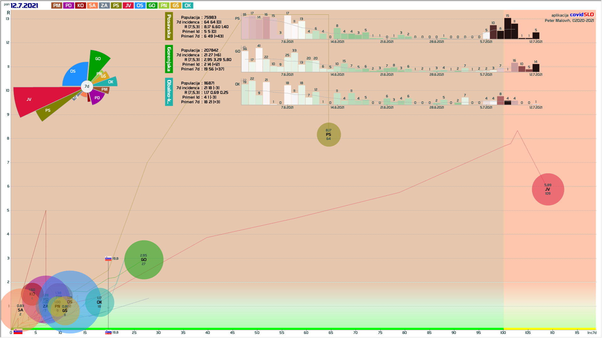 sedaj nekaj malega rasti v PD regiji, verjetno spet zaradi importiranja primerov, R ni več tako nizek, da bi to hitro izničil