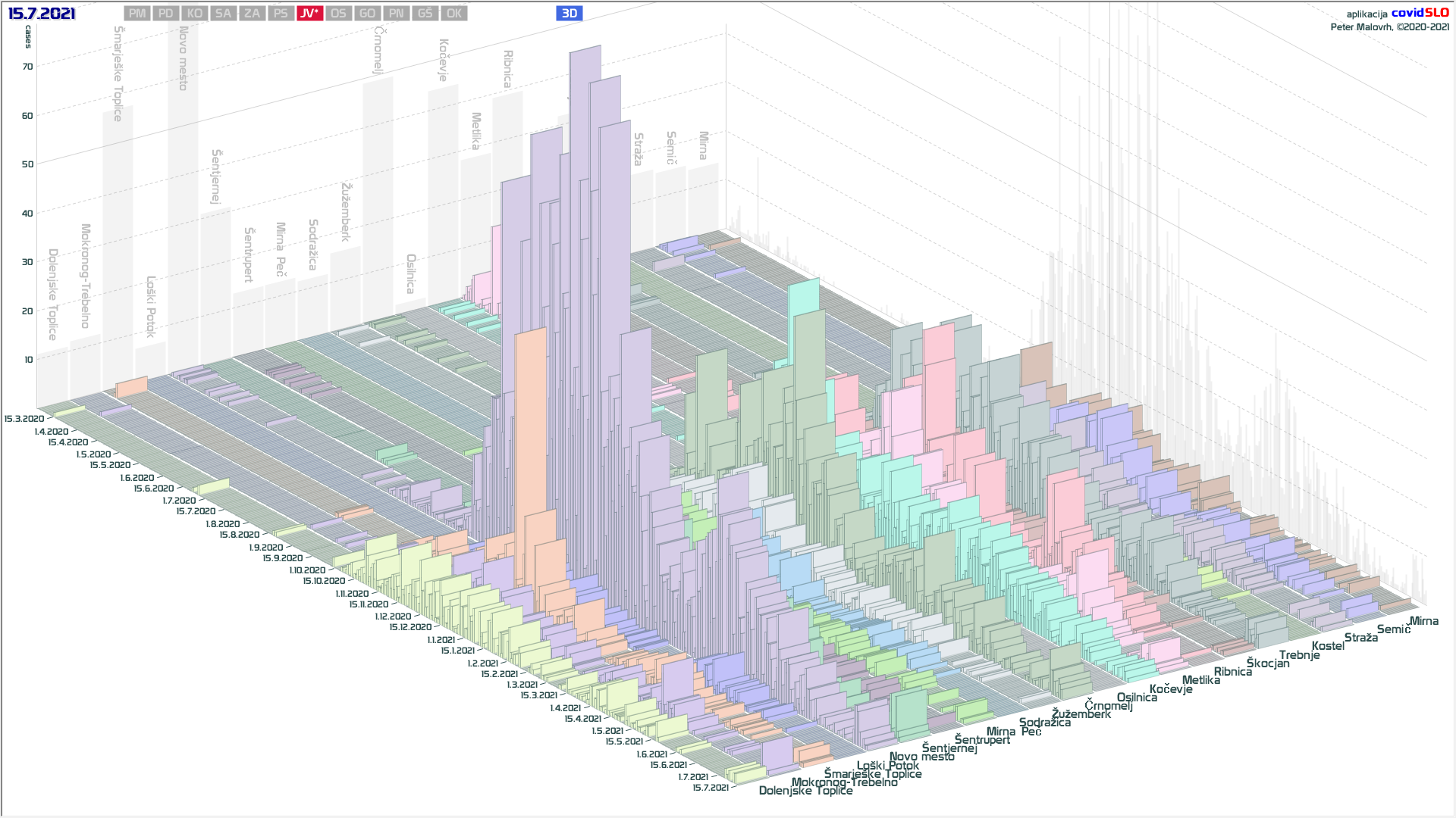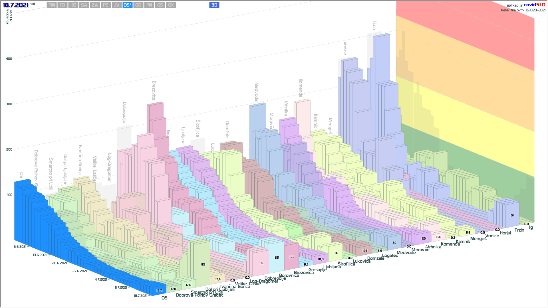 situacija v regijah umirjena, importirani primeri se zdaj počasi absorbirajo, incidenca zato počasi raste