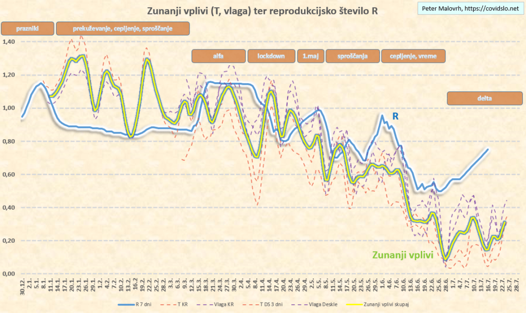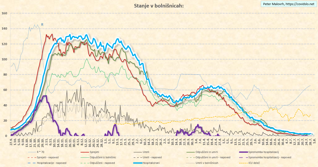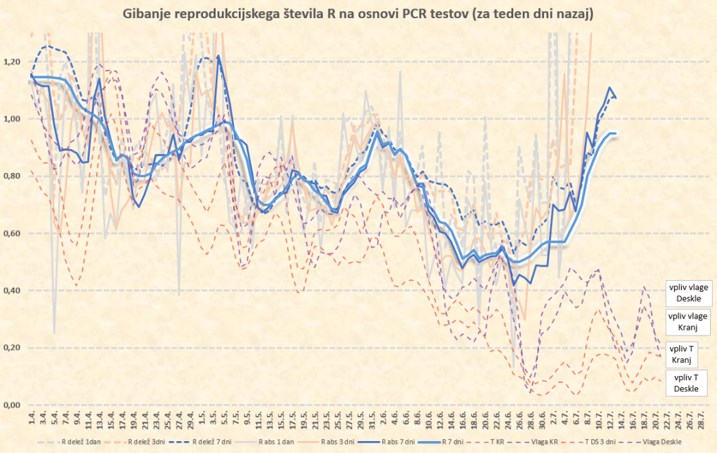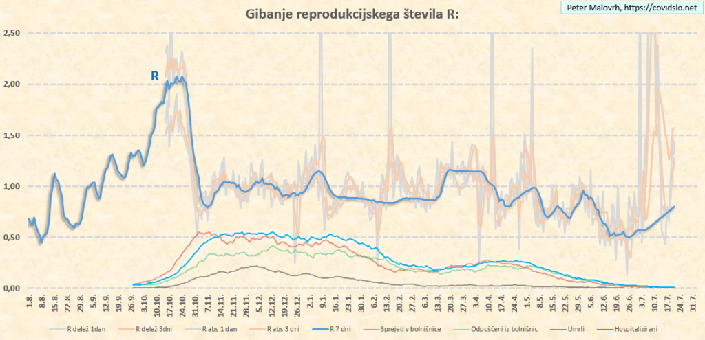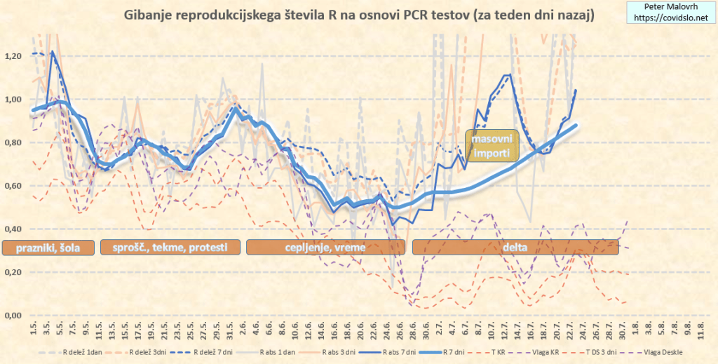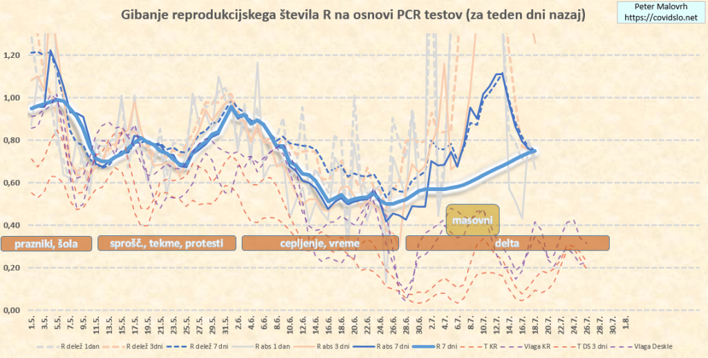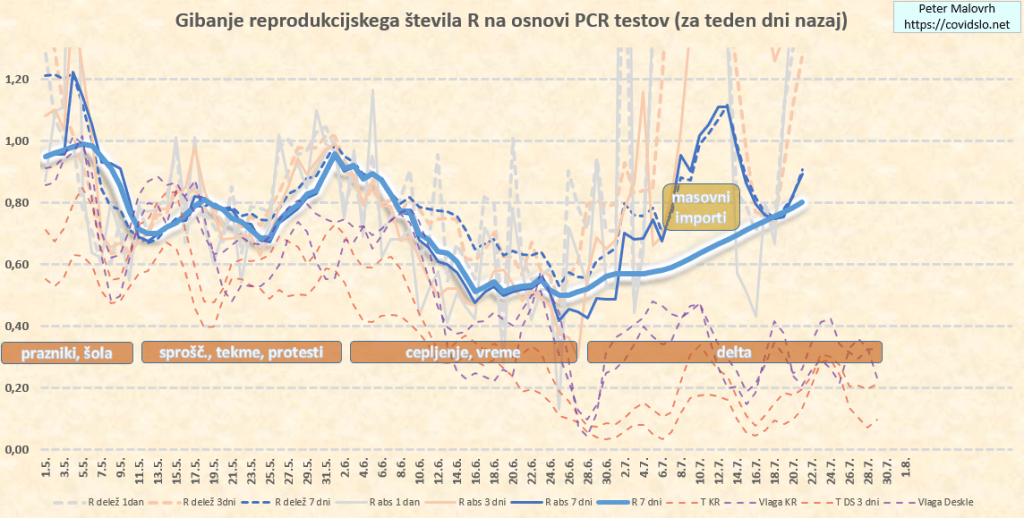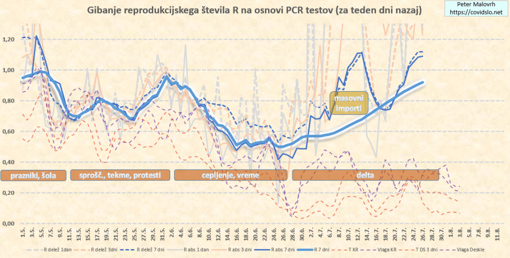 Ocenjujem (za teden dni nazaj) R=0.95. Zaradi delte še vedno počasi leze navzgor.