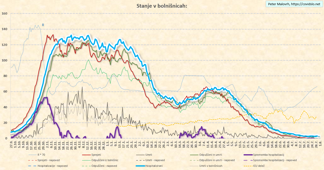 novih sprejemov v bolnišnice je naraslo iz 1 na 2-3/dan, smrti je 2/teden