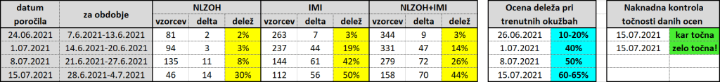 Pregled in ocena sta napravljena na osnovi poročil NLZOH (zadnje poročilo) in IMI. Moja ocena upošteva še zamike, izkušnje in dostopne podatke iz drugih držav.