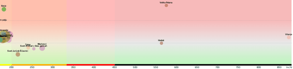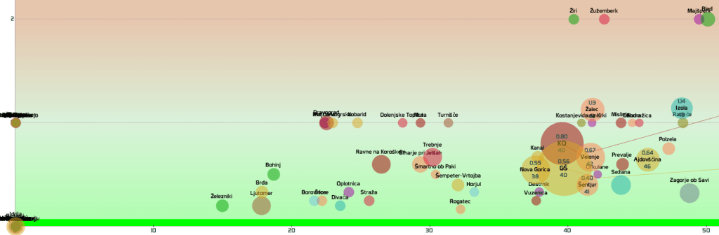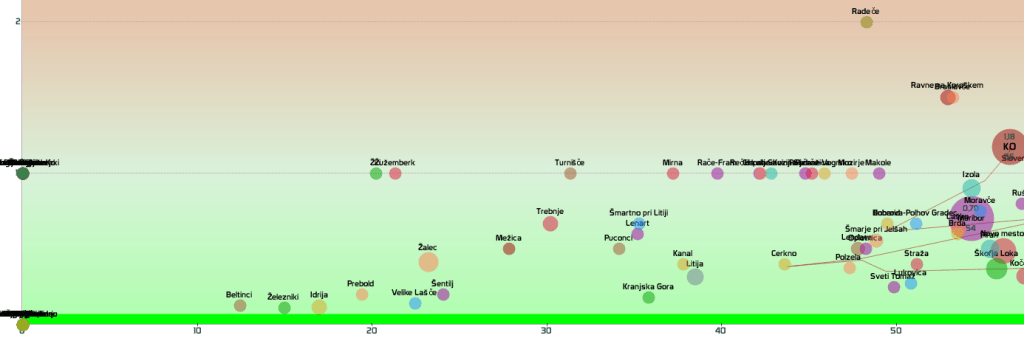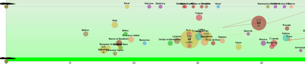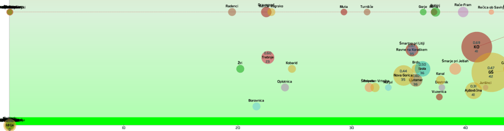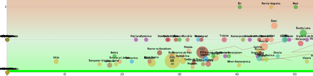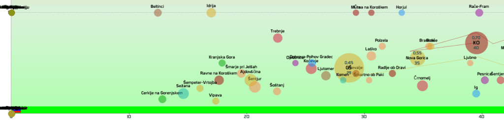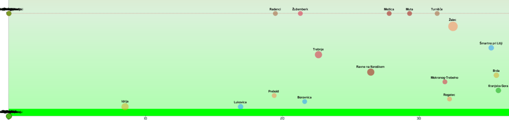 SLO-zelena: vseh 12 regij in 210 občin, SLO-rumena: 2 občini