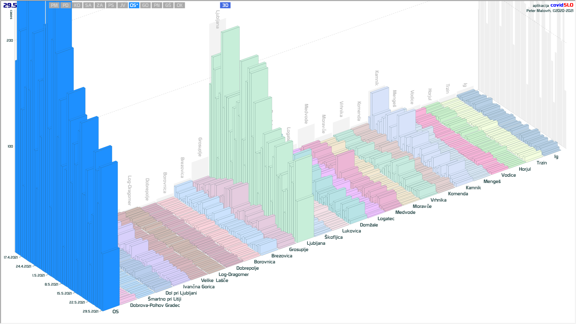 134/69/20 občin brez primerov že vsaj 1/2/4 tedne