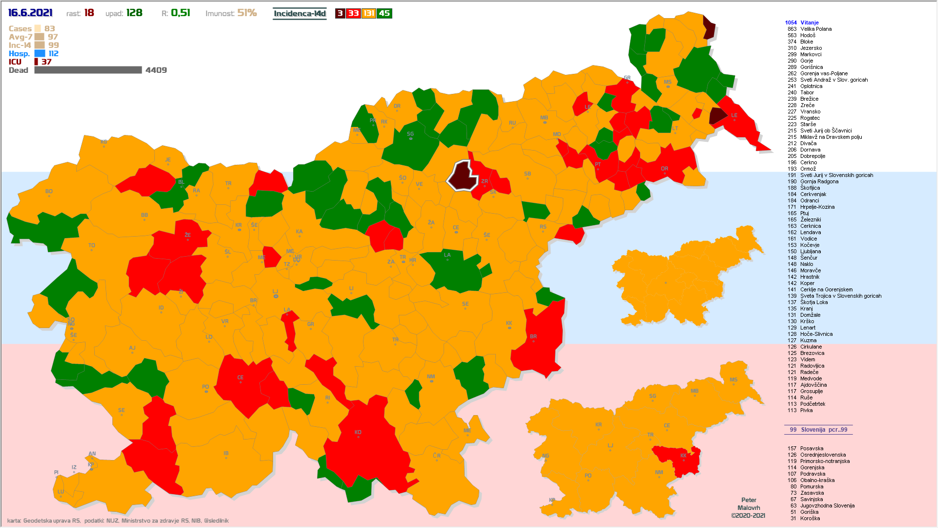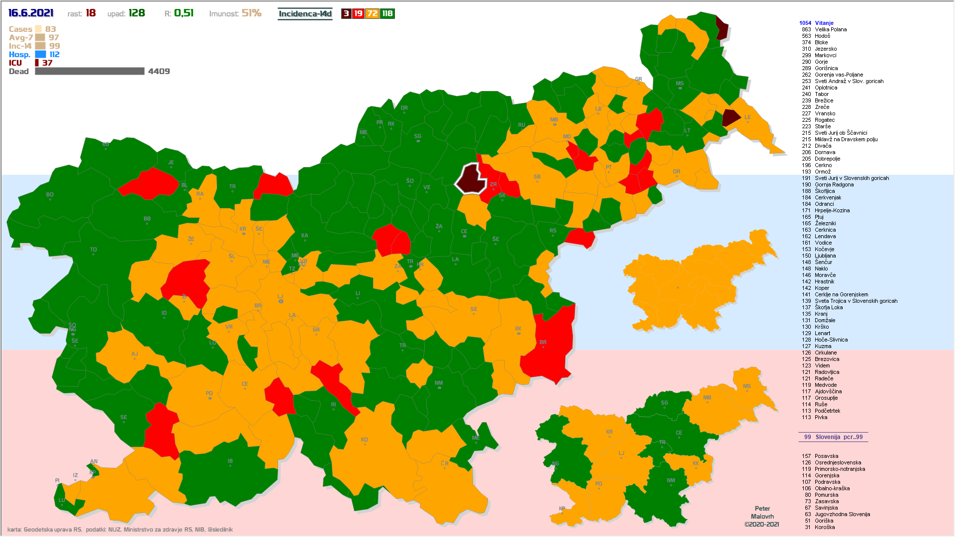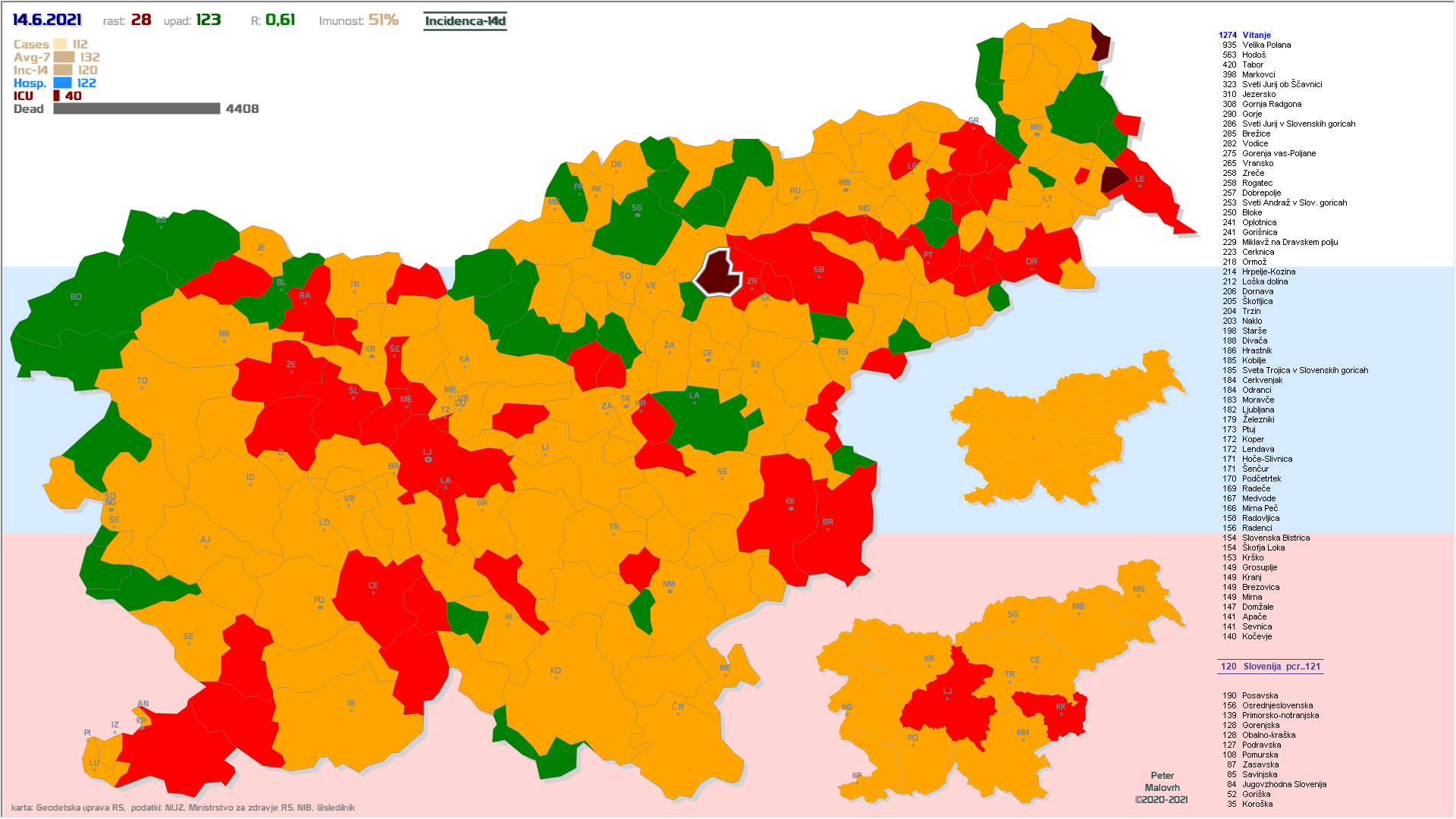37 občin brez primerov že vsaj en teden, 14 občin že vsaj 2 tedna