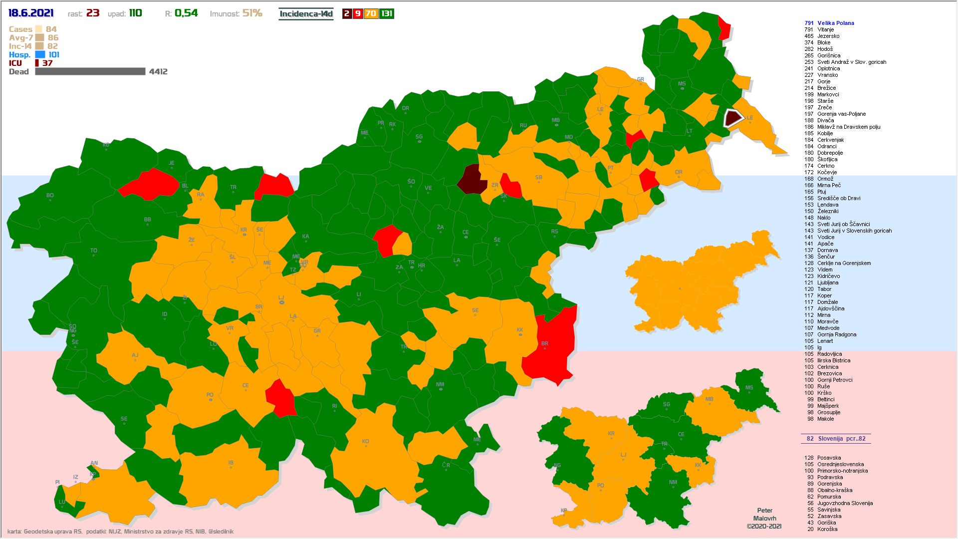 37 občin brez primerov že vsaj en teden, 18 občin že vsaj 2 tedna