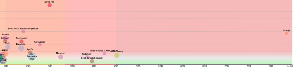 136/78/22 občin brez primerov že vsaj 1/2/4 tedne