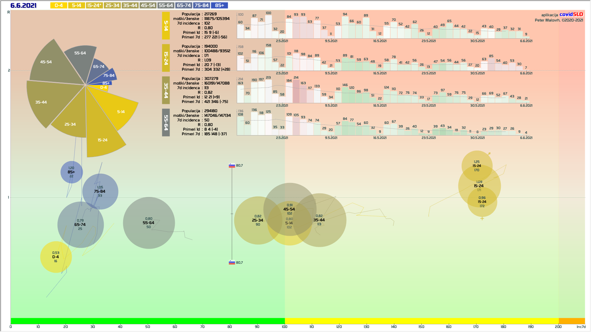 napoved evropske oranžne/zelene (14d/100k pojavnost 150/25, naša trenutna je 213): 10.6. / 9.7.