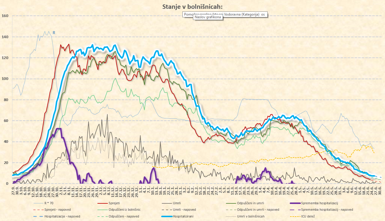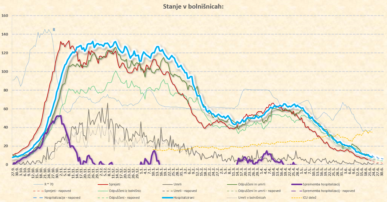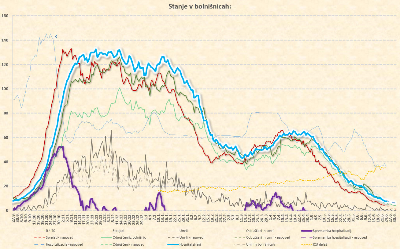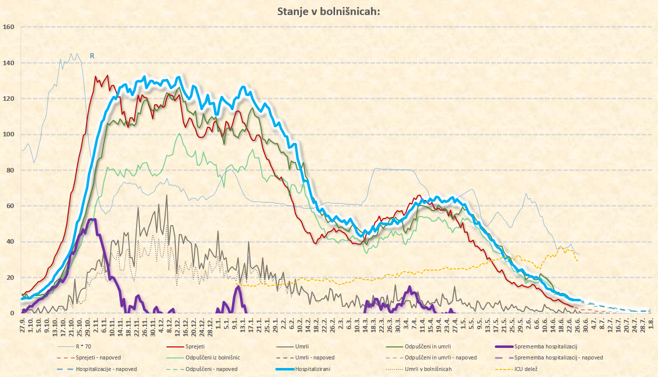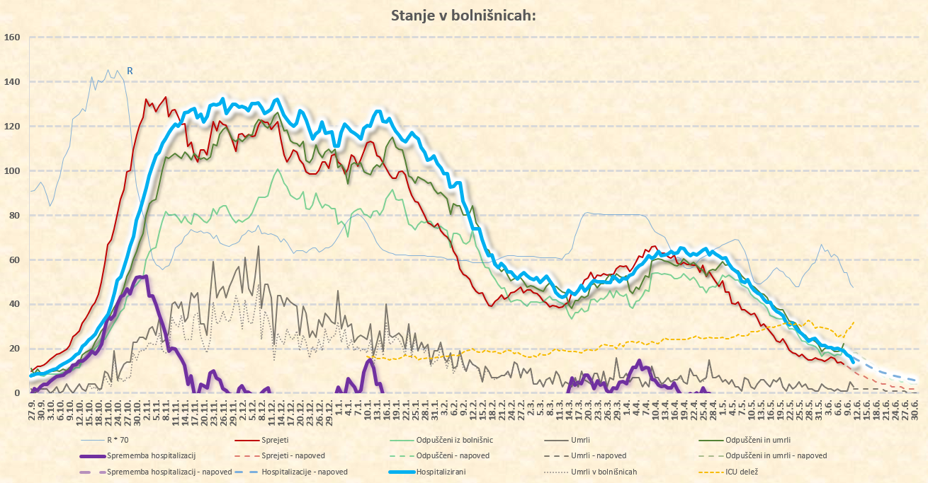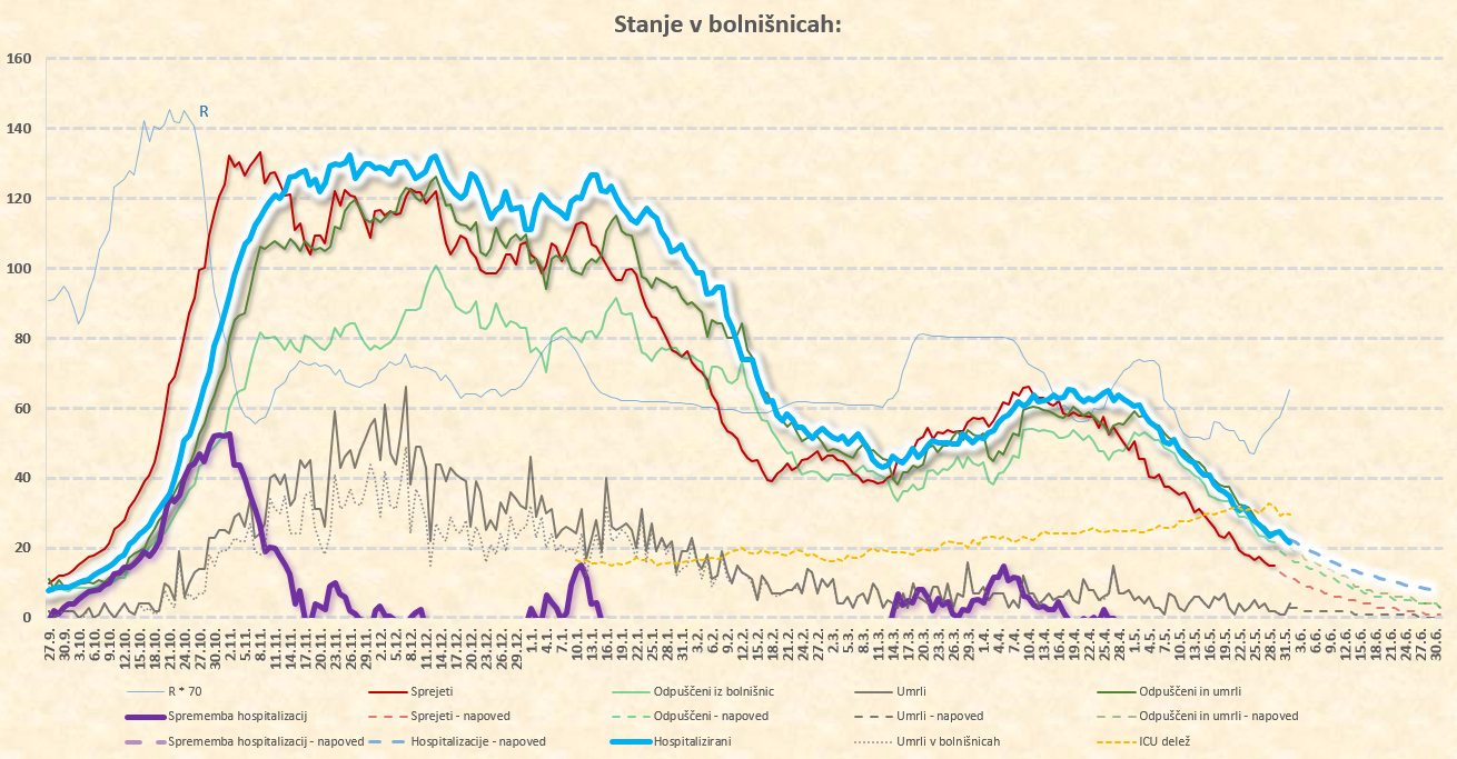 novih sprejemov je že pod 5/dan, dnevno število smrti je že pod 1/dan