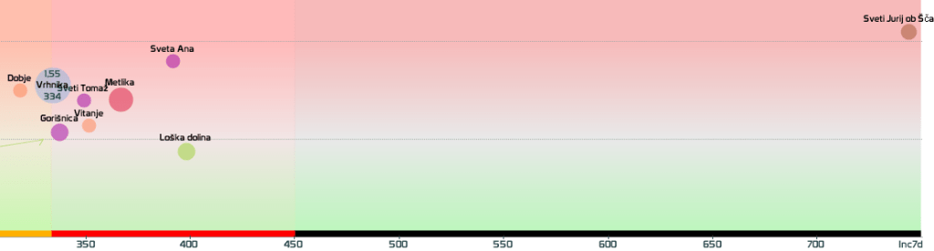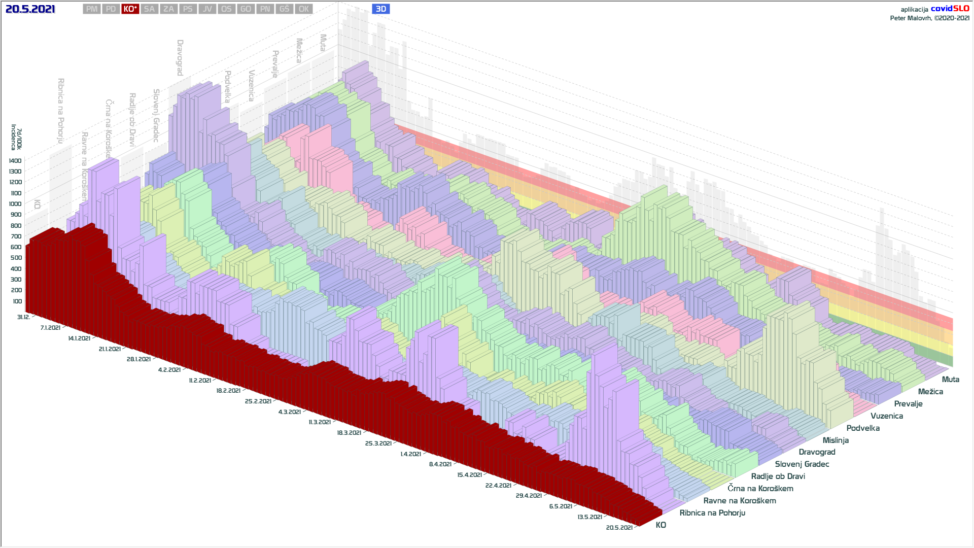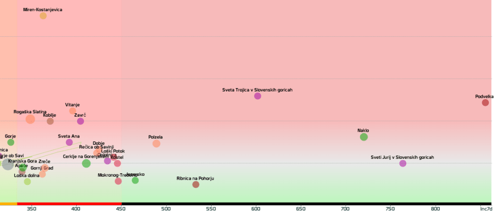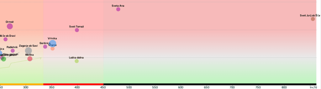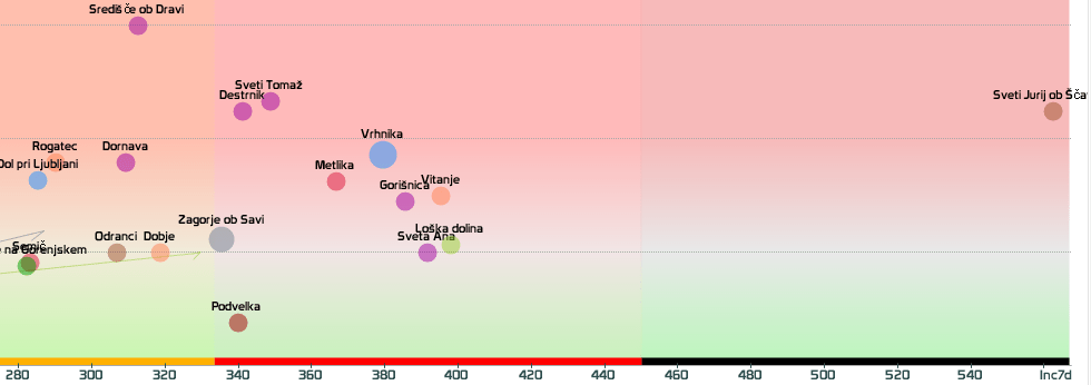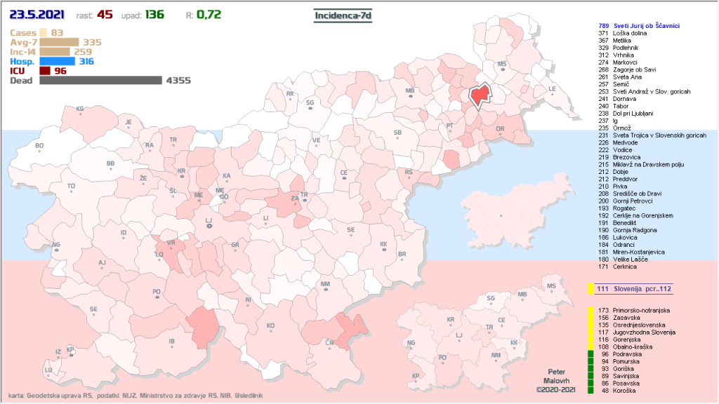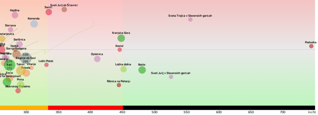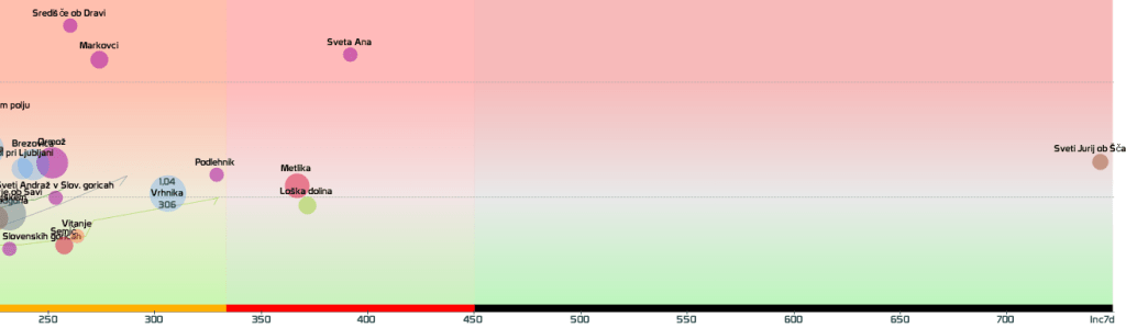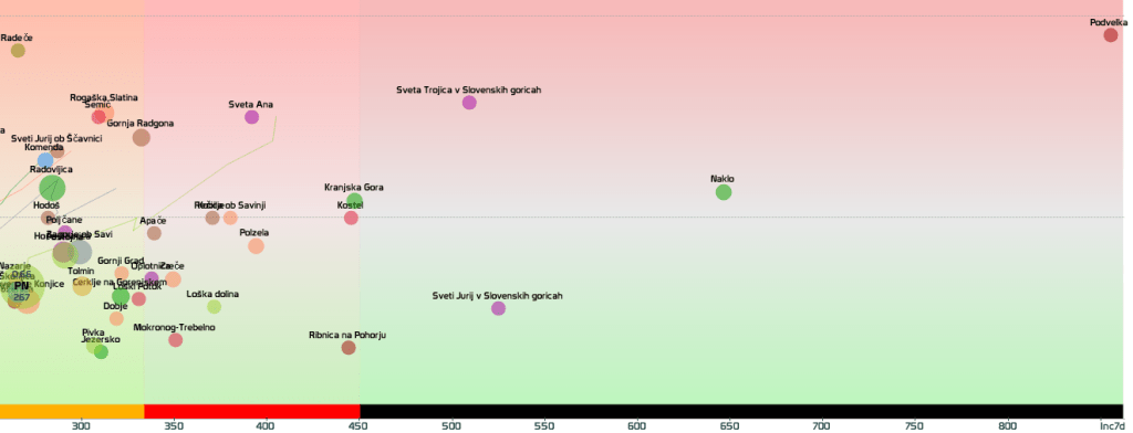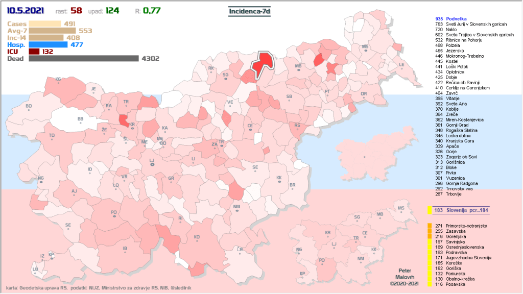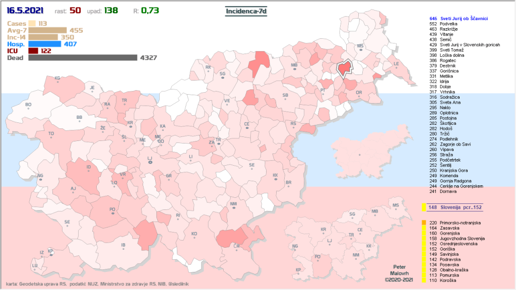 3 rumene regije, 8 oranžnih, 1 rdeča – imeli smo padec 7d povprečja zaradi praznika 27.4.