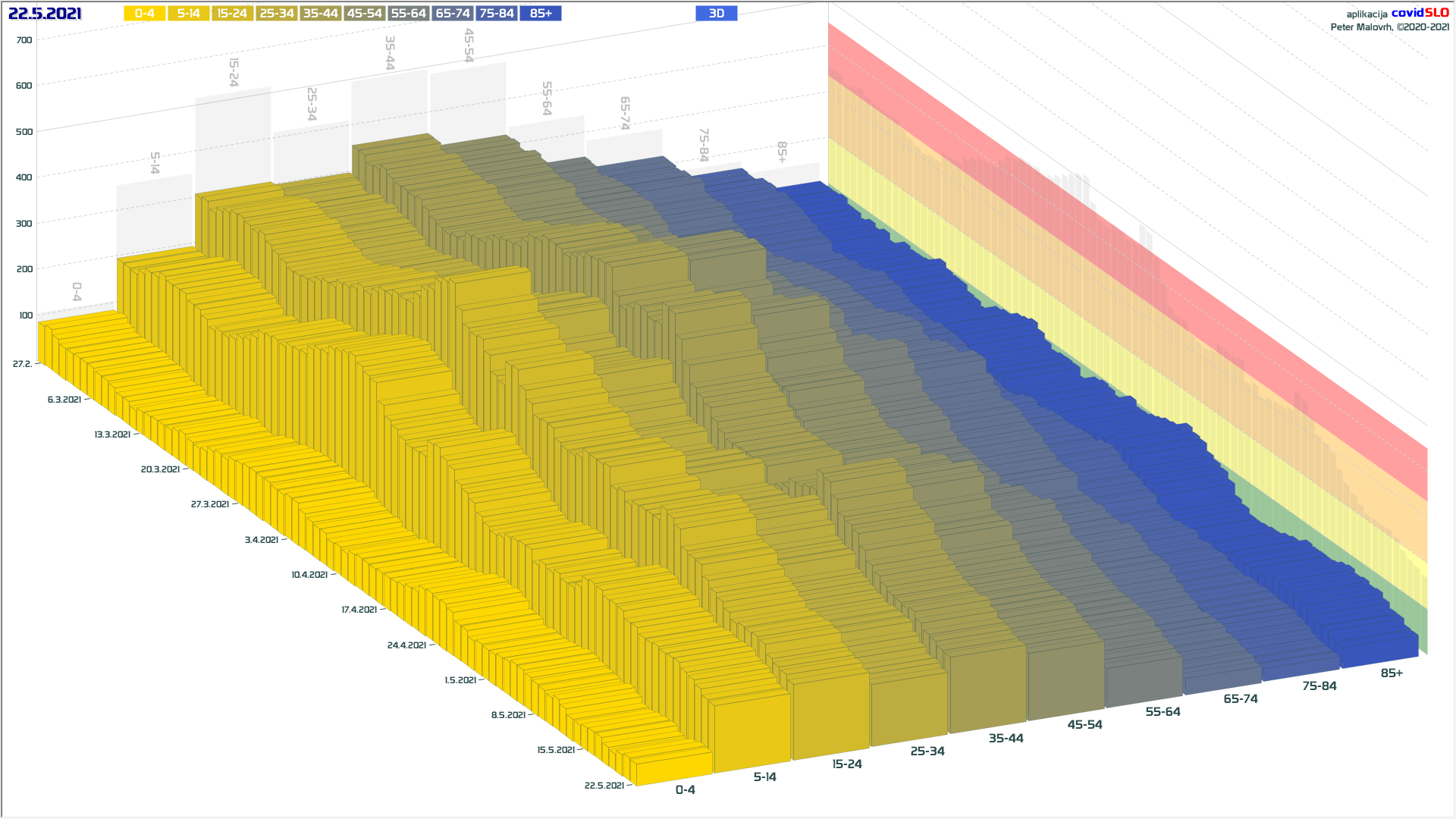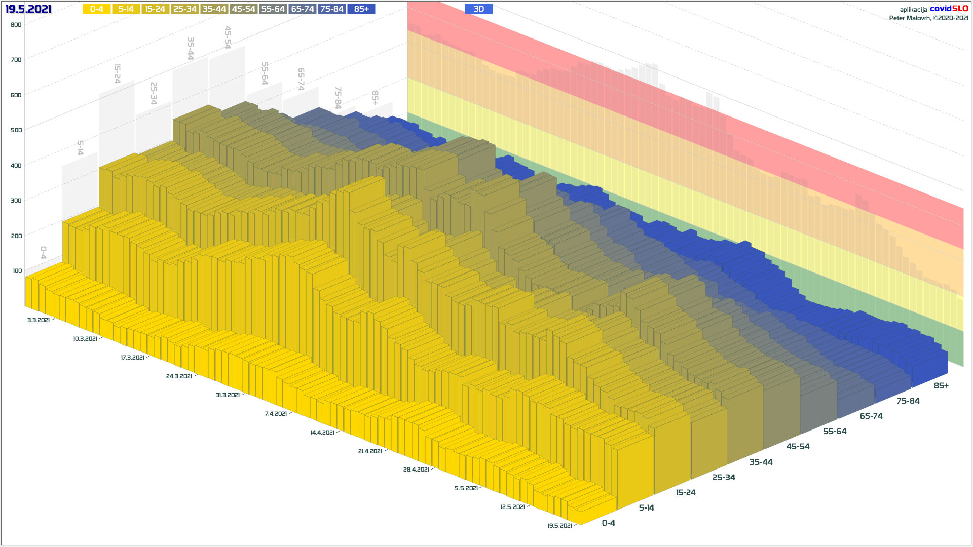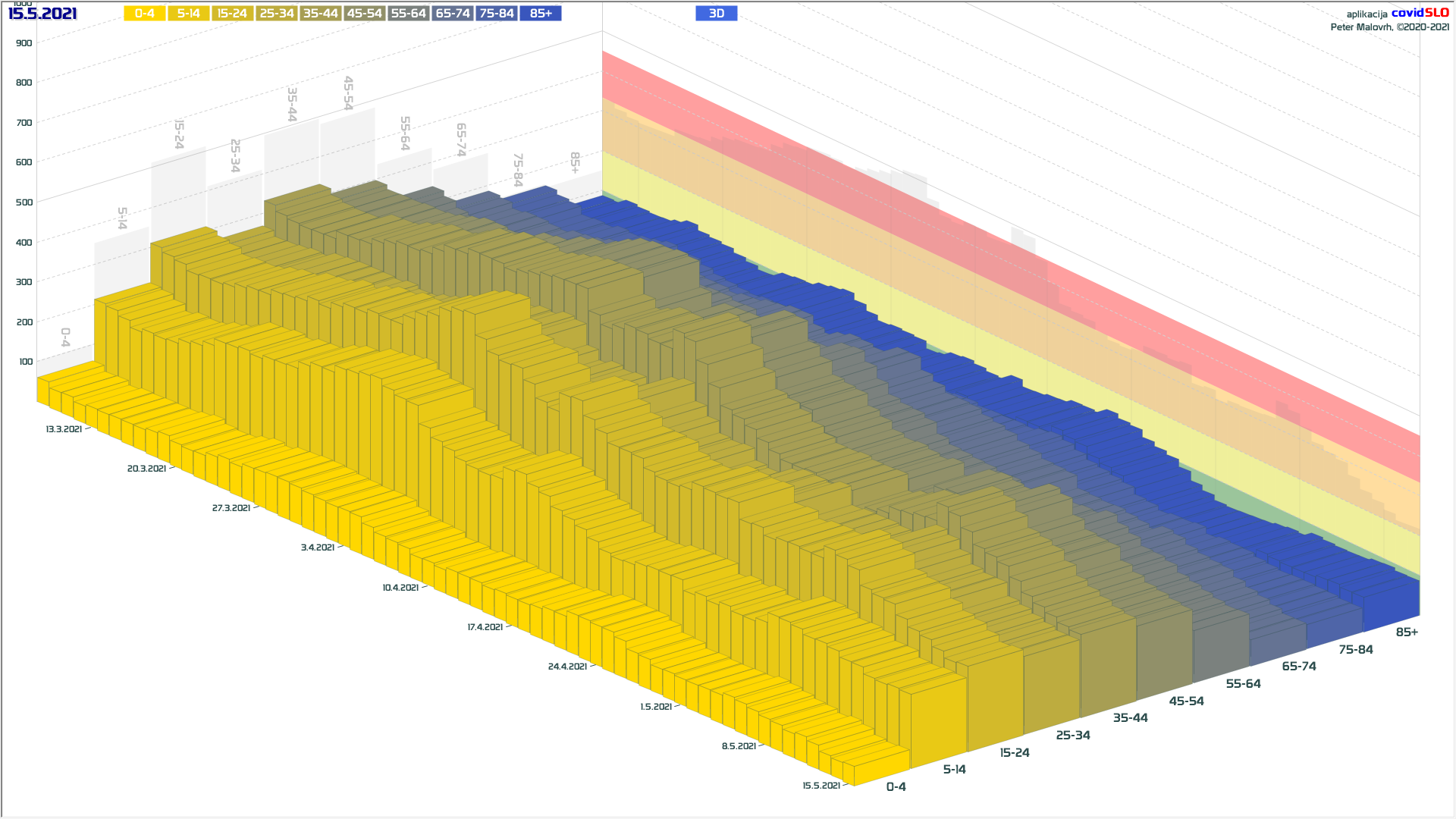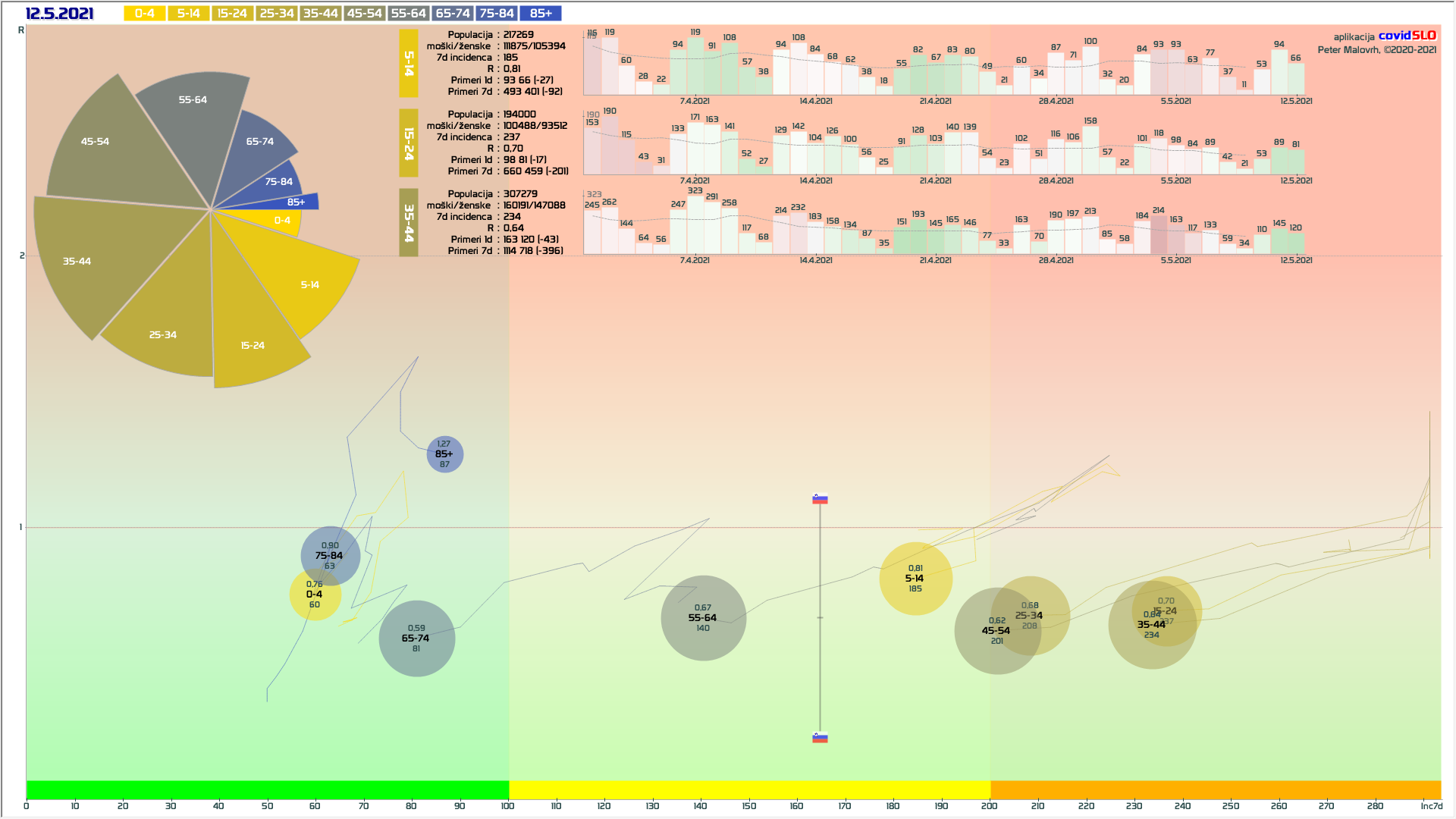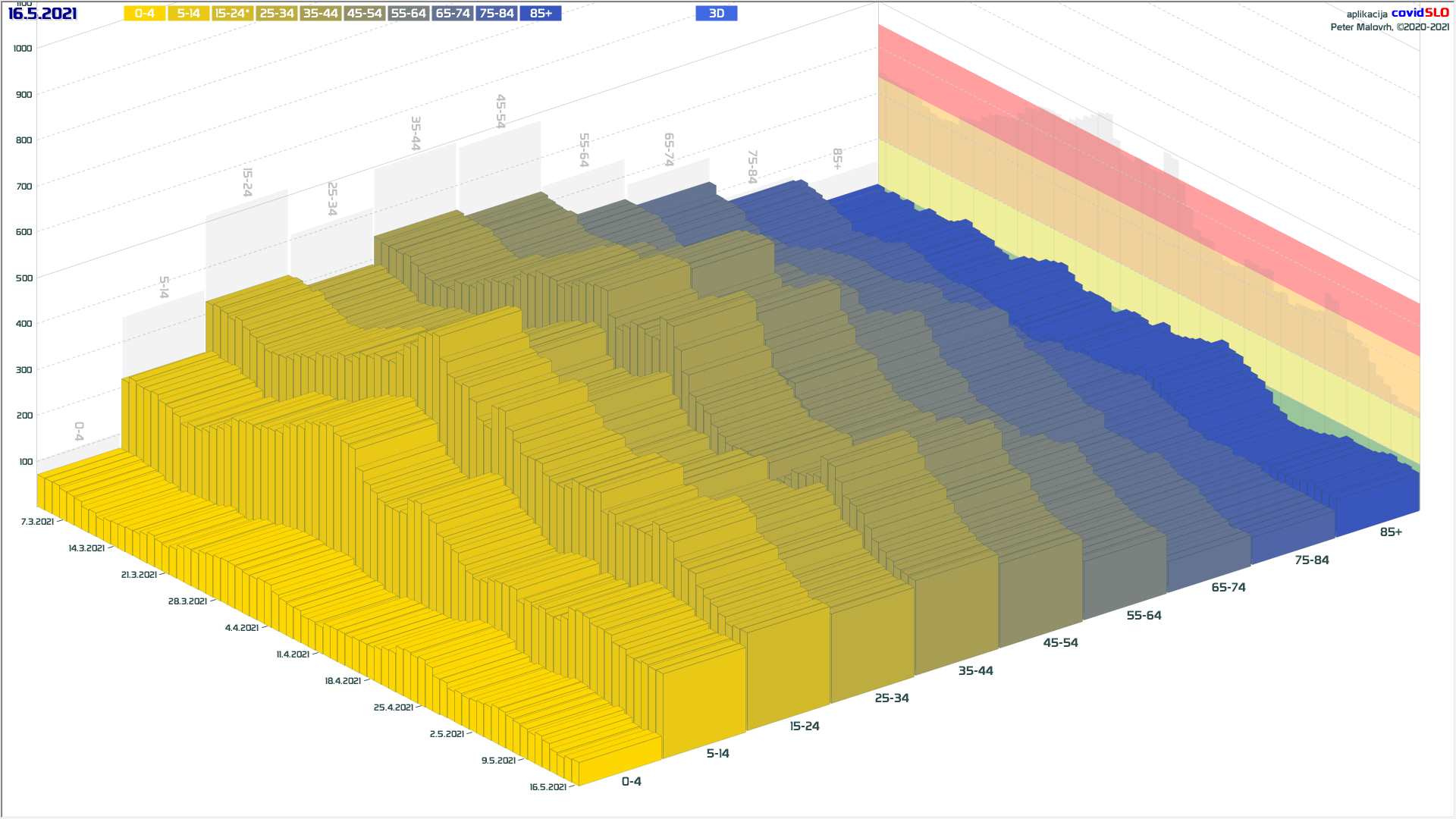 3 rumene regije, 8 oranžnih, 1 rdeča – imeli smo padec 7d povprečja zaradi praznika 27.4.