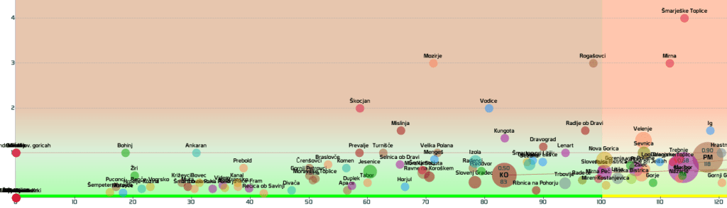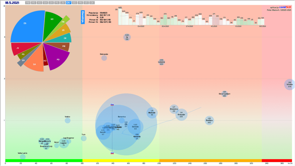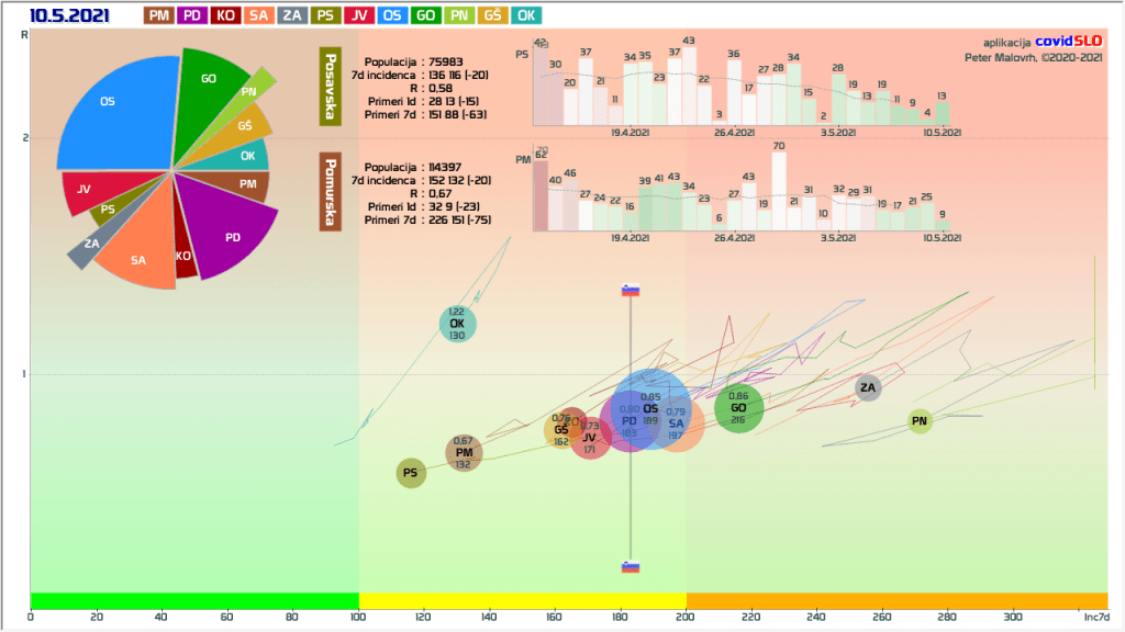 4 zelene regije (KO, SA, PM, PS, jutri verjetno tudi GŠ), 8 rumenih regij, najslabše gre OS regiji