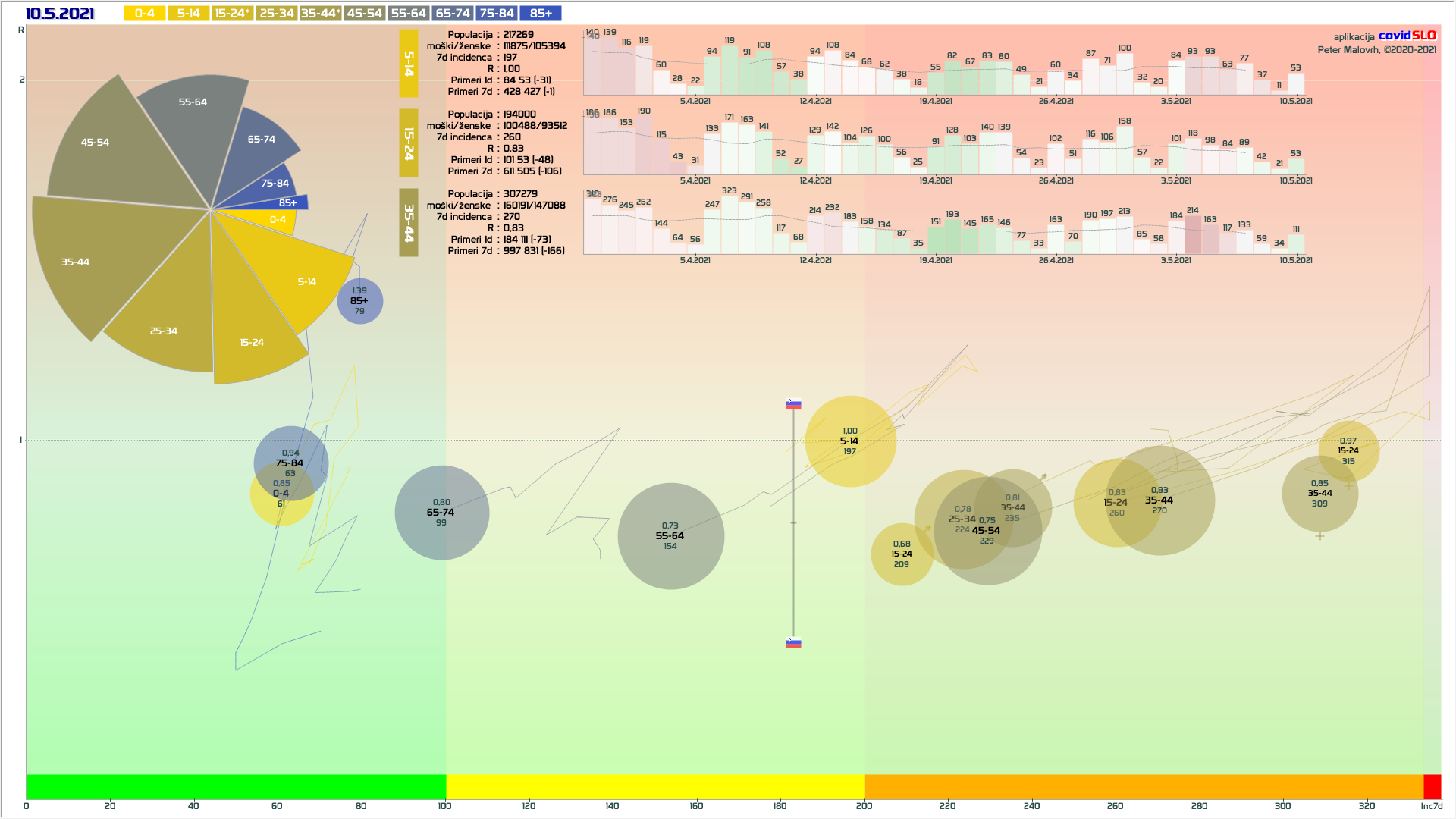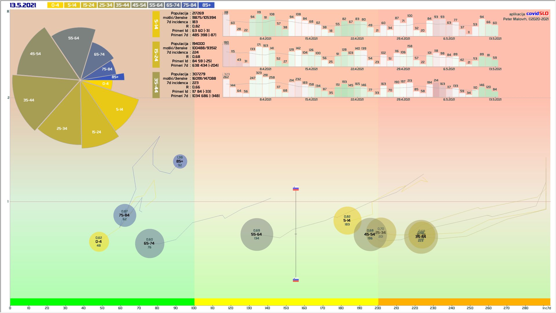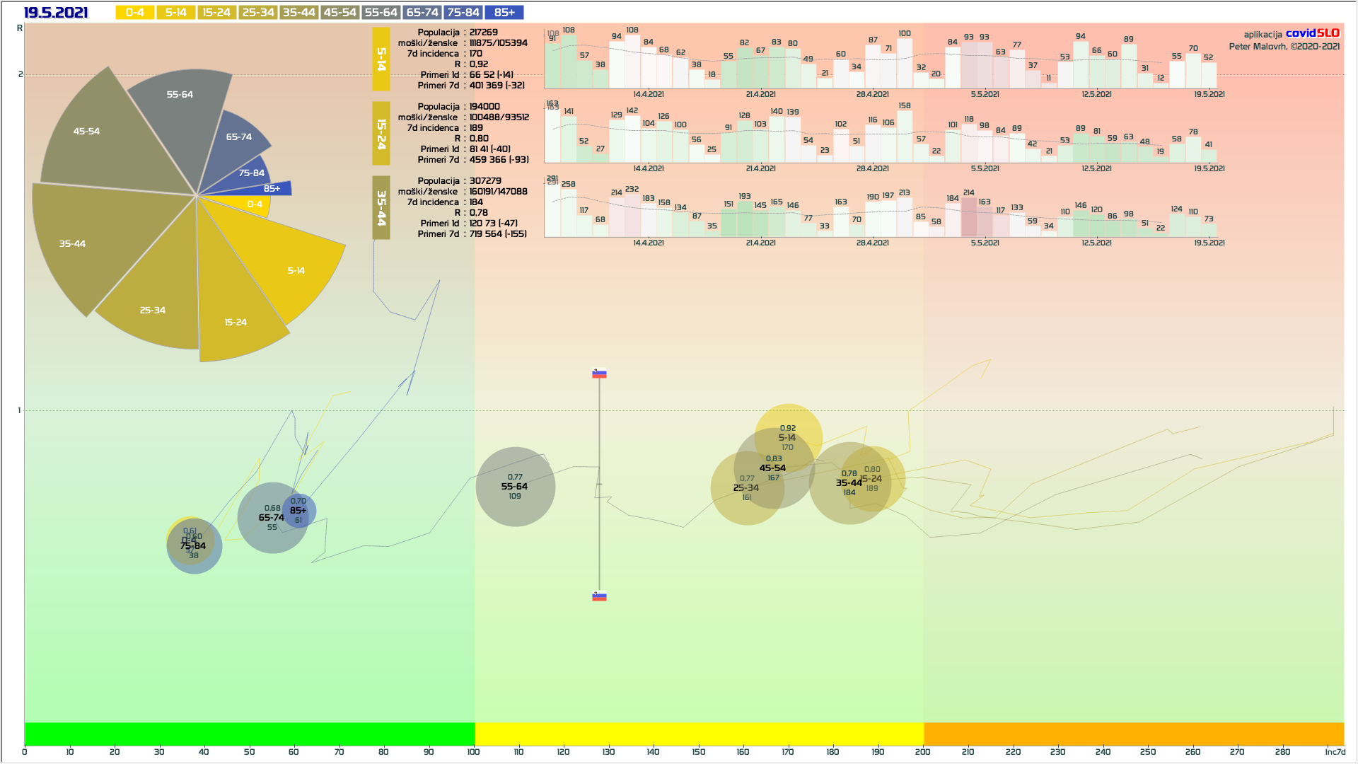 3 rumene regije, 9 oranžnih – imeli smo padec 7d povprečja zaradi praznika 27.4.