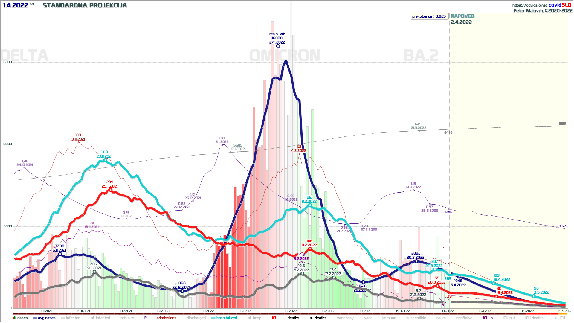 napoved umrlih: predvidoma realnih 200, skupno pa dodatnih 600-700 (to bodo večinoma smrti “s” covid, krivec osnovna bolezen, spremljajoča covid okužba) (v prejšnjih valovih je poleg osnovne bolezni bil krivec tudi covid!), NIJZ presežne smrtnosti ne zaznava več