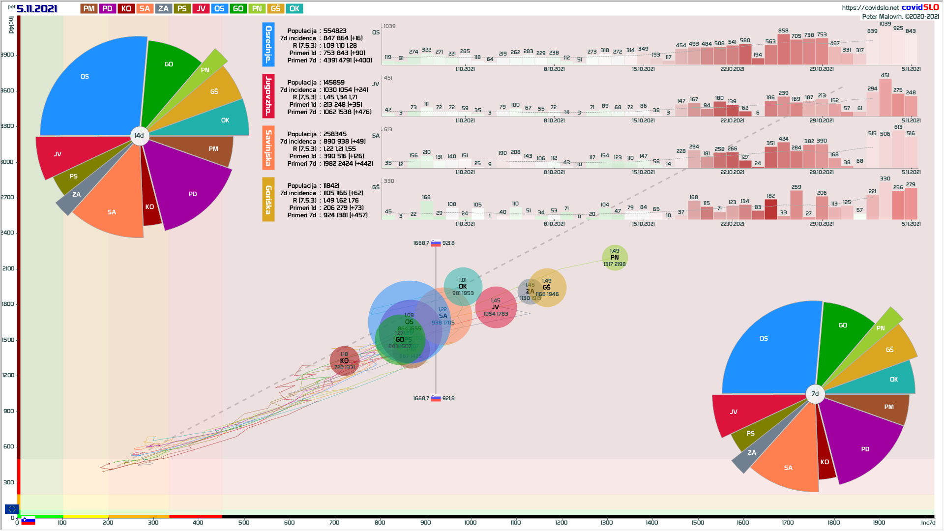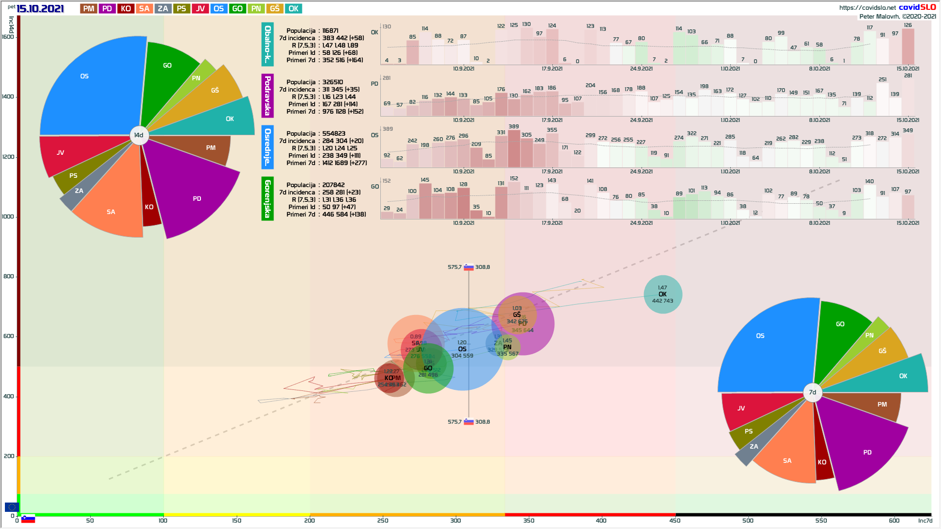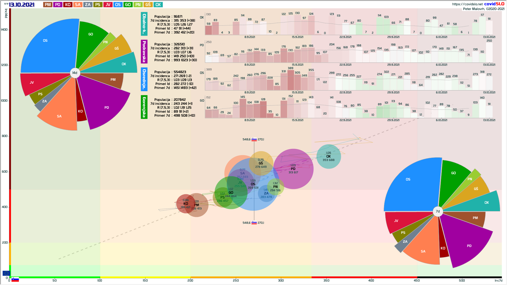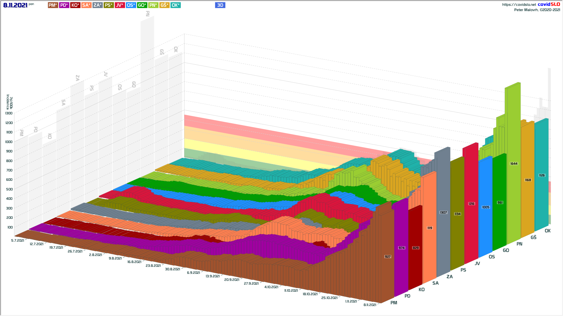 število novih sprejemov v bolnišnice (zdaj umirjeno) narašča, trenutno povprečno okoli 43/dan, smrti je okoli 5/dan in se počasi dviguje