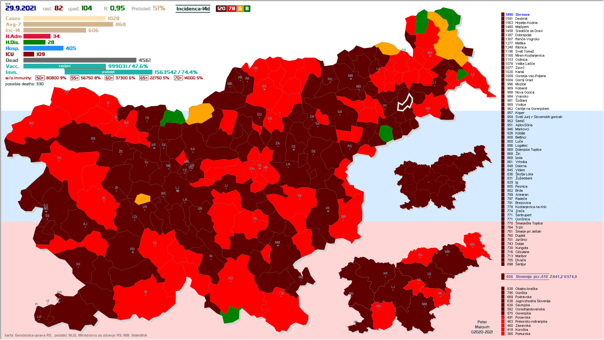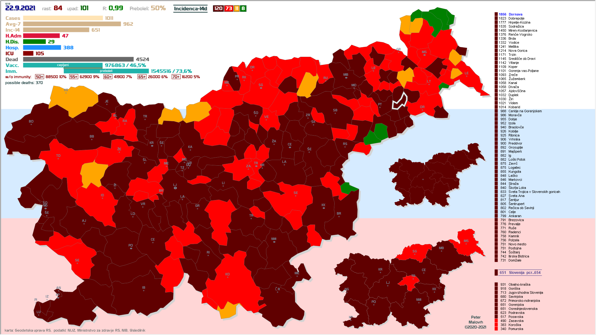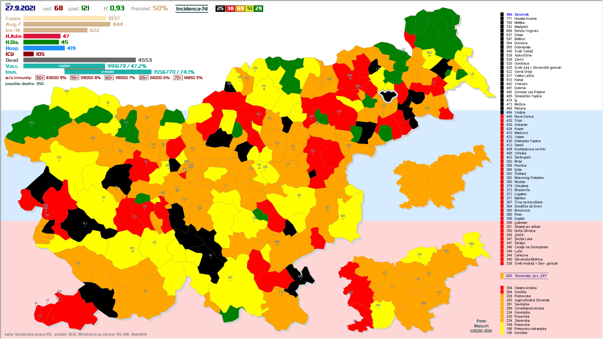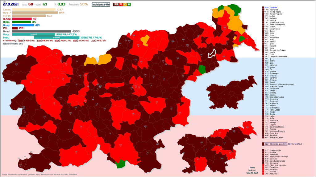9/5/3 občin brez primerov že vsaj 1/2/4 tedne, Hodoš 105 dni, Žetale 41 dni! Osilnica je pred nekaj dnevi izpadla po 137 dneh!!!!!