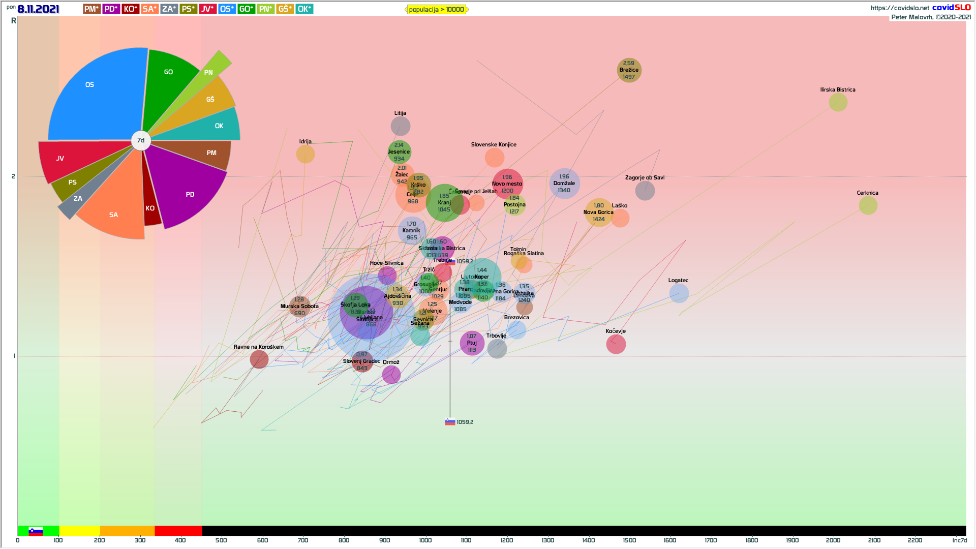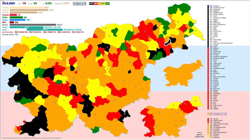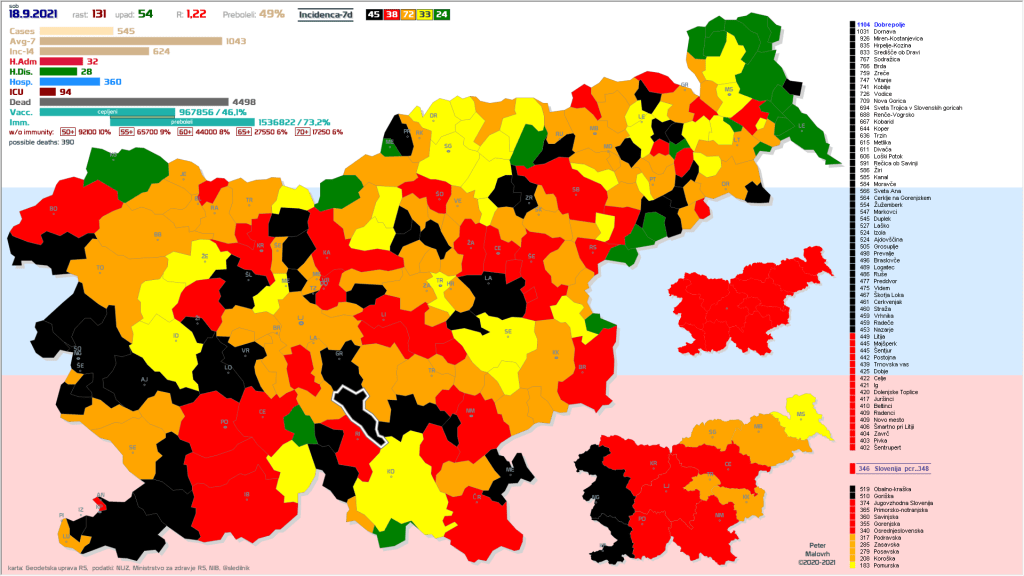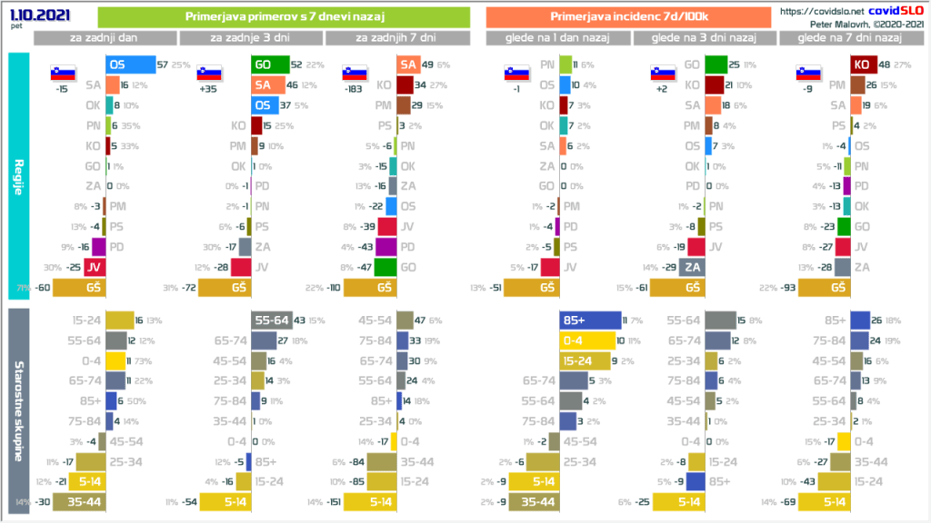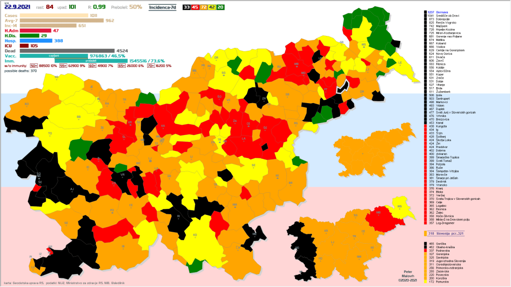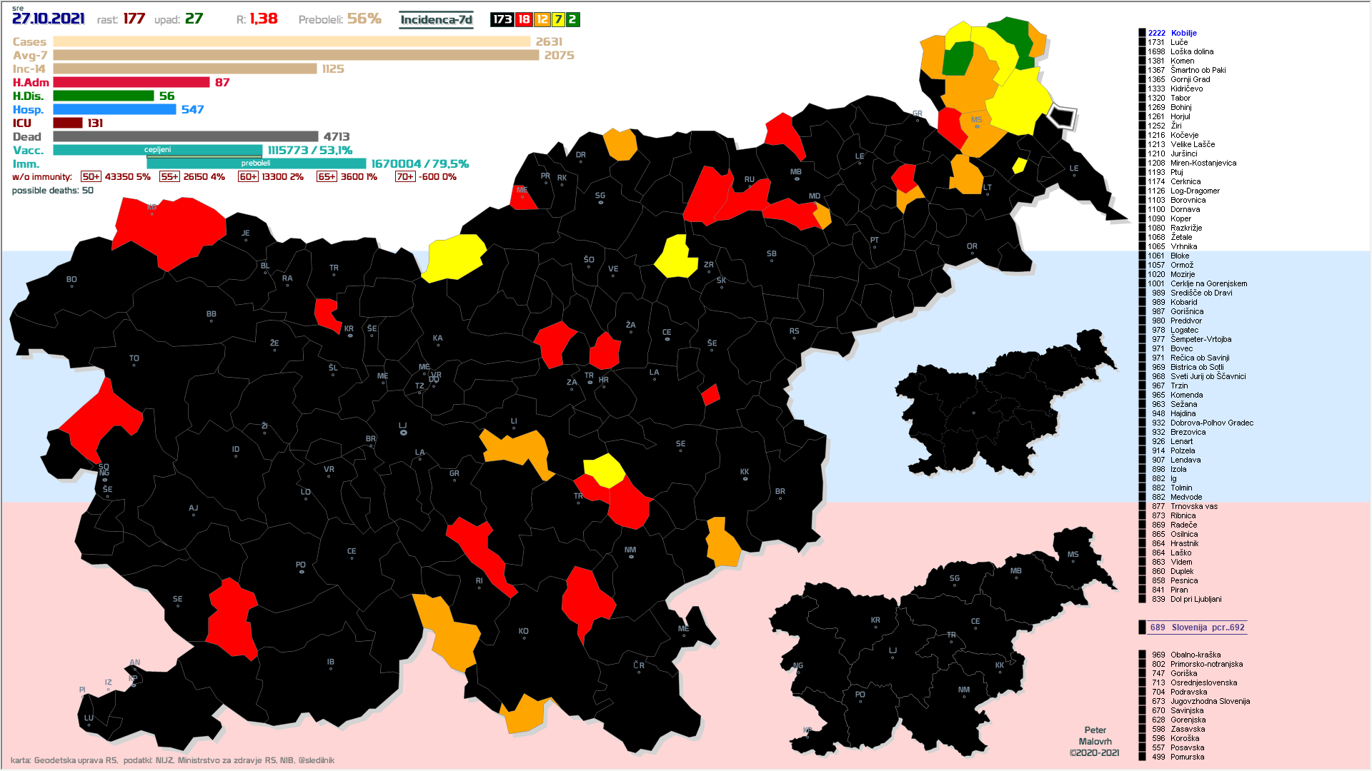 9/5/3 občin brez primerov že vsaj 1/2/4 tedne, Hodoš 105 dni, Žetale 41 dni! Osilnica je pred nekaj dnevi izpadla po 137 dneh!!!!!