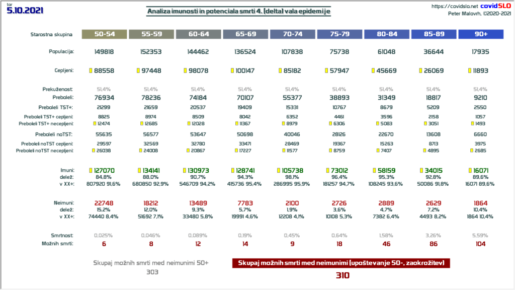 Število smrti med neimunimi v 4. valu so že dolgo vnaprej določene za 500-700, a popuščanje zaščite in imunokompromitirani tu niso bili všteti. Zaščitenost od cepljenja je že popustila, in vsi se ne bodo takoj cepili s 3. odmerkom – zato bo večje, verjetno okoli 1500.
