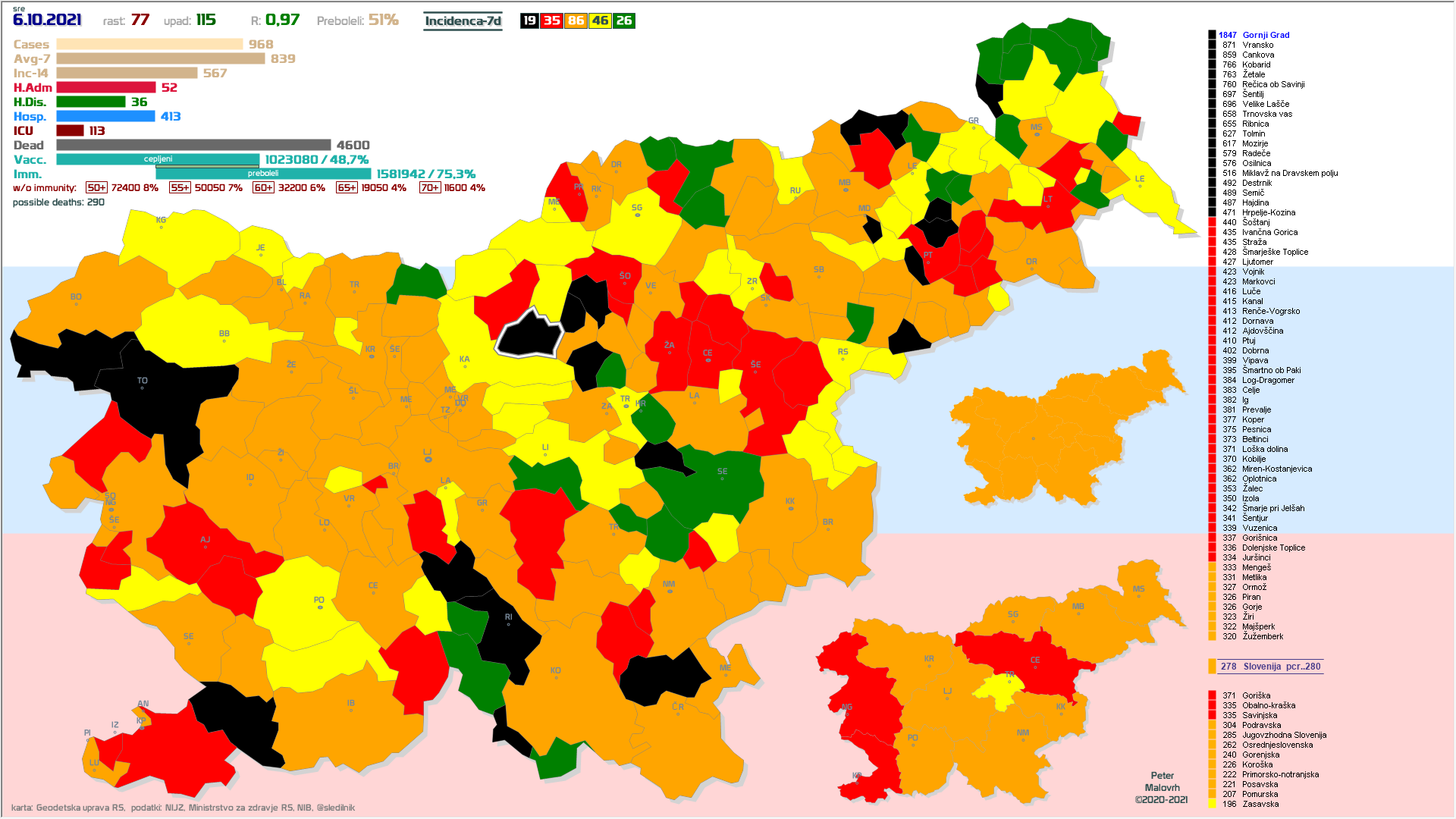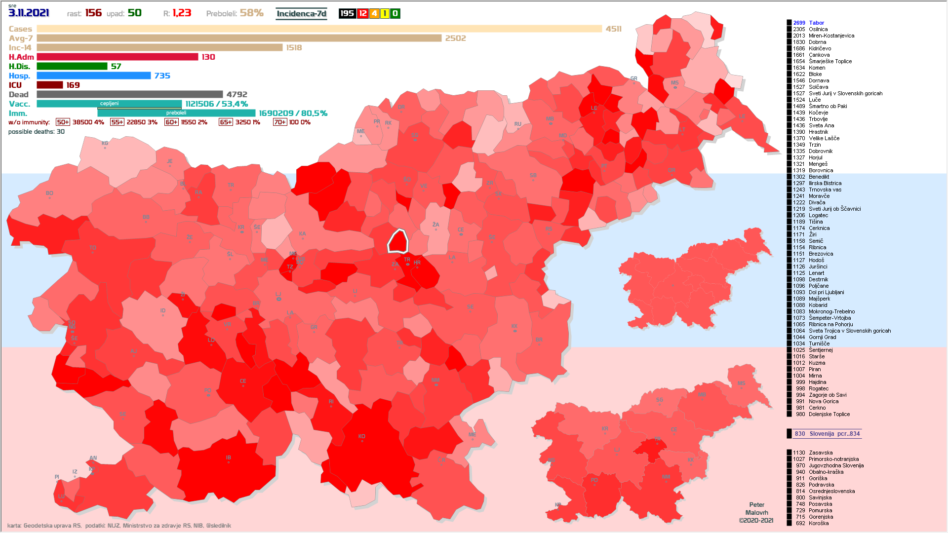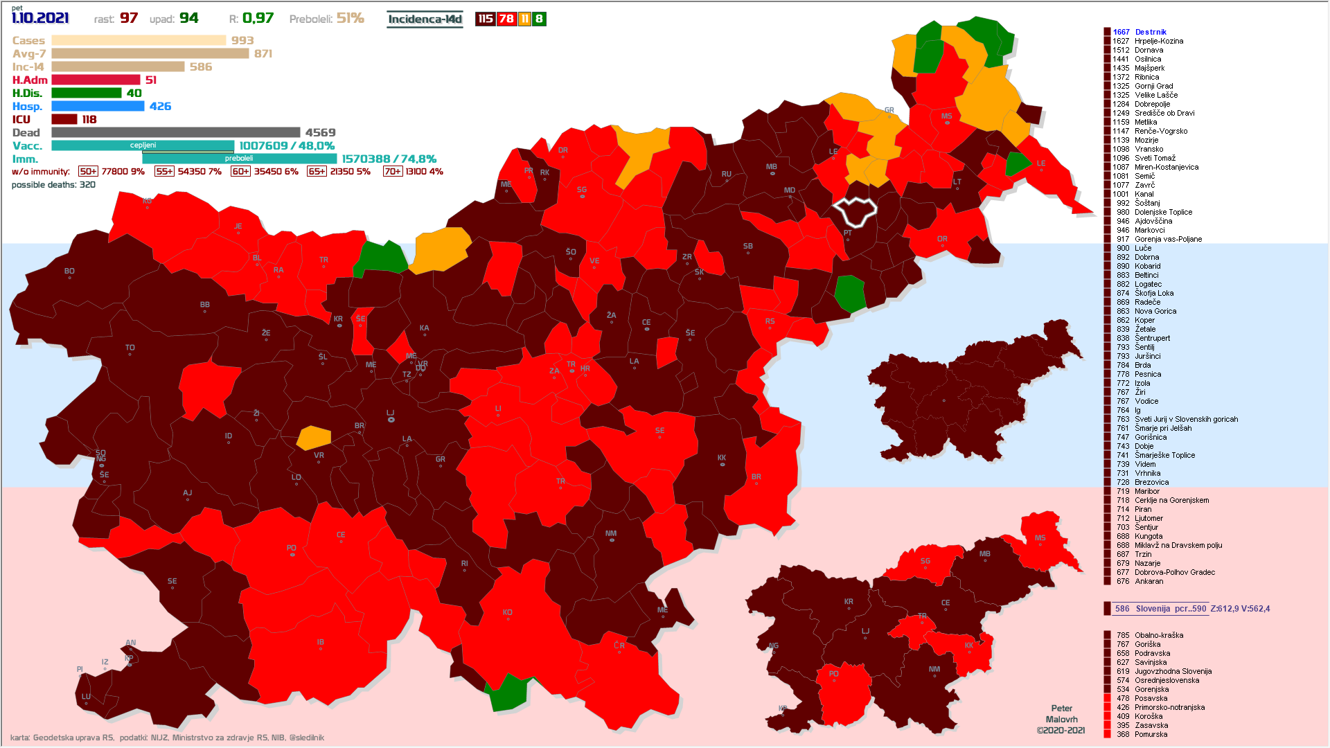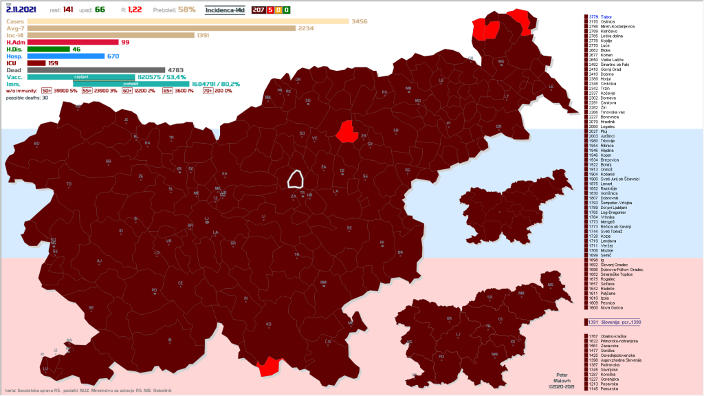 10/5/3 občin brez primerov že vsaj 1/2/4 tedne, Hodoš 104 dni, Žetale 40 dni! Osilnica je pred nekaj dnevi izpadla po 137 dneh!!!!!