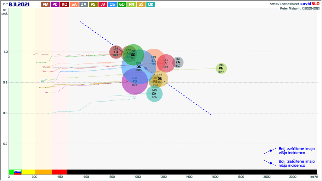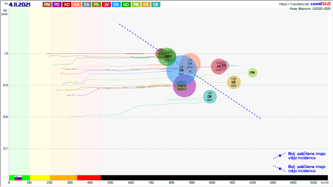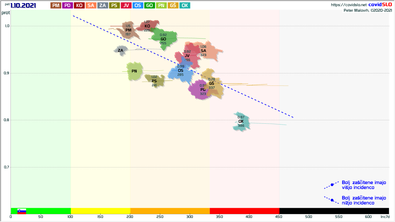 pred delto sta najbolje zaščiteni Koroška in Pomurska, najslabše Obalno-kraška (15% slabše!) … zelo v skladu s tem se v 4. valu gibajo incidence primerov!!