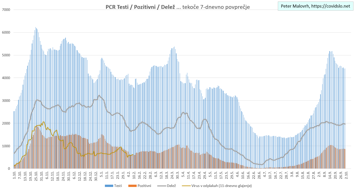 povprečje javljenih primerov zadnjih 7 dni je 2872 (vmesni max je bil 17.9. pri 1045), NIJZ s korekcijami za nazaj 2858