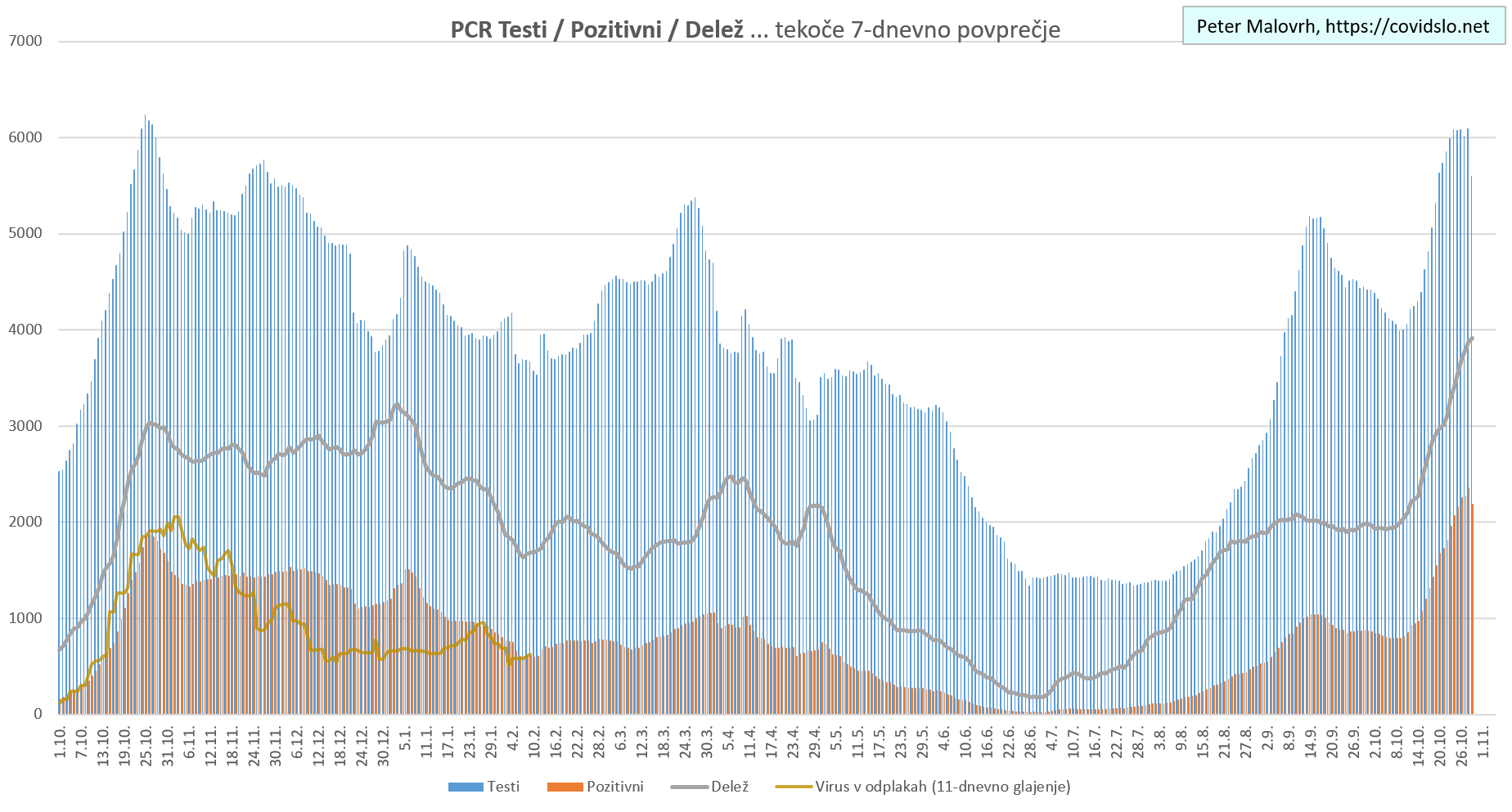 Smo na rekordnih vrednostih novih primerov dnevno. Delež pozitivnih je že nekaj časa rekorden. Laboratoriji bodo tokrat očitno zmogli več od povprečno 7-8000 PCR testov dnevno! Bravo!