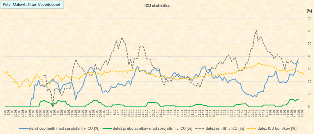 Za izračun faktorja boljše zaščitenosti pred ICU obravnavo si pomagam s spodnjimi podatki iz enot intenzivne terapije …